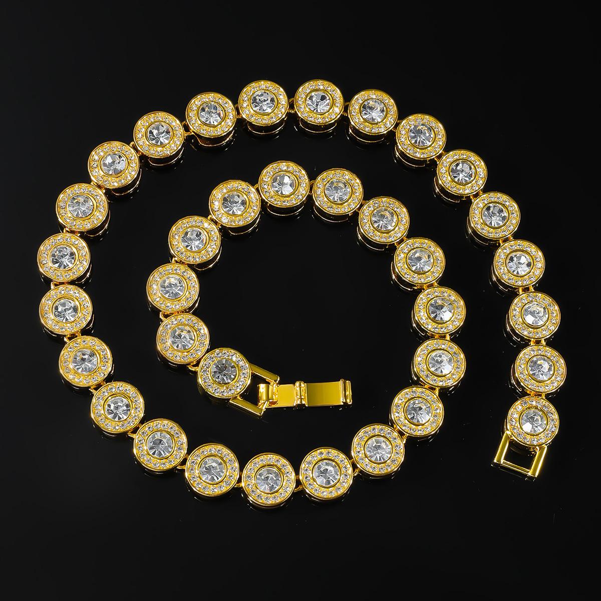 Collar de oro de aleación de diamantes de una fila para hombres de hip-hop popular de Europa y América, collar de diamantes de una fila con diamantes de imitación llenos, joyería popular |