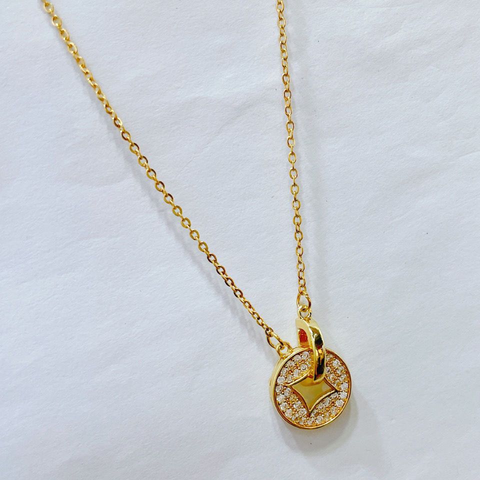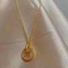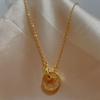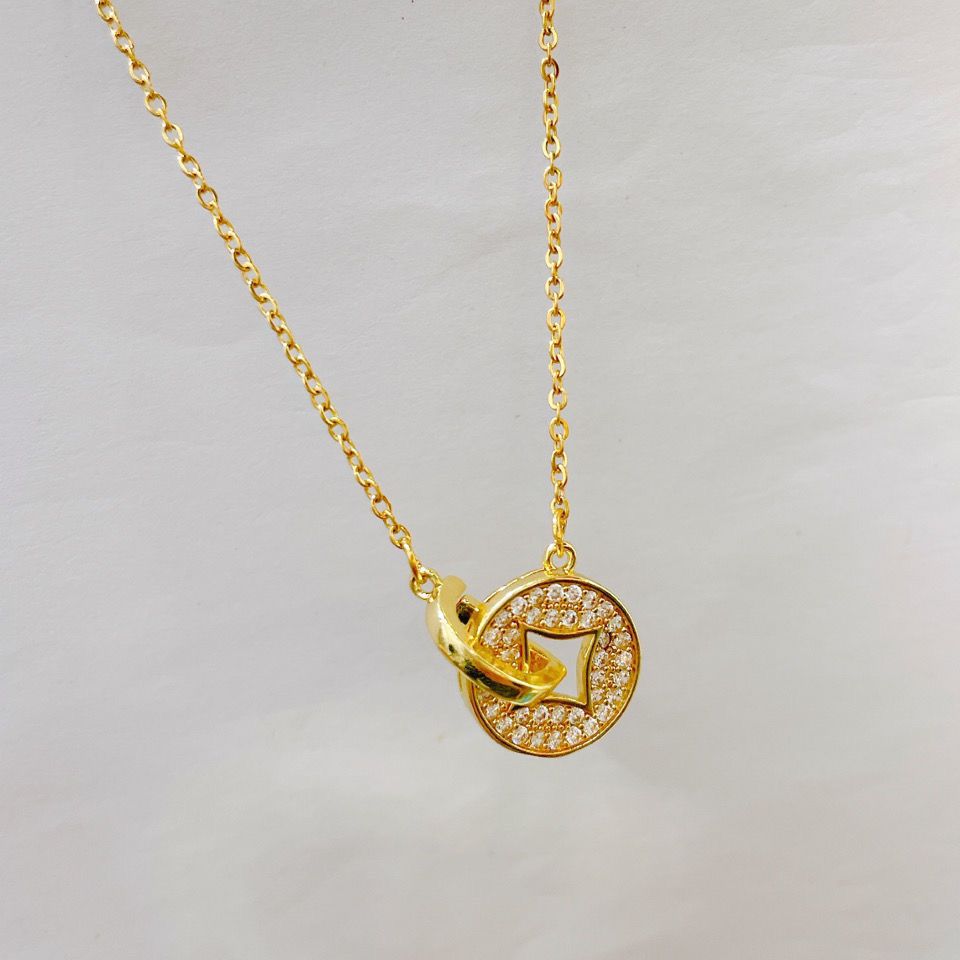 Nuevo collar redondo elegante de moda de oro con moneda simple y doble anillo con hebilla de fase y cadena de clavícula de diamante, estilo femenino