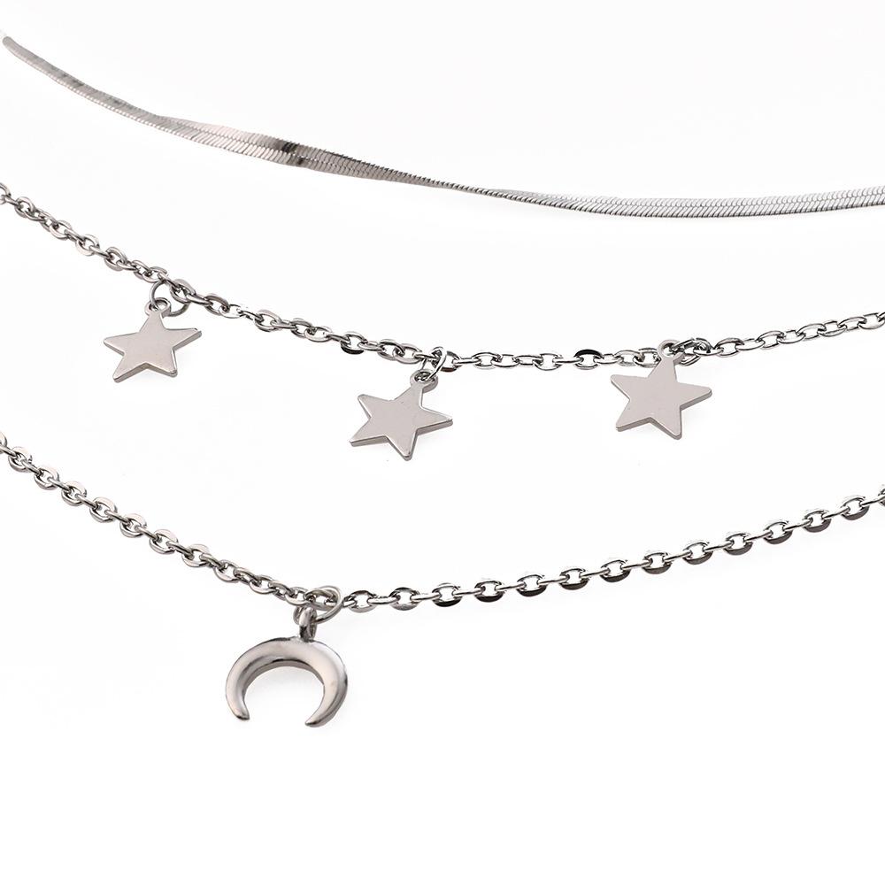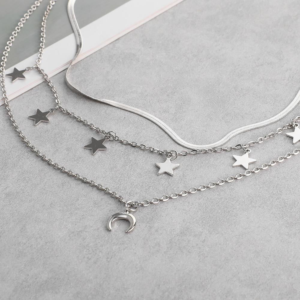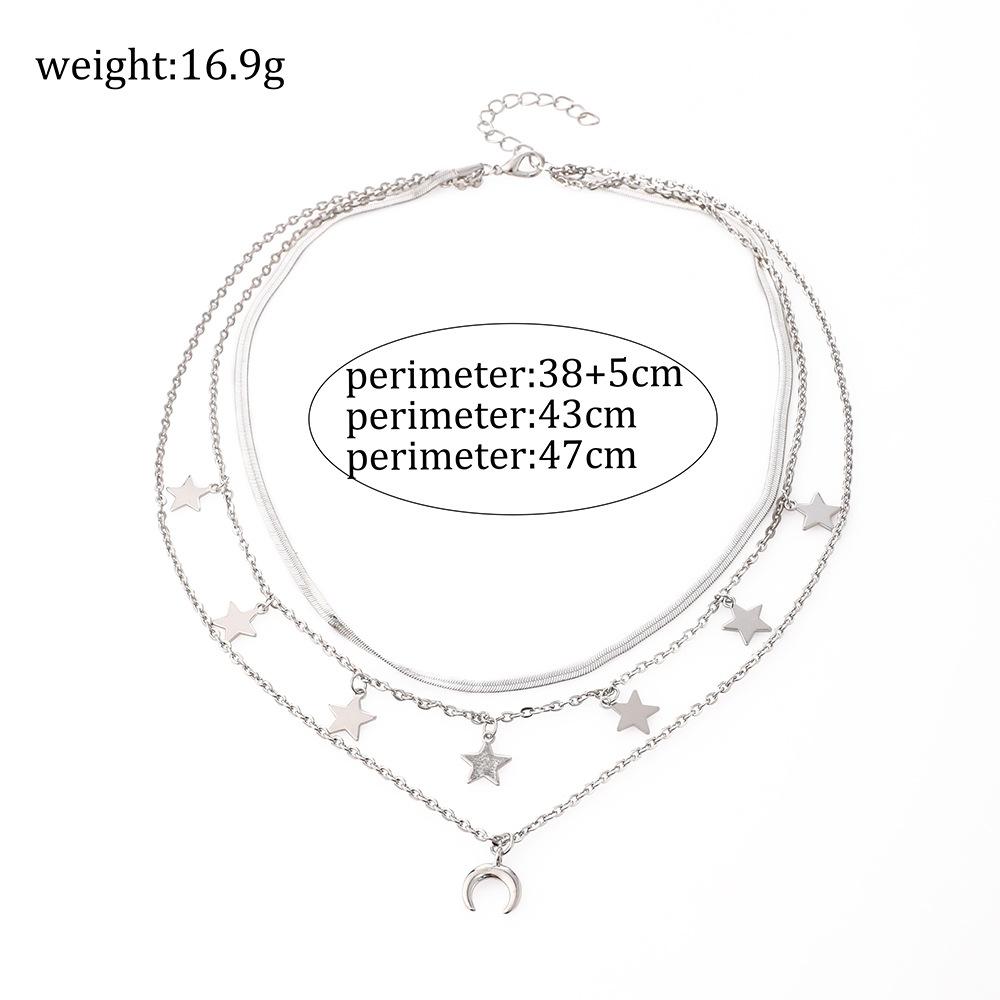 Europa y Estados Unidos deseo transfronterizo nuevo collar multicapa moda estrella Luna collar de 3 capas collar venta al por mayor joyería de comercio exterior