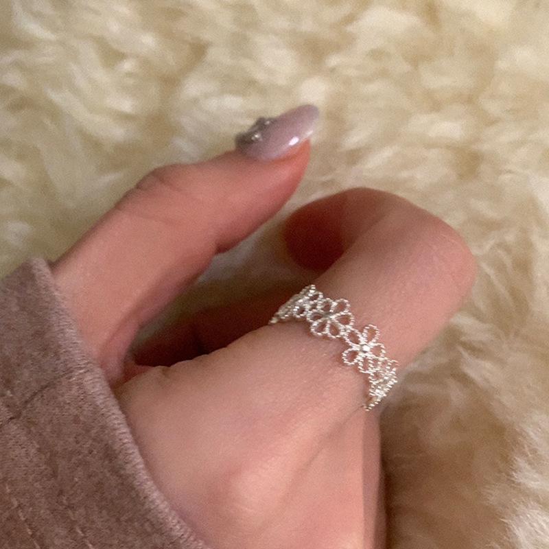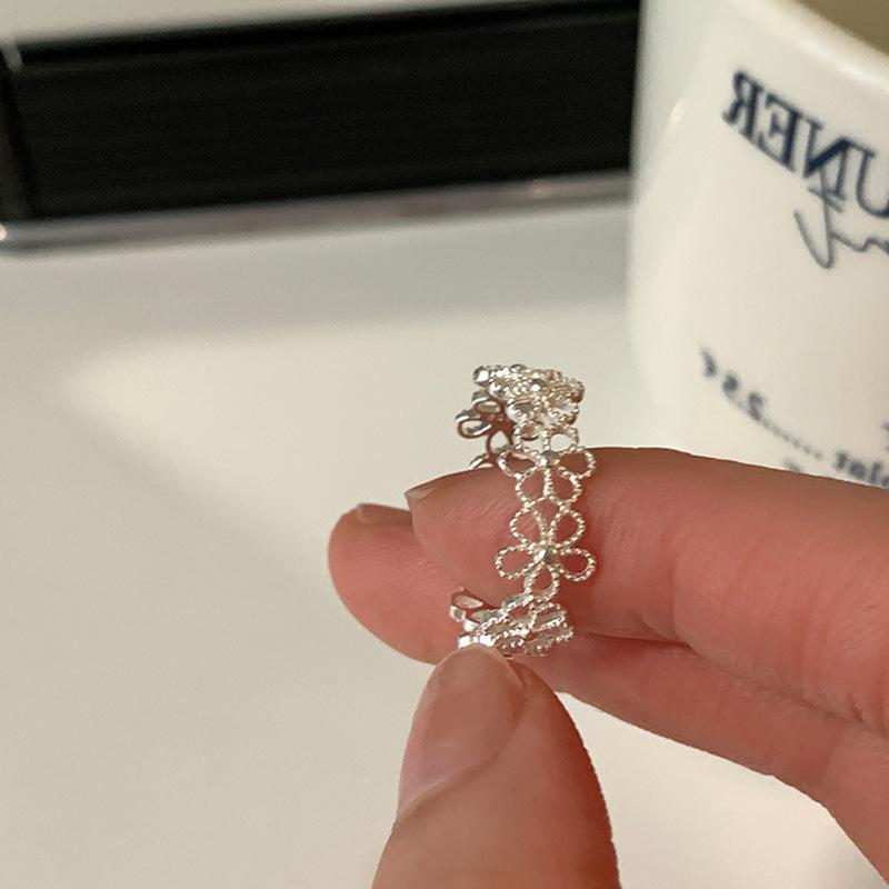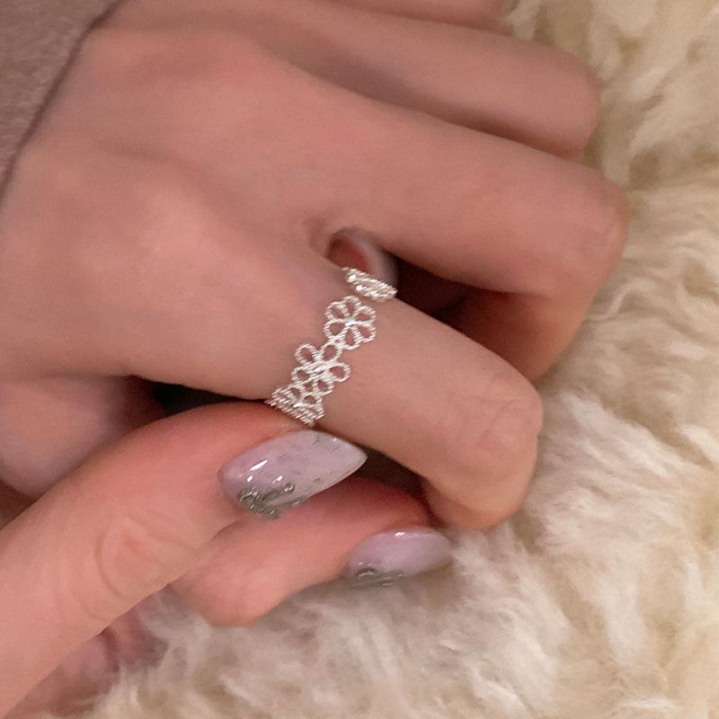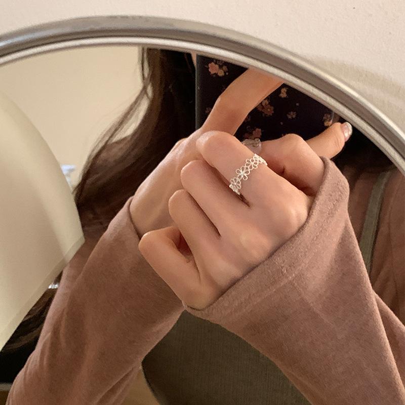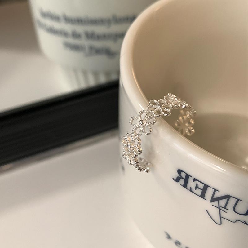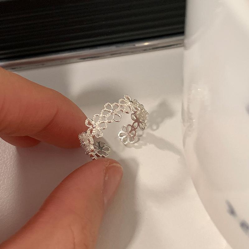 Anillo abierto de flor hueca de estilo dulce y fresco para mujer, diseño de nicho, sentido de lujo ligero y elegante, anillo de temperamento de alta gama