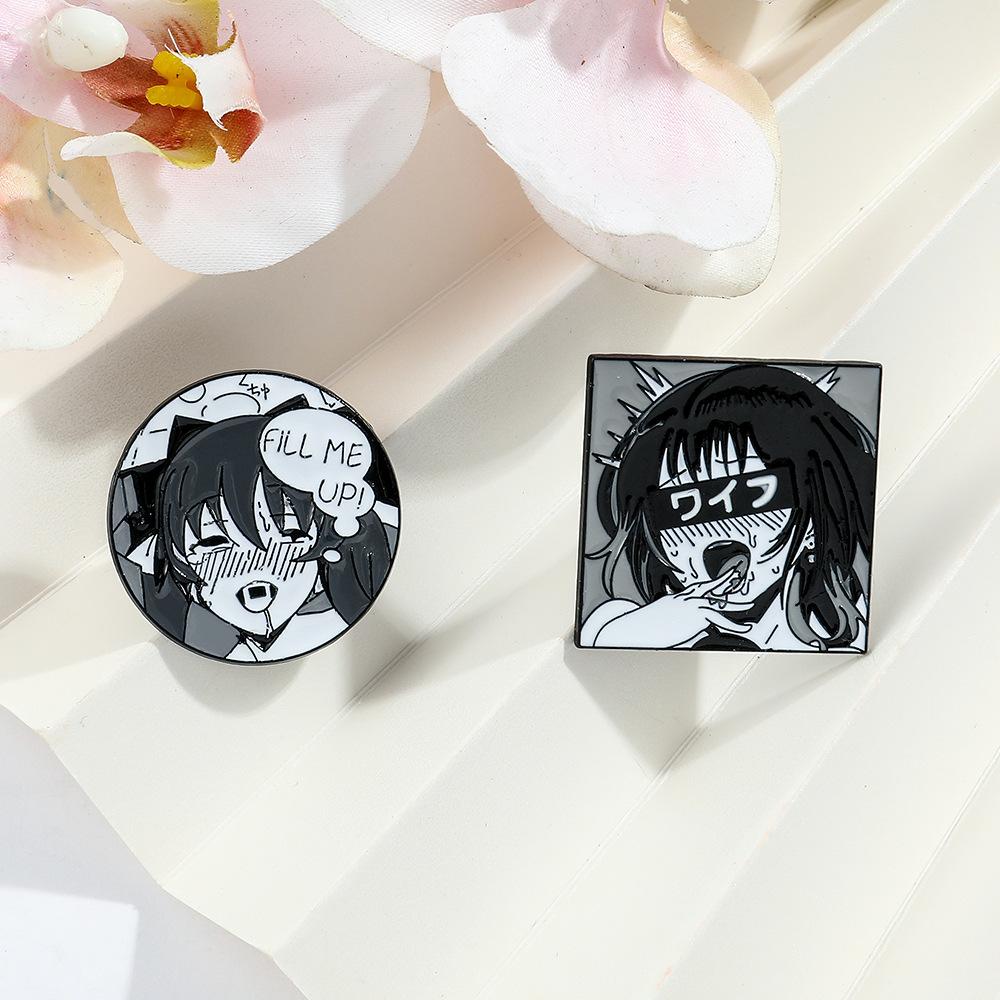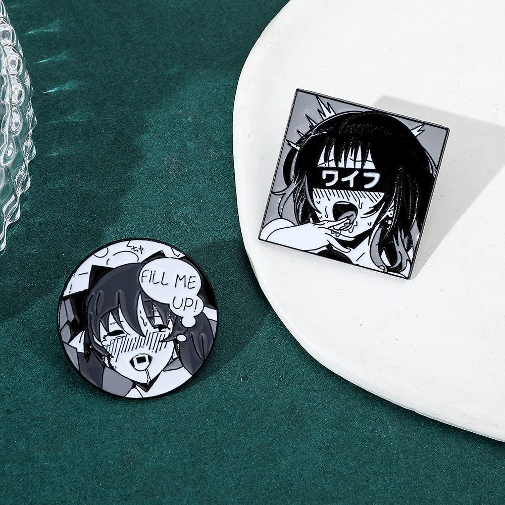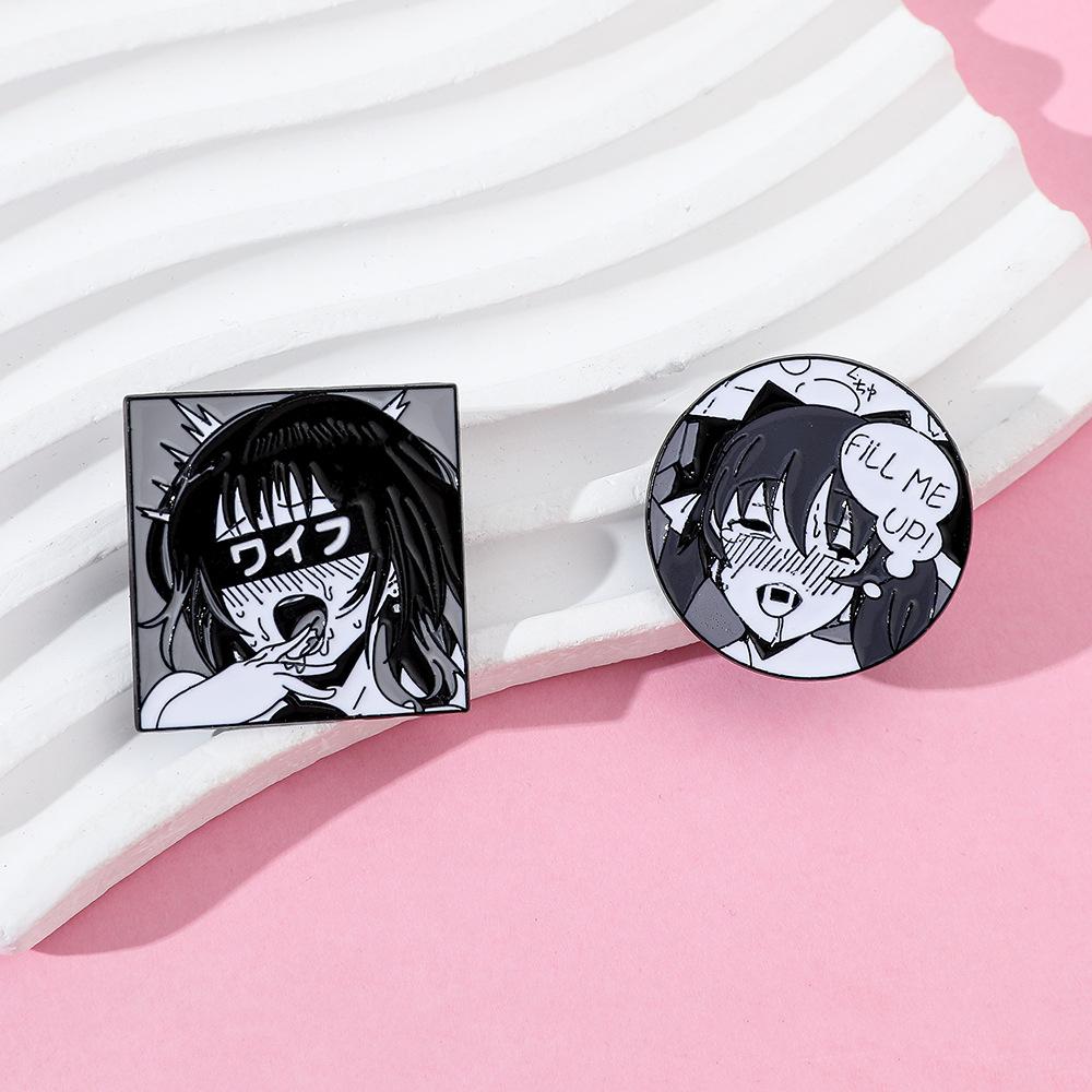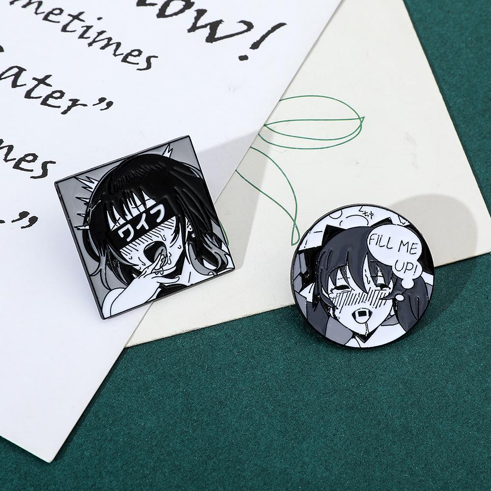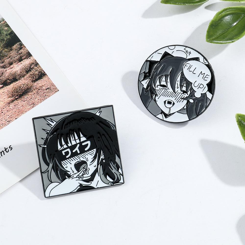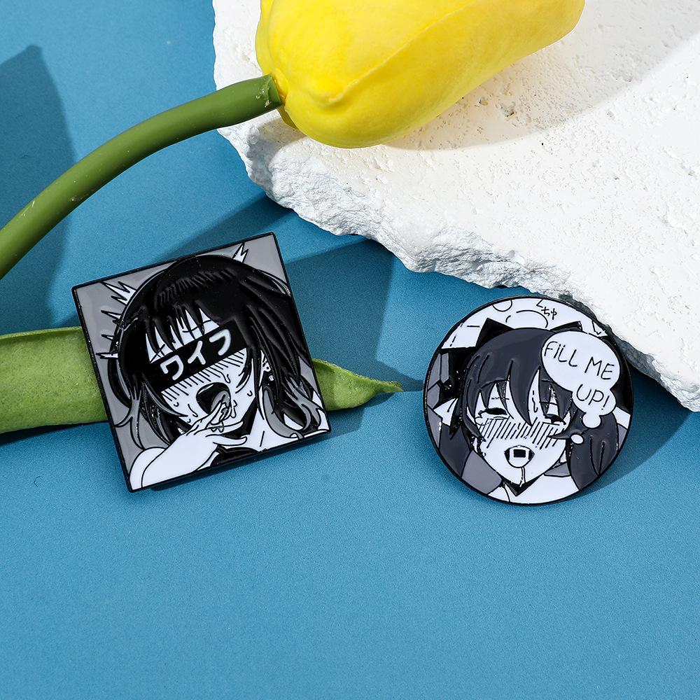 Broche de aleación con forma de gota de aceite para niña, insignia de metal con personalidad creativa de dibujos animados japoneses