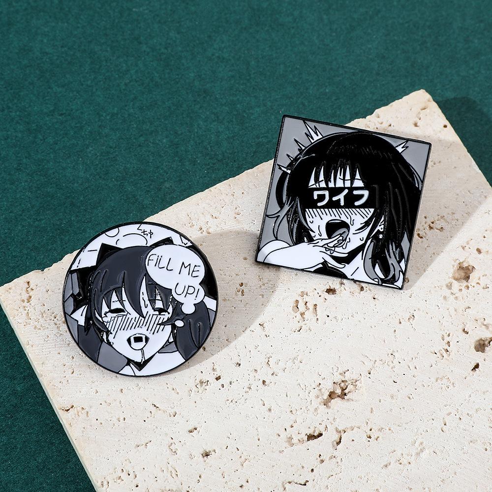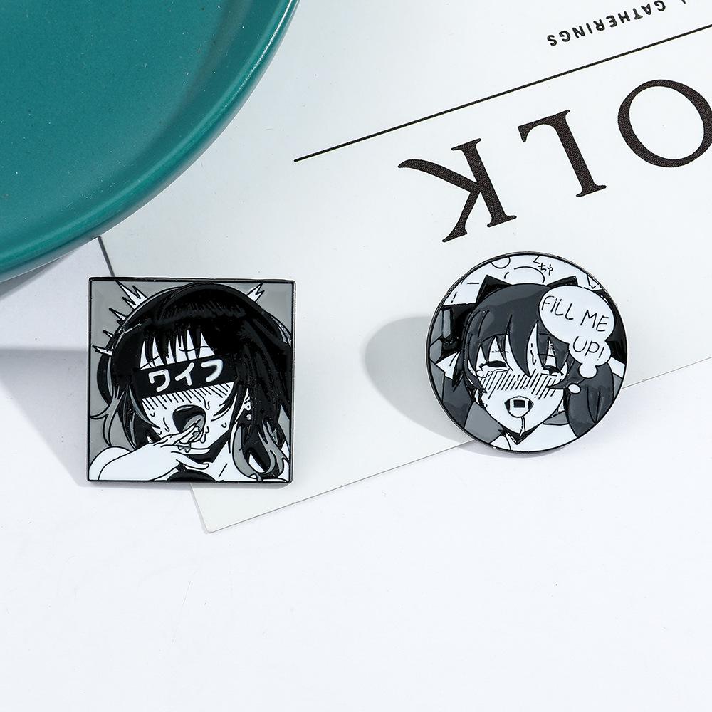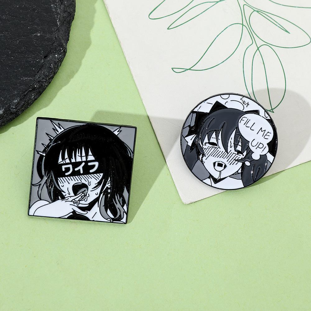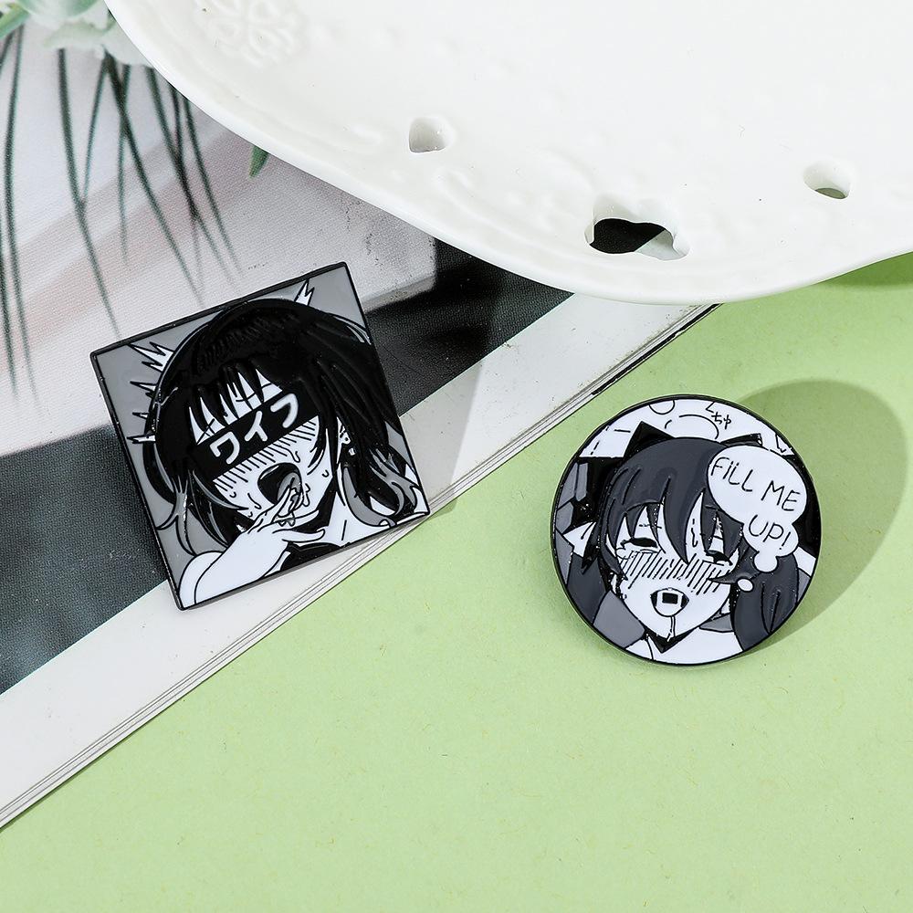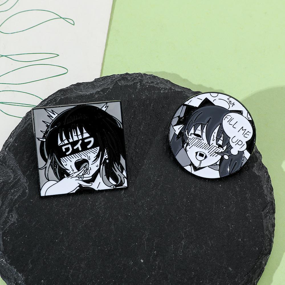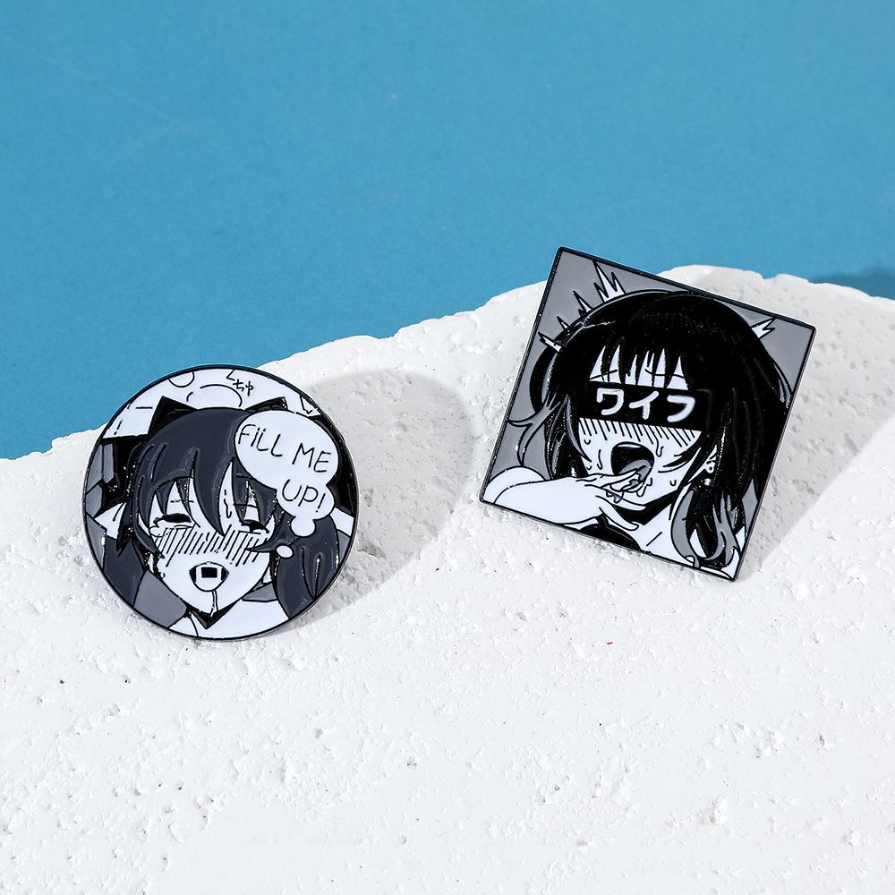 Broche de aleación con forma de gota de aceite para niña, insignia de metal con personalidad creativa de dibujos animados japoneses