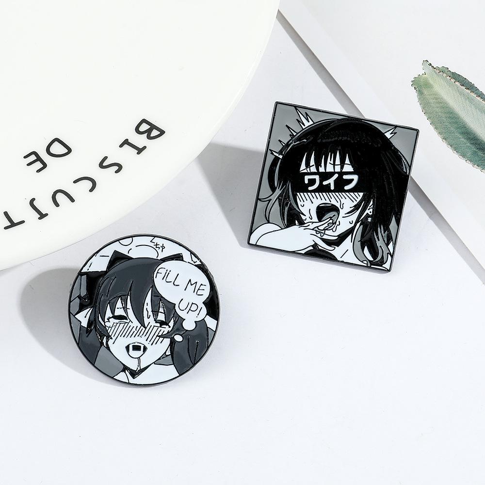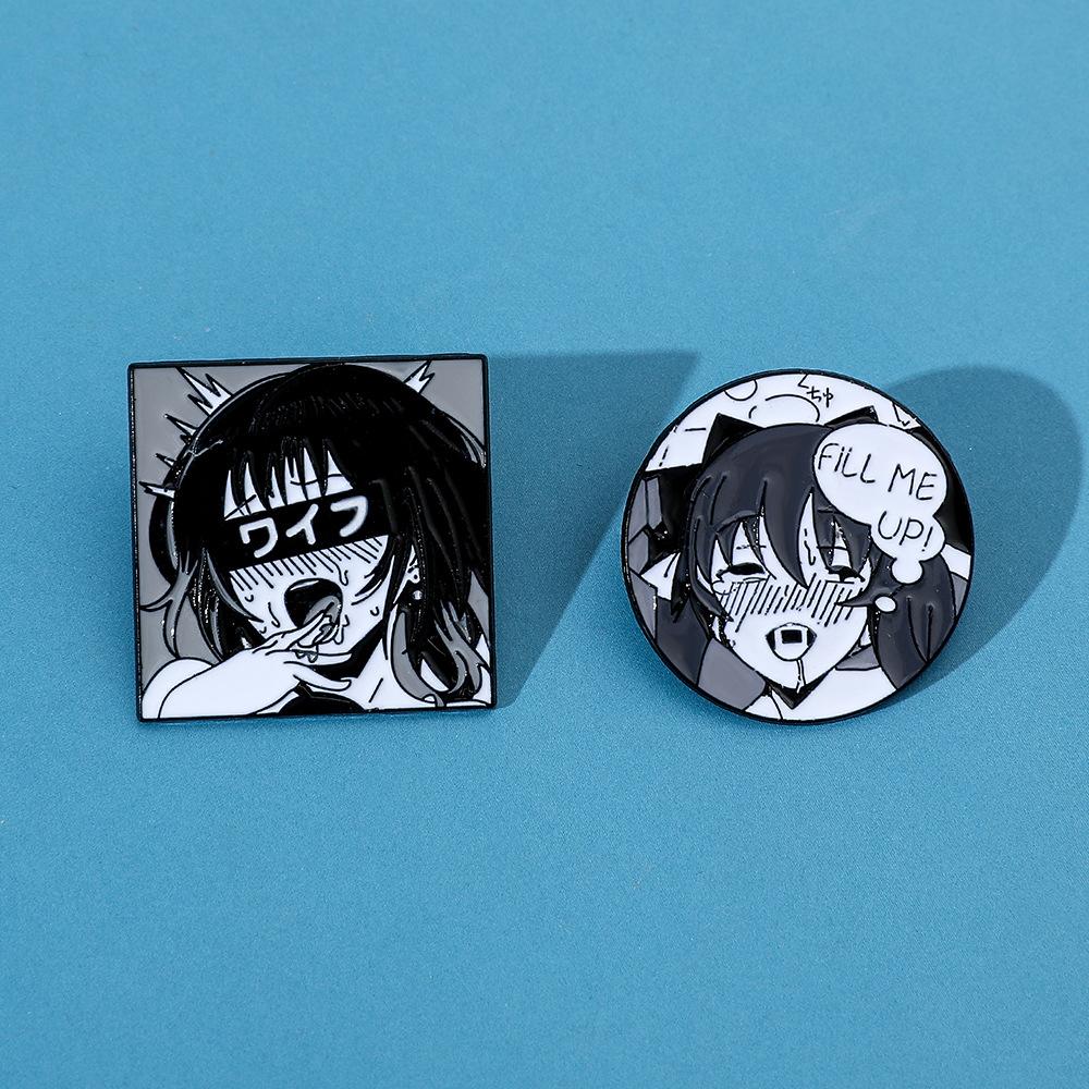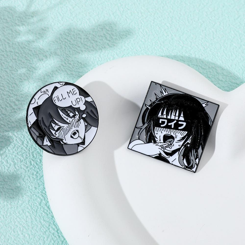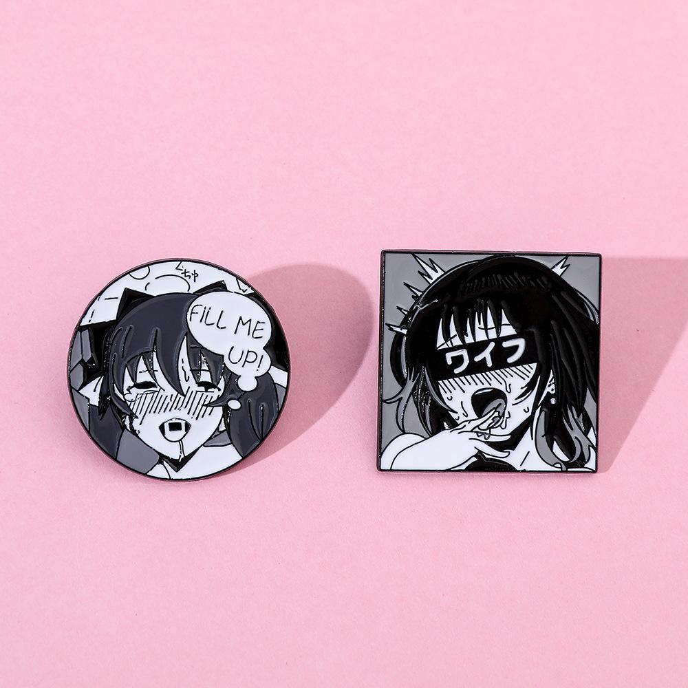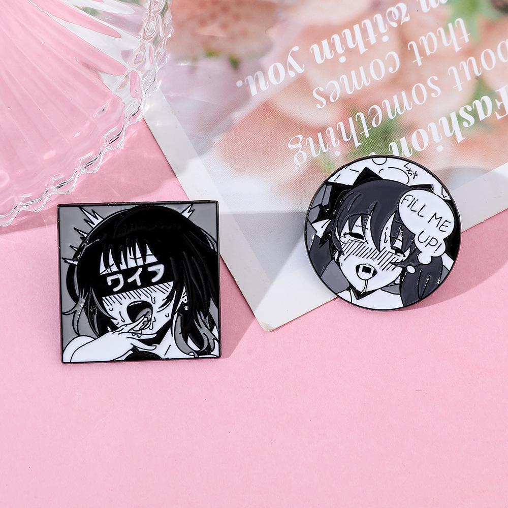 Broche de aleación con forma de gota de aceite para niña, insignia de metal con personalidad creativa de dibujos animados japoneses