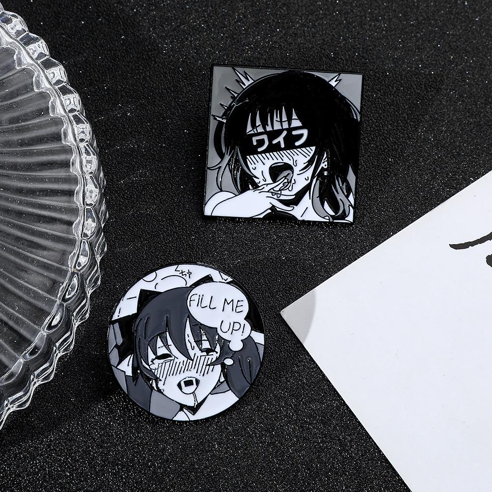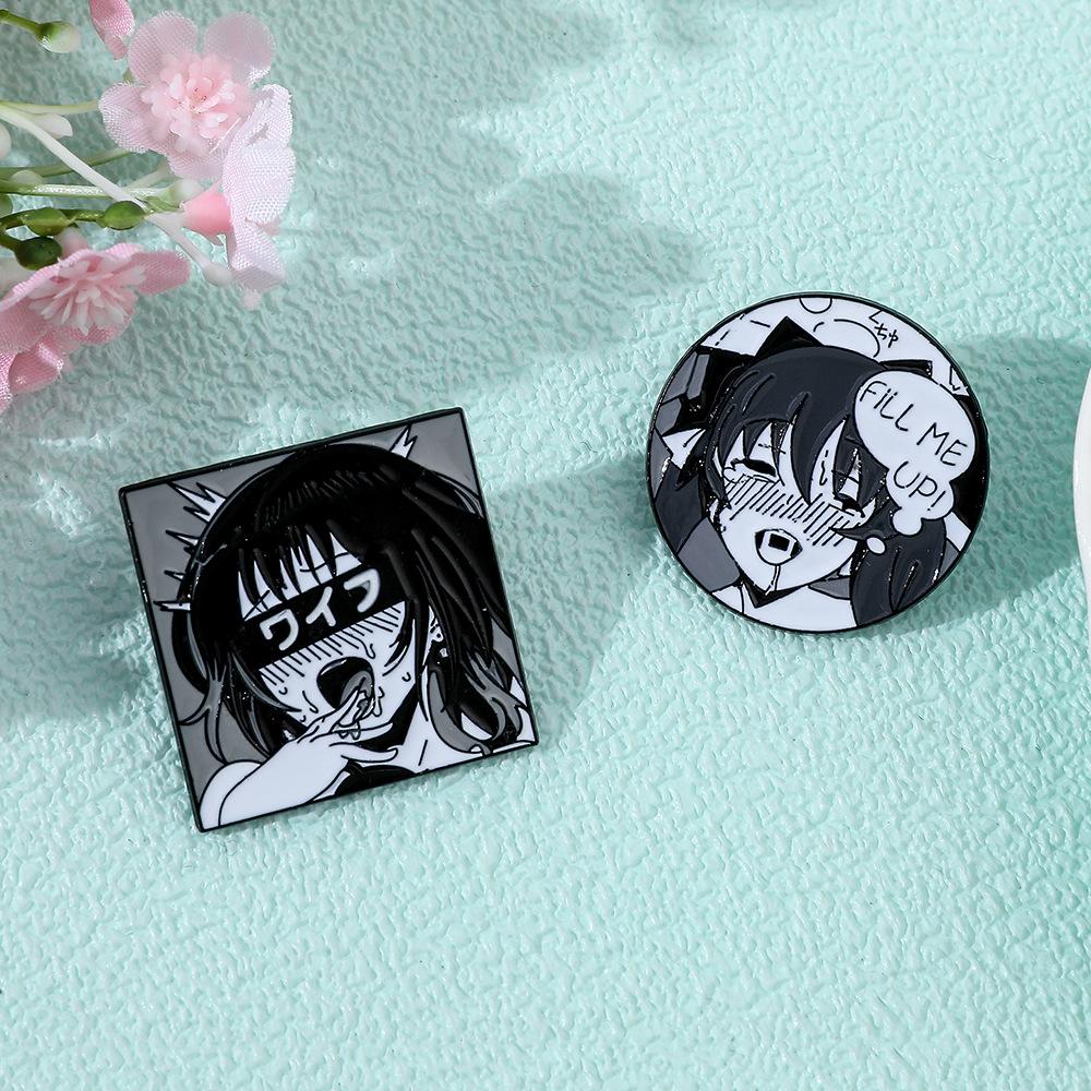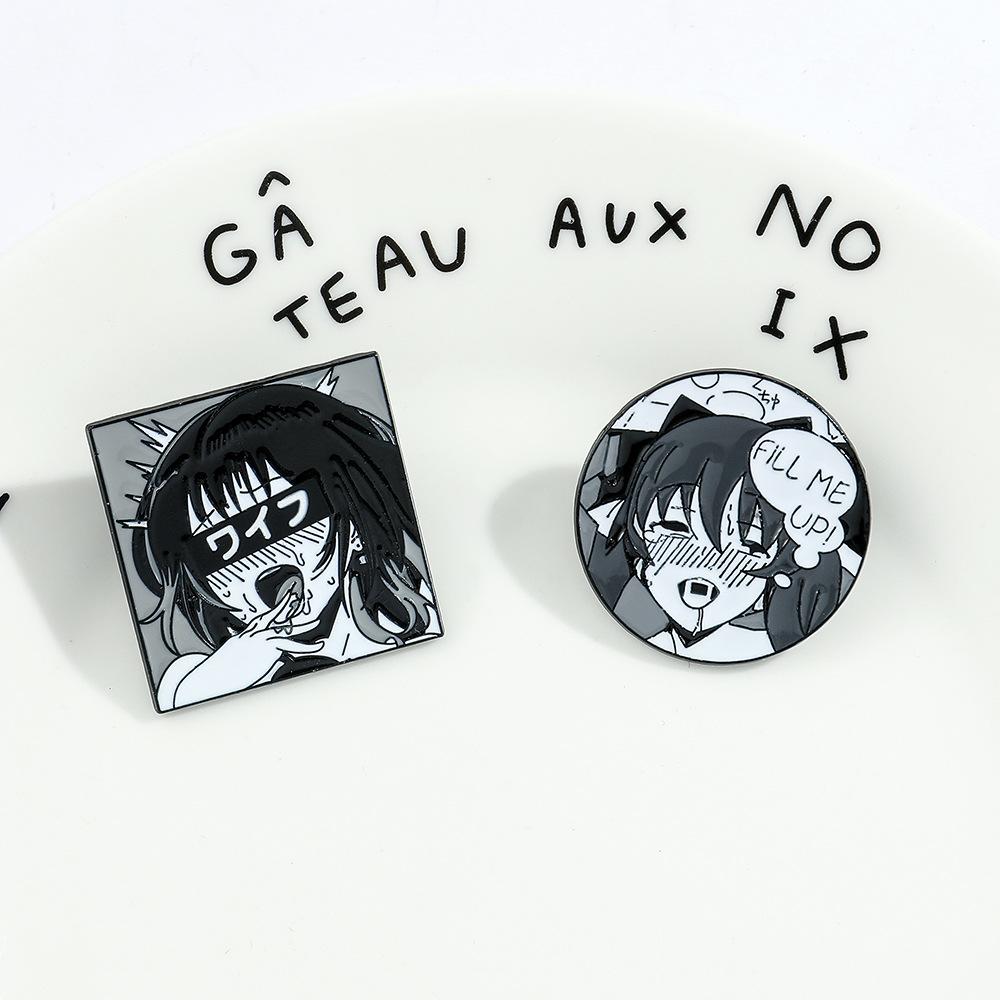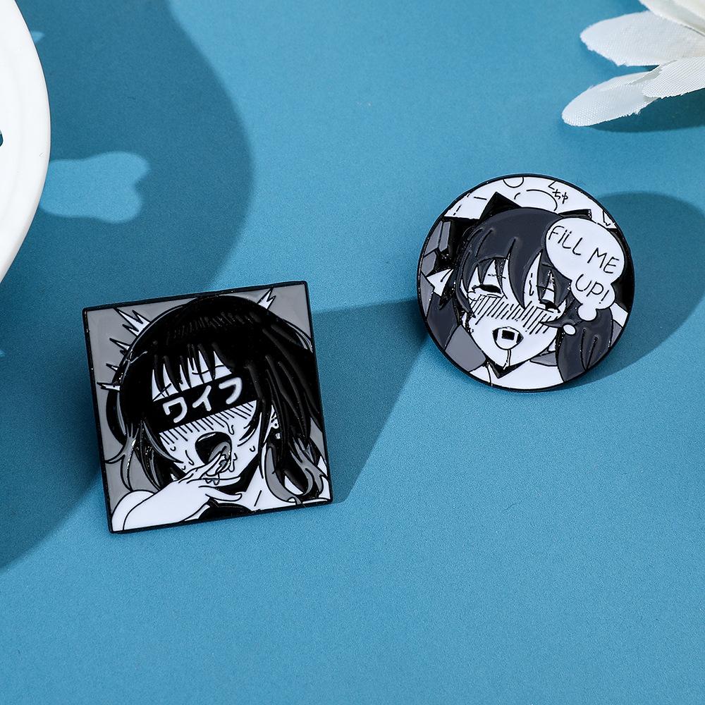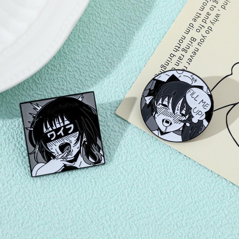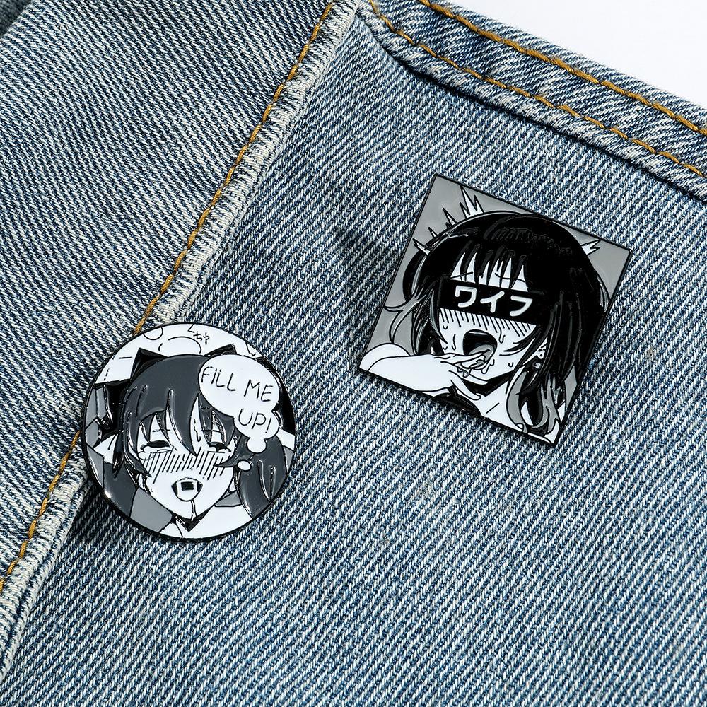 Broche de aleación con forma de gota de aceite para niña, insignia de metal con personalidad creativa de dibujos animados japoneses