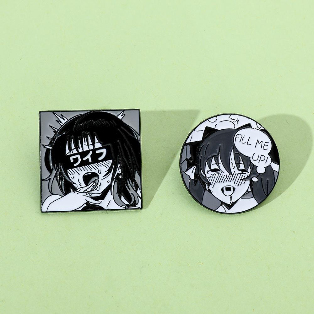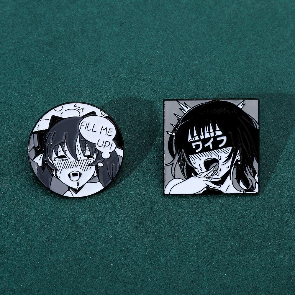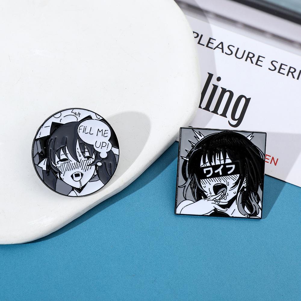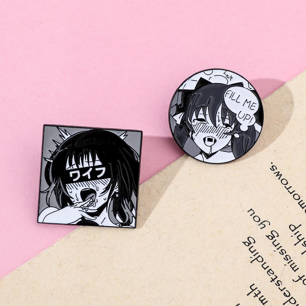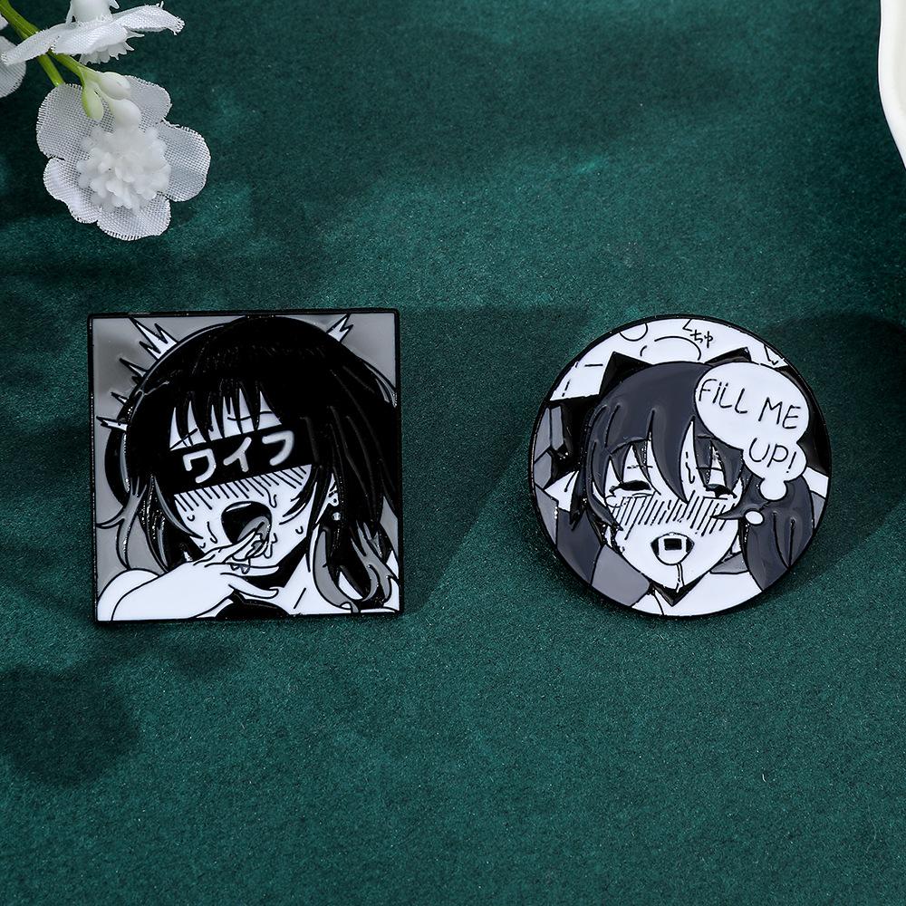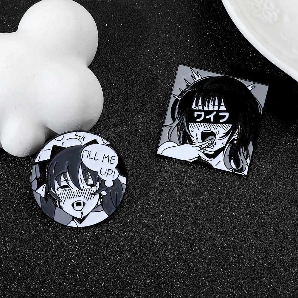 Broche de aleación con forma de gota de aceite para niña, insignia de metal con personalidad creativa de dibujos animados japoneses