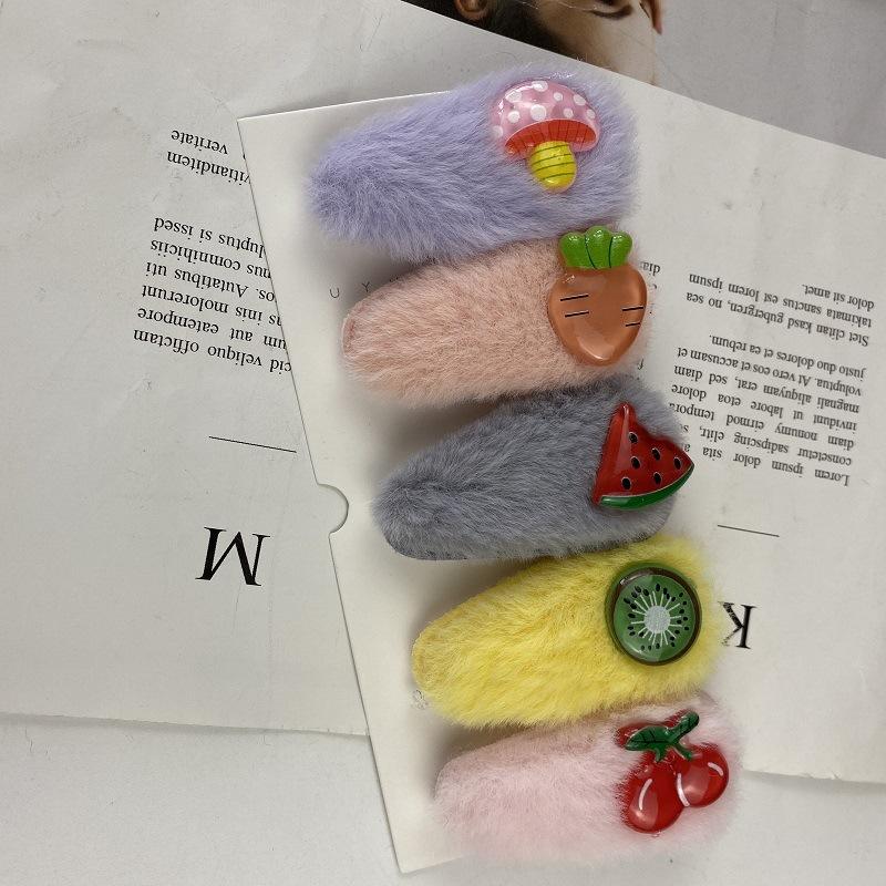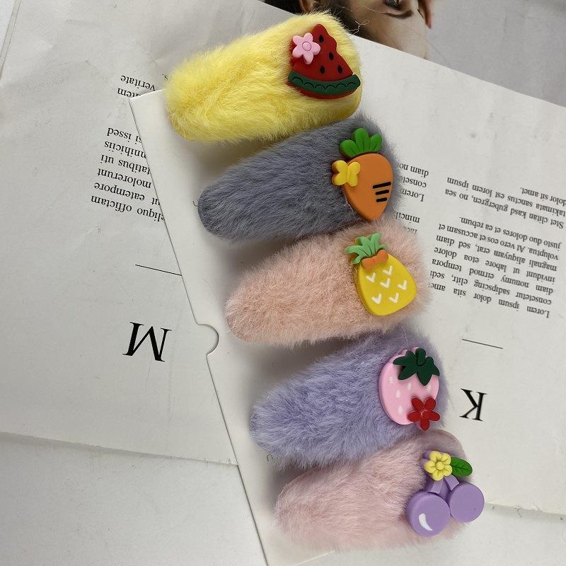Venta directa de fábrica al por mayor de pinzas para el cabello para bebés, pinzas para el cabello para niñas, lindas pinzas para el cabello de cartón con dibujos de frutas, accesorios para el cabello para niños, pinzas para el cabello