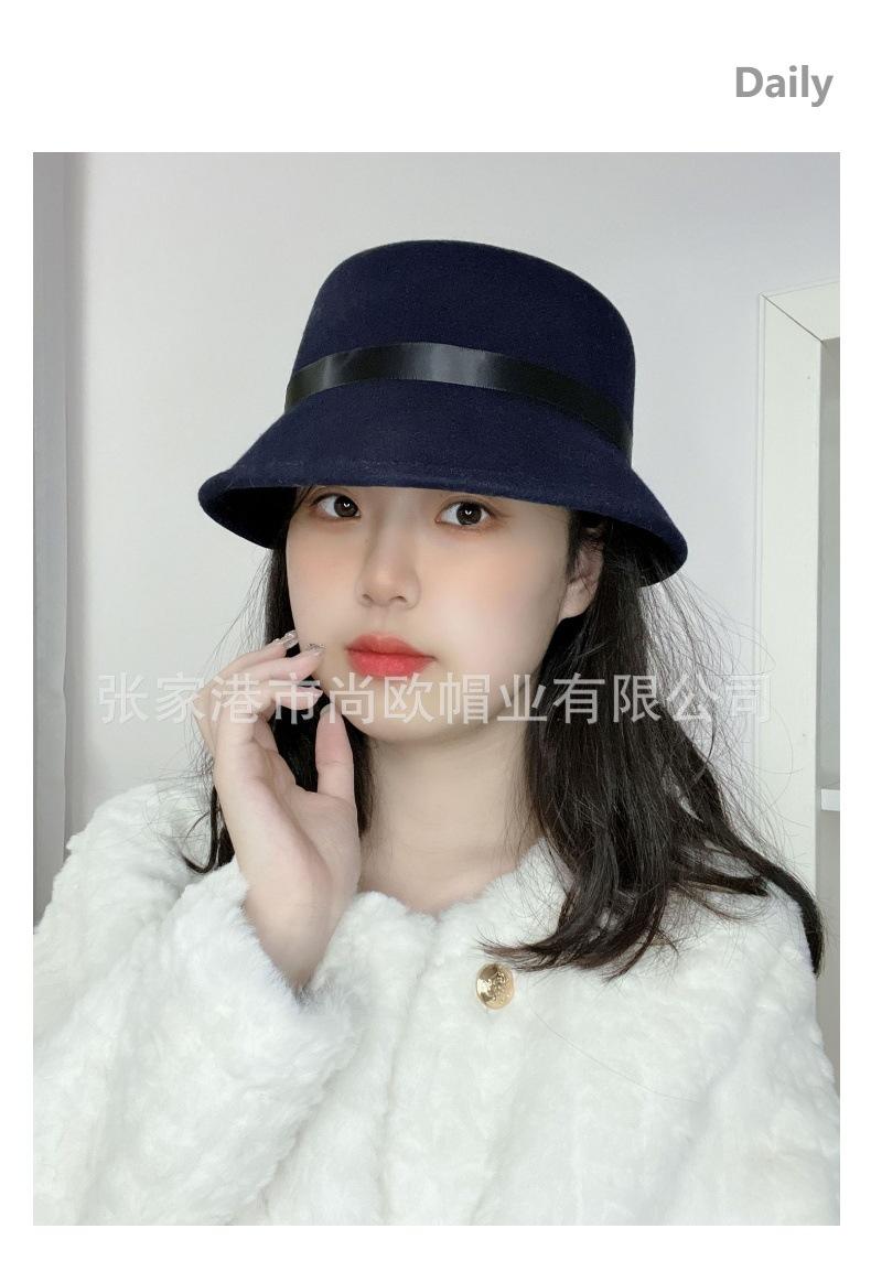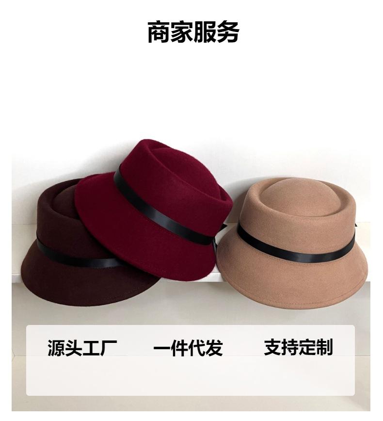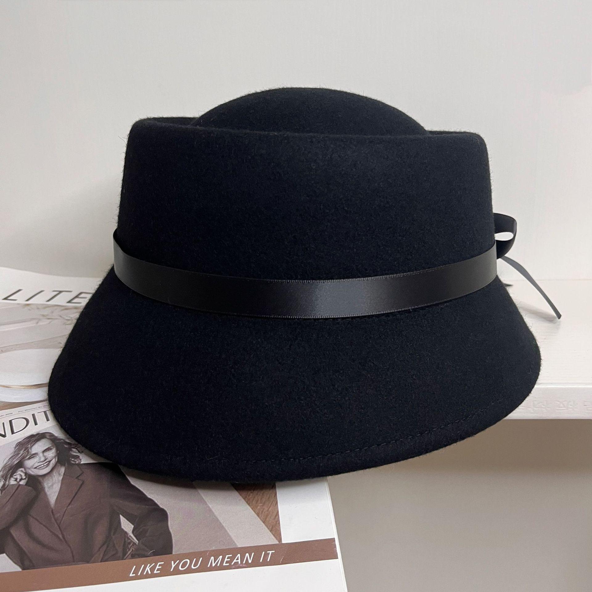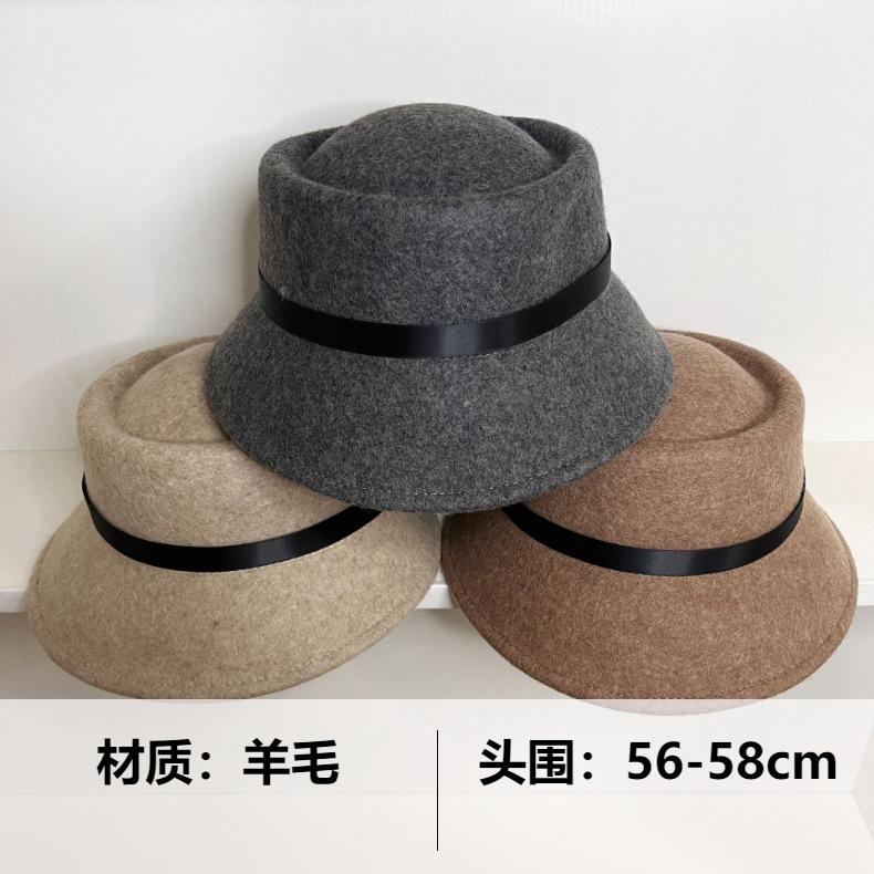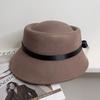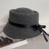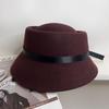 Otoño e Invierno nuevo sombrero de copa retro estilo Hepburn diario versátil temperamento sombrero de fieltro de lana para mujer estilo dorado sombrero de fieltro de lana