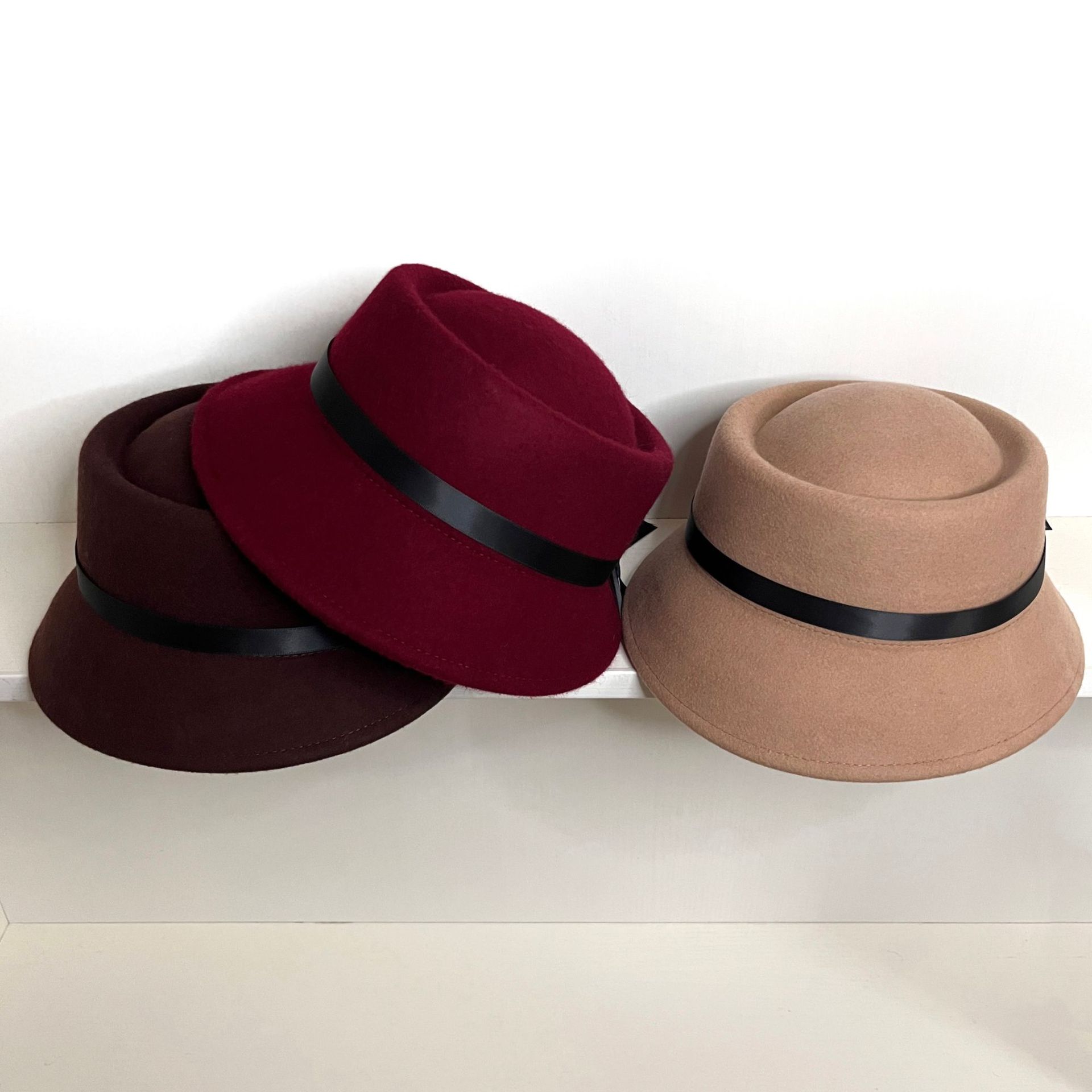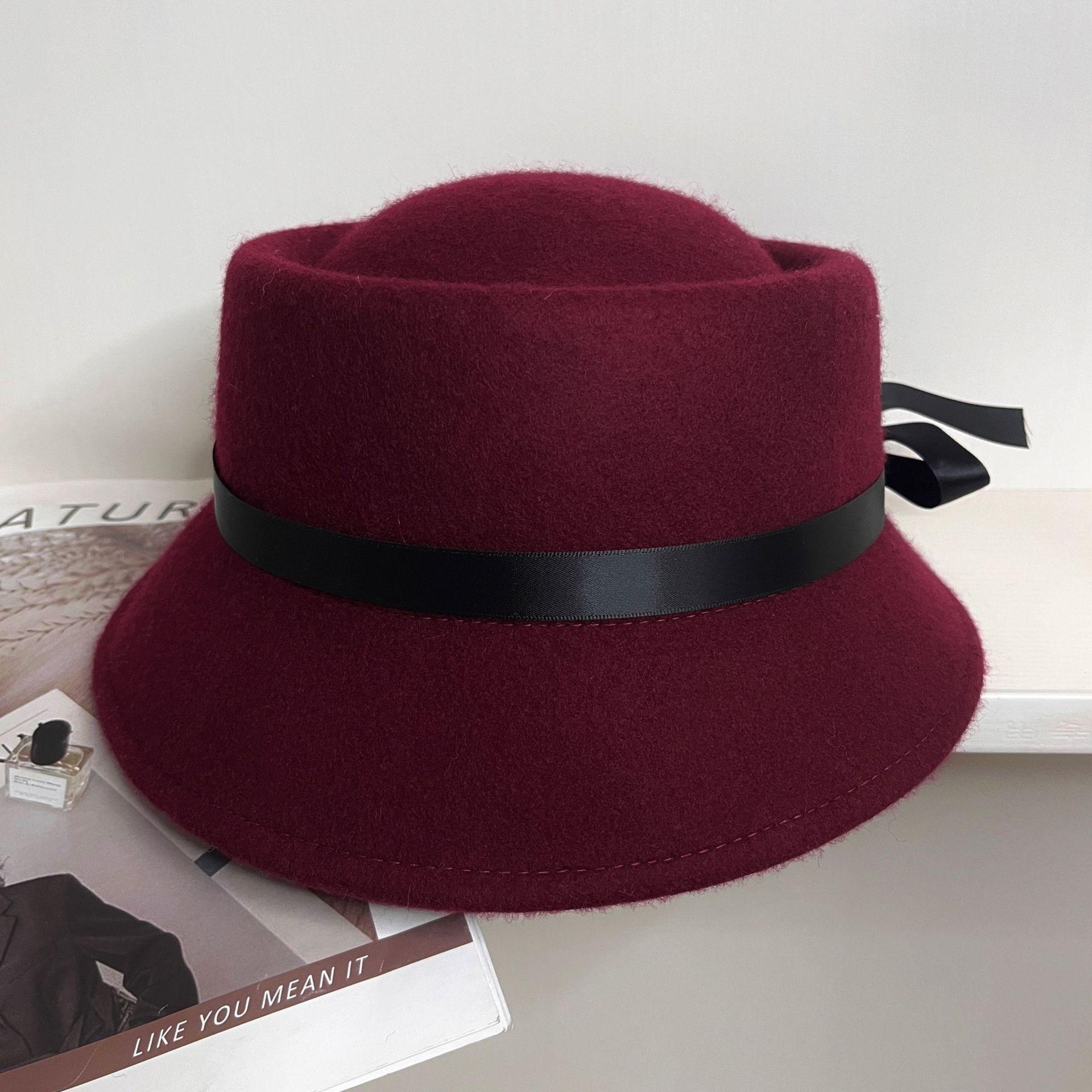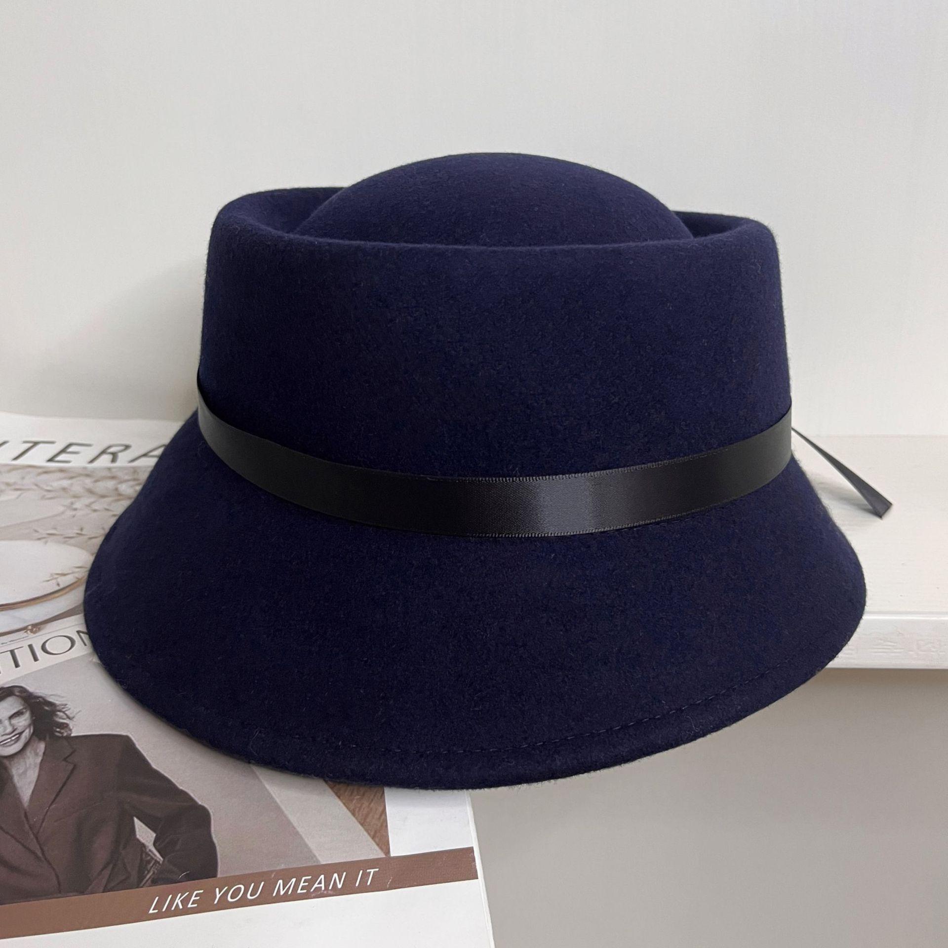 Otoño e Invierno nuevo sombrero de copa retro estilo Hepburn diario versátil temperamento sombrero de fieltro de lana para mujer estilo dorado sombrero de fieltro de lana