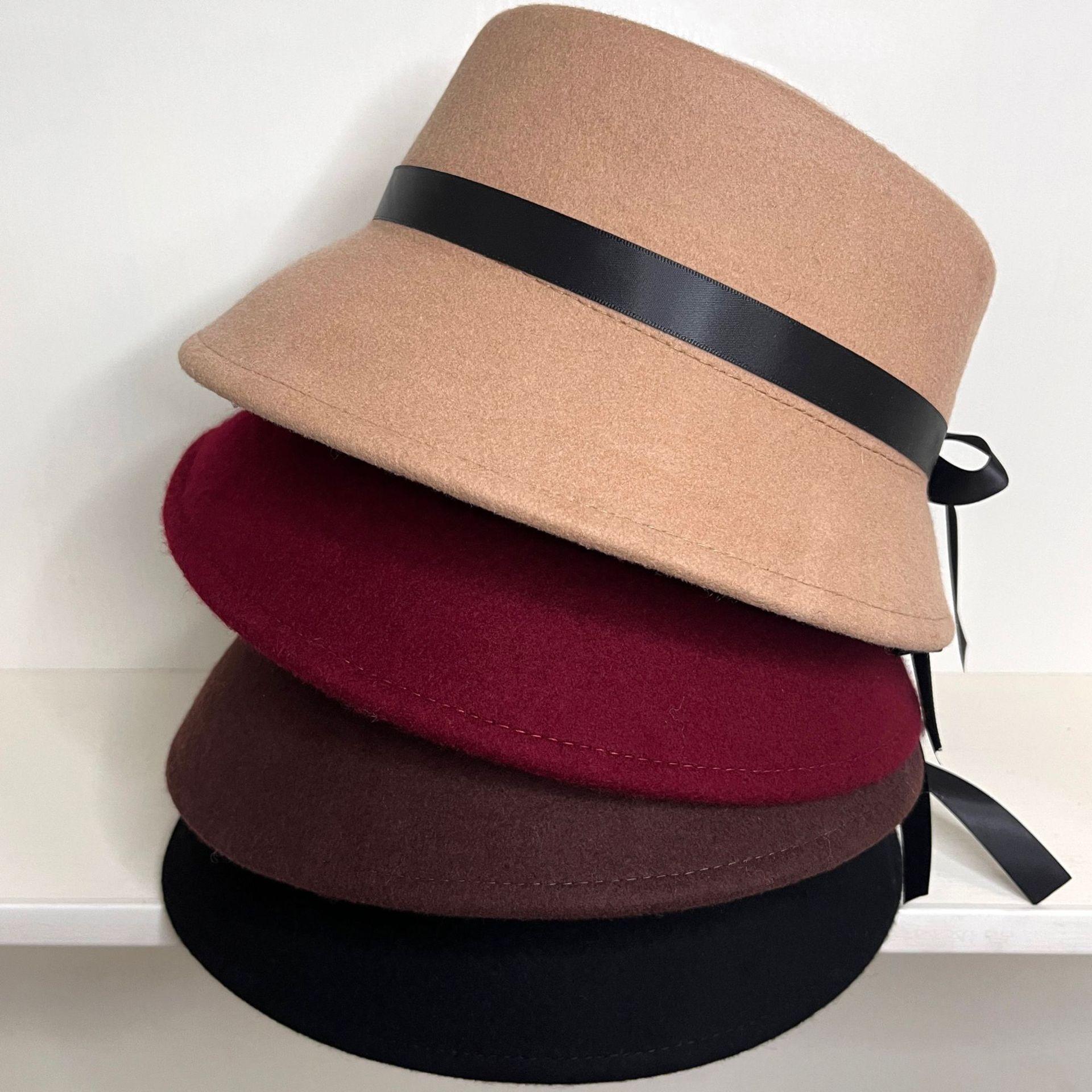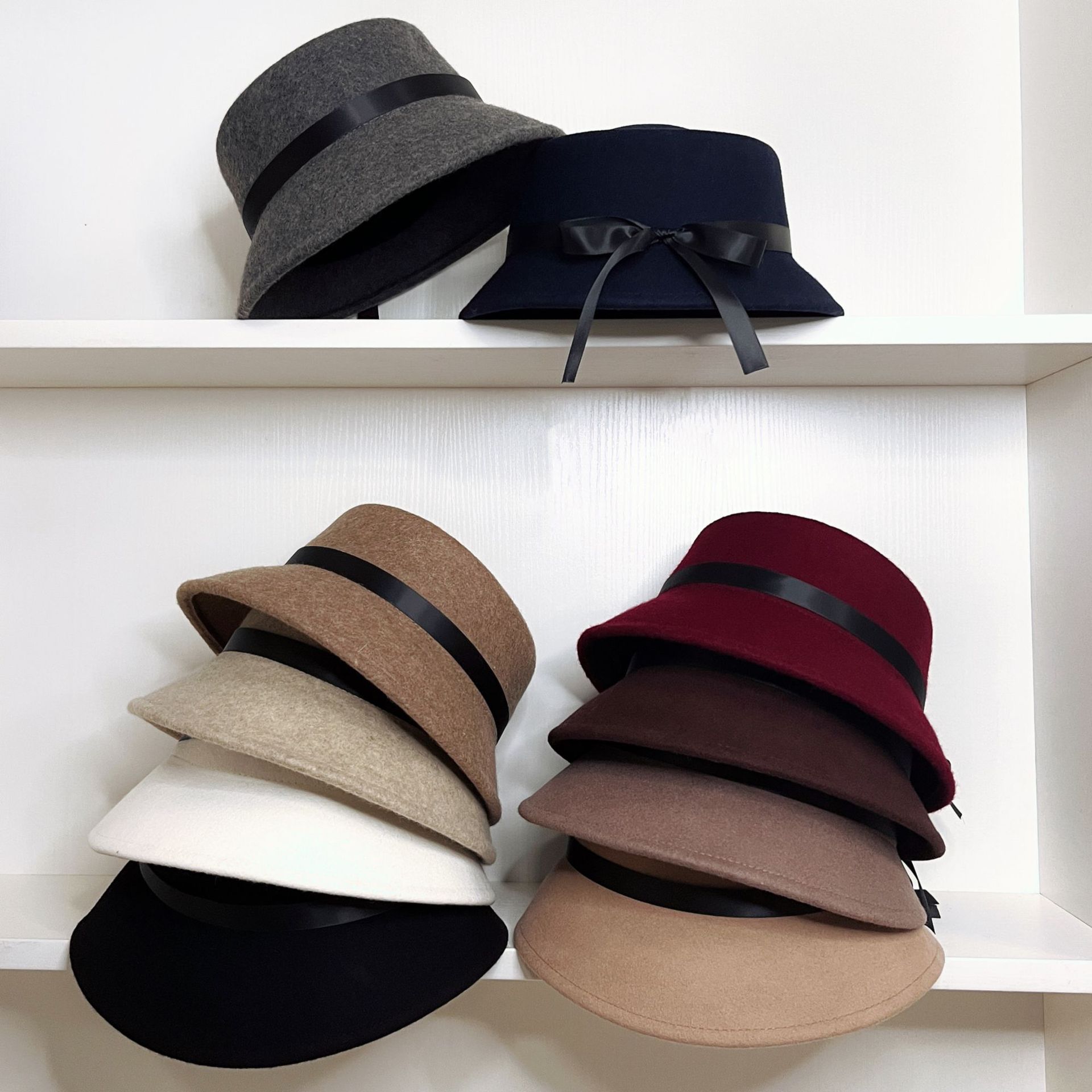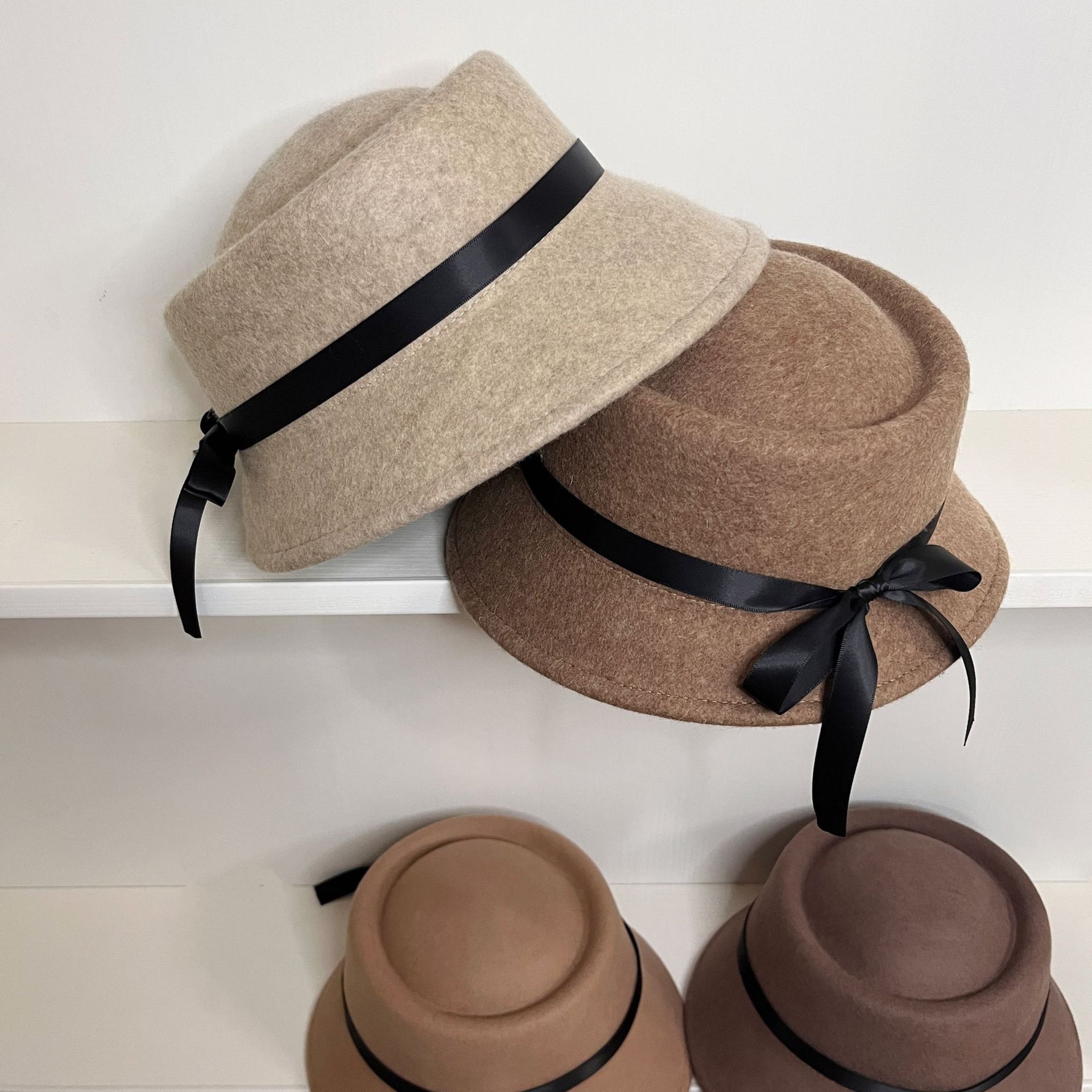Black + thin bow basin hat, White + thin bow basin hat, Coffee + fine bow basin hat, Mixed Coffee + fine bow b...