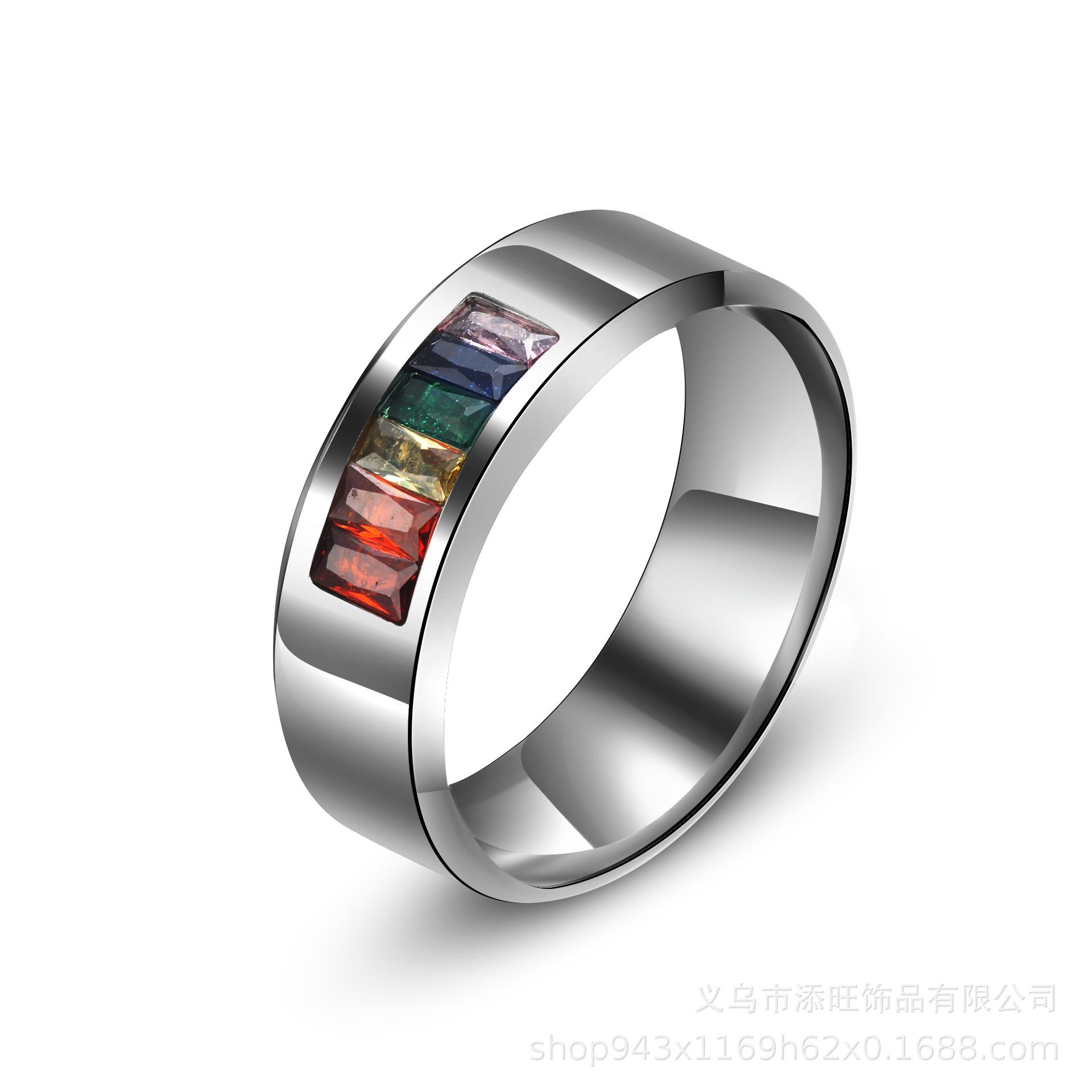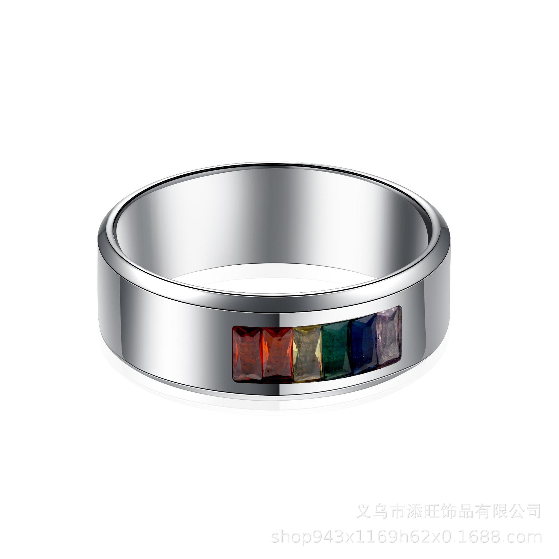 Anillo Arcoíris de Circonita Incrustada con Espejo de Moda Japonesa y Coreana, Anillo de Pareja de Circonita Cuadrada con Espejo de Borde Recto Moderno para Hombres y Mujeres