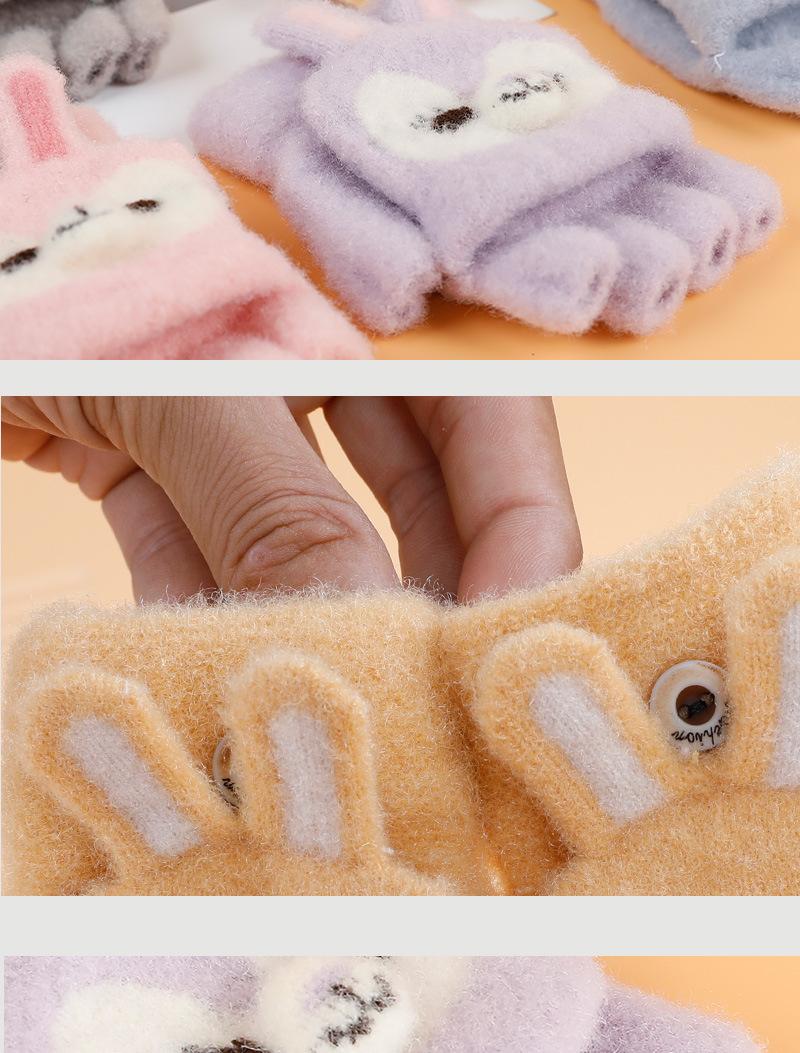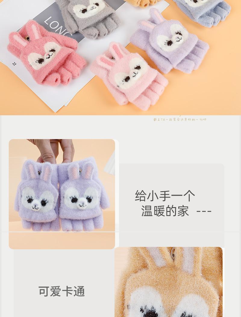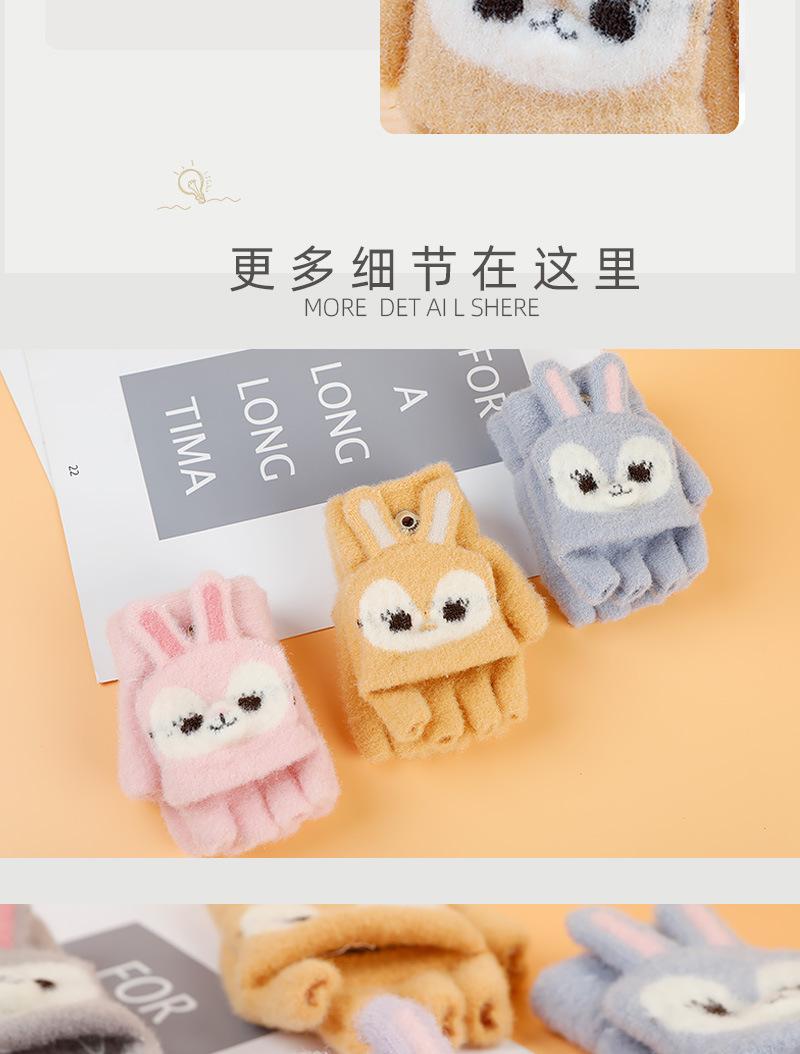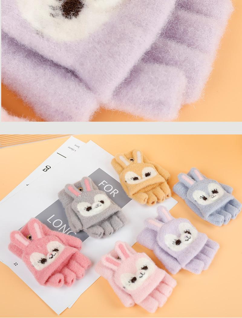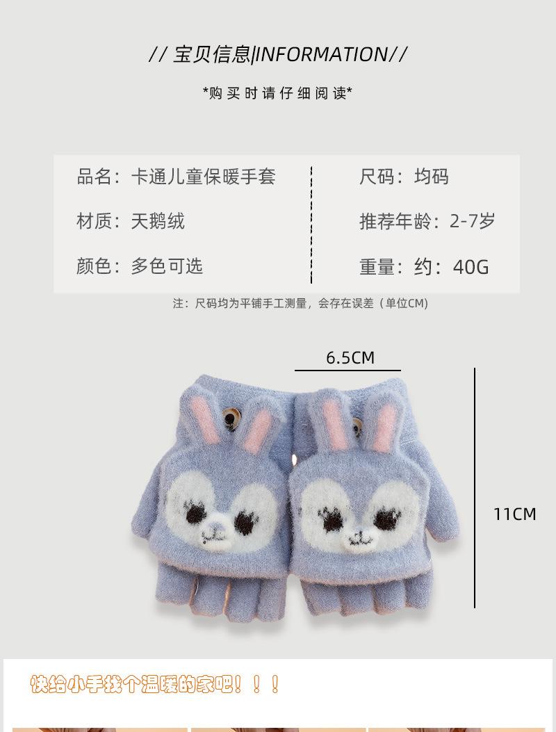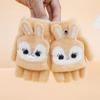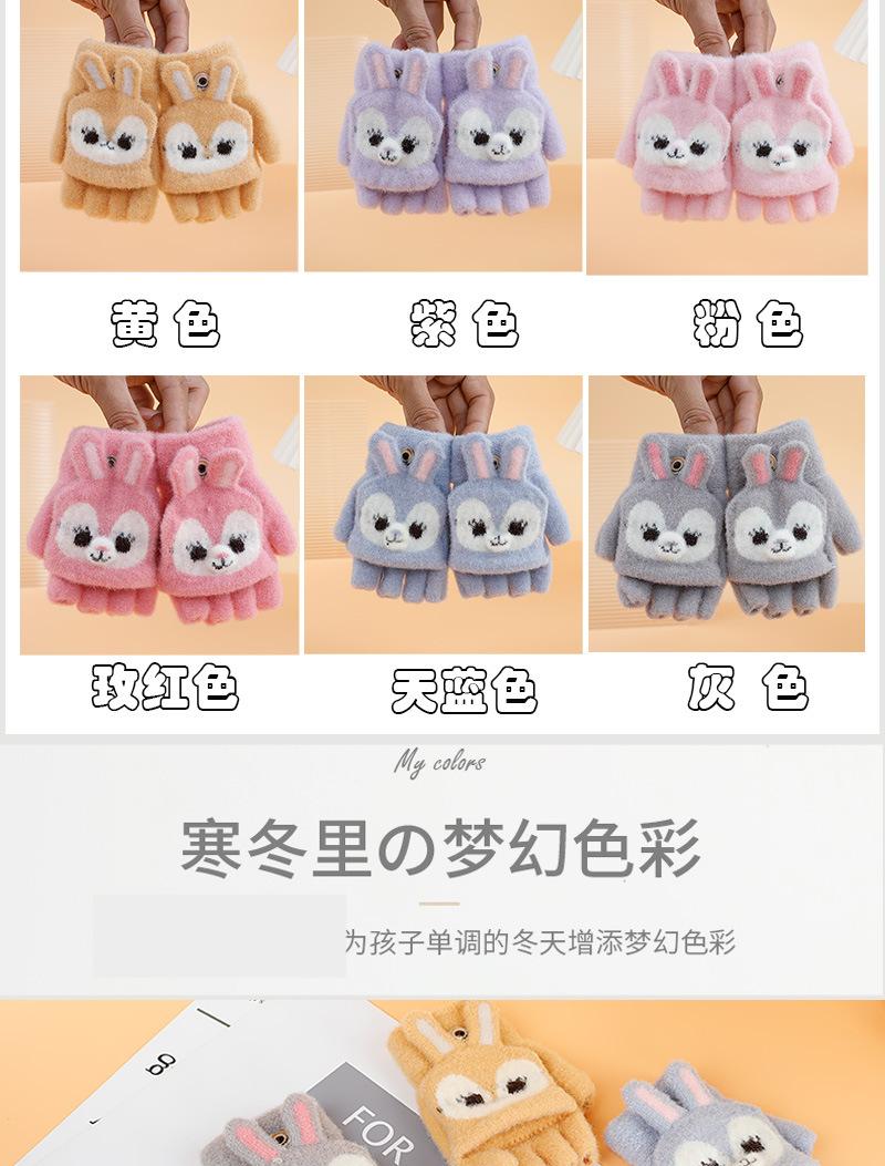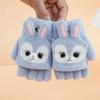 Guantes de otoño e invierno con diseño de conejo de dibujos animados para niños, bonitos guantes de medio dedo para estudiantes, guantes cálidos de terciopelo a prueba de frío.