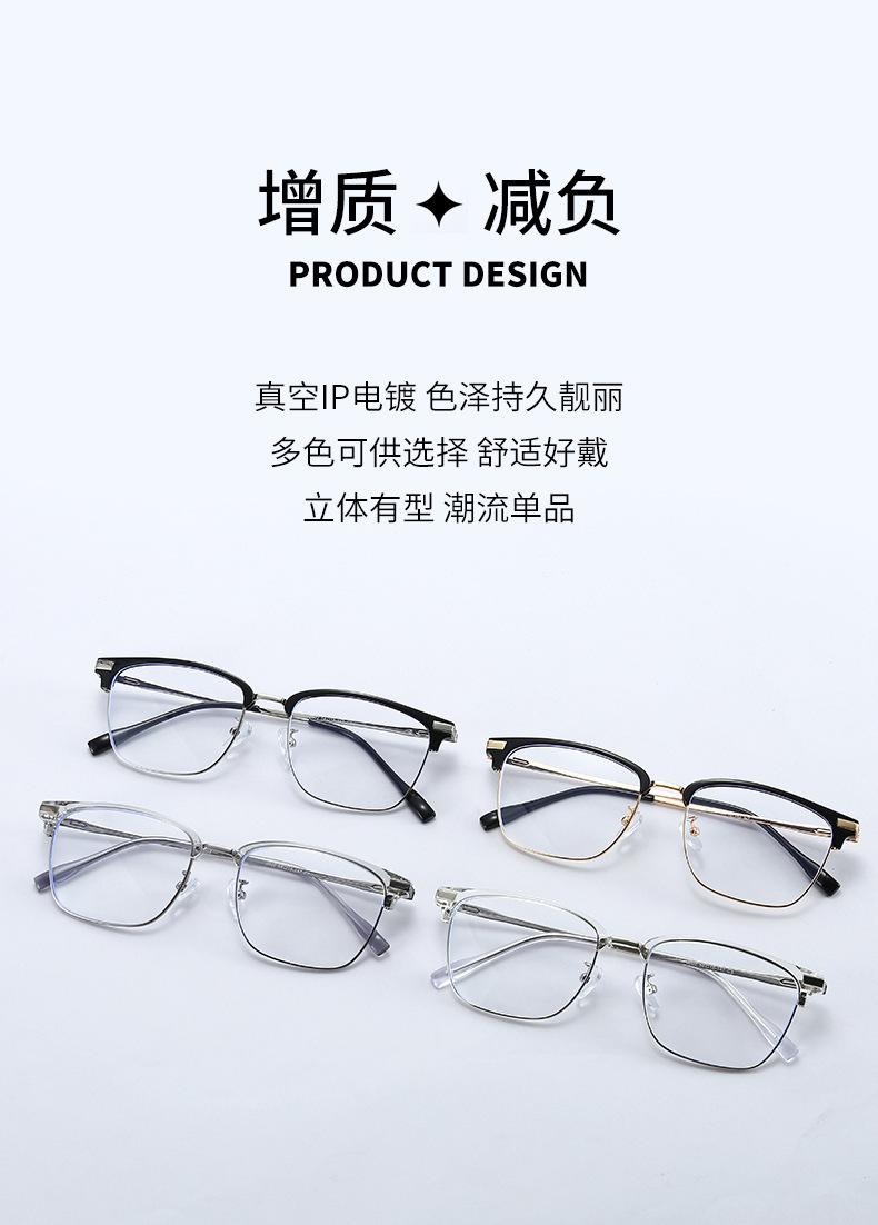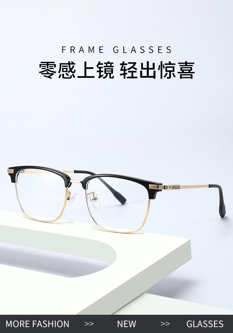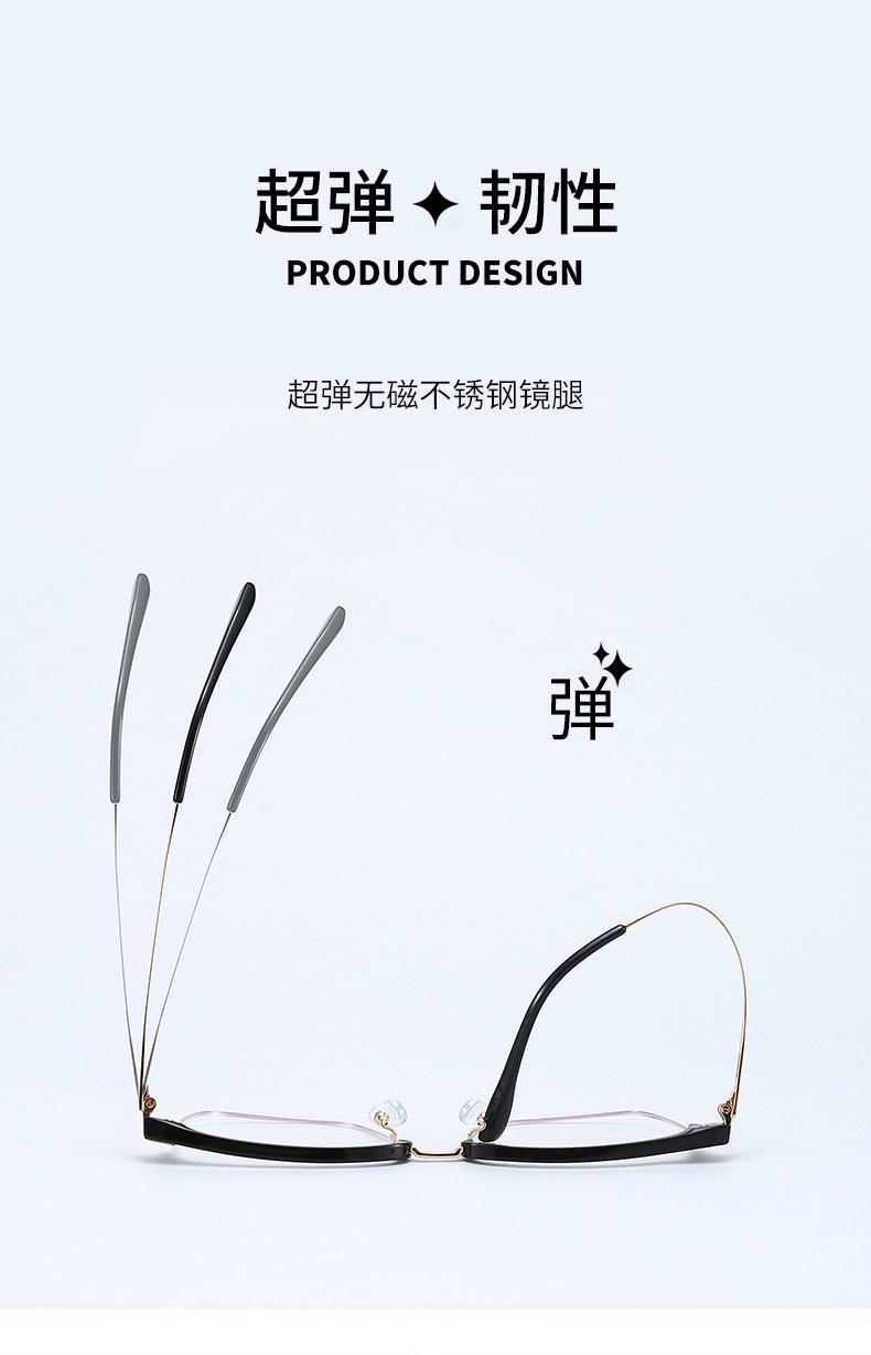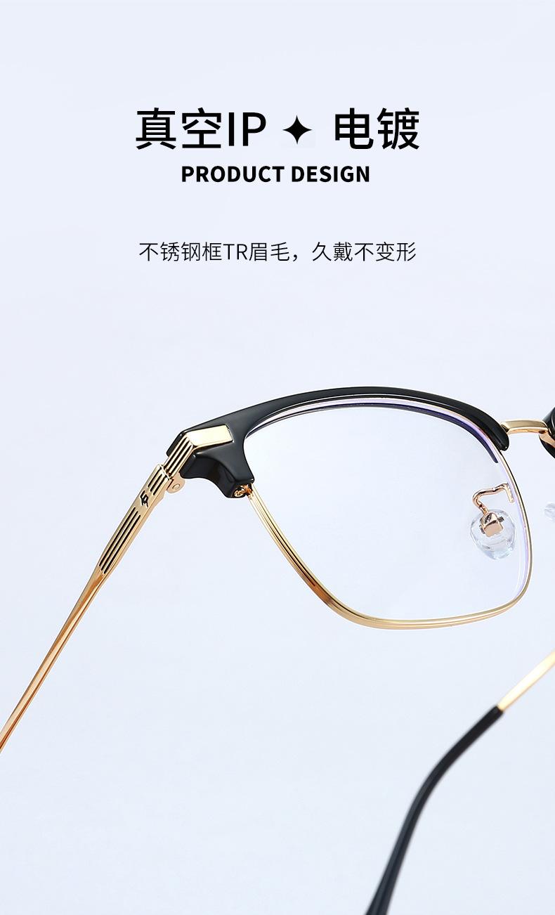 Nueva montura de gafas TR90 de moda para mujer, montura retro con cejas, montura de gafas de acero inoxidable con revestimiento IP galvanizado para hombre.