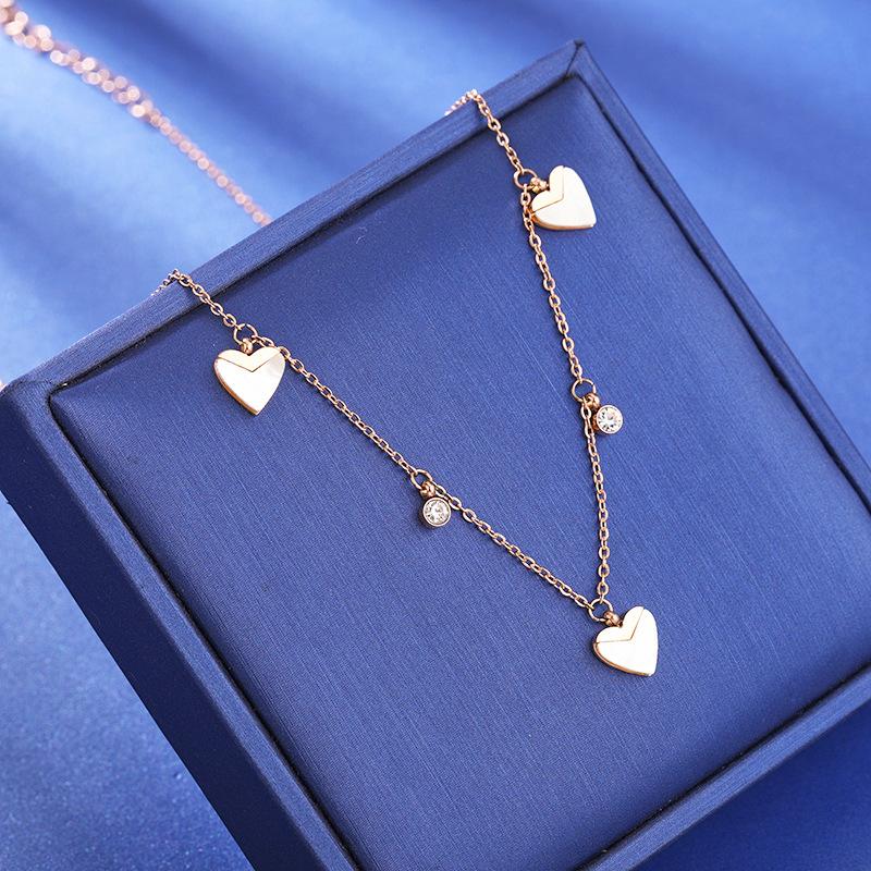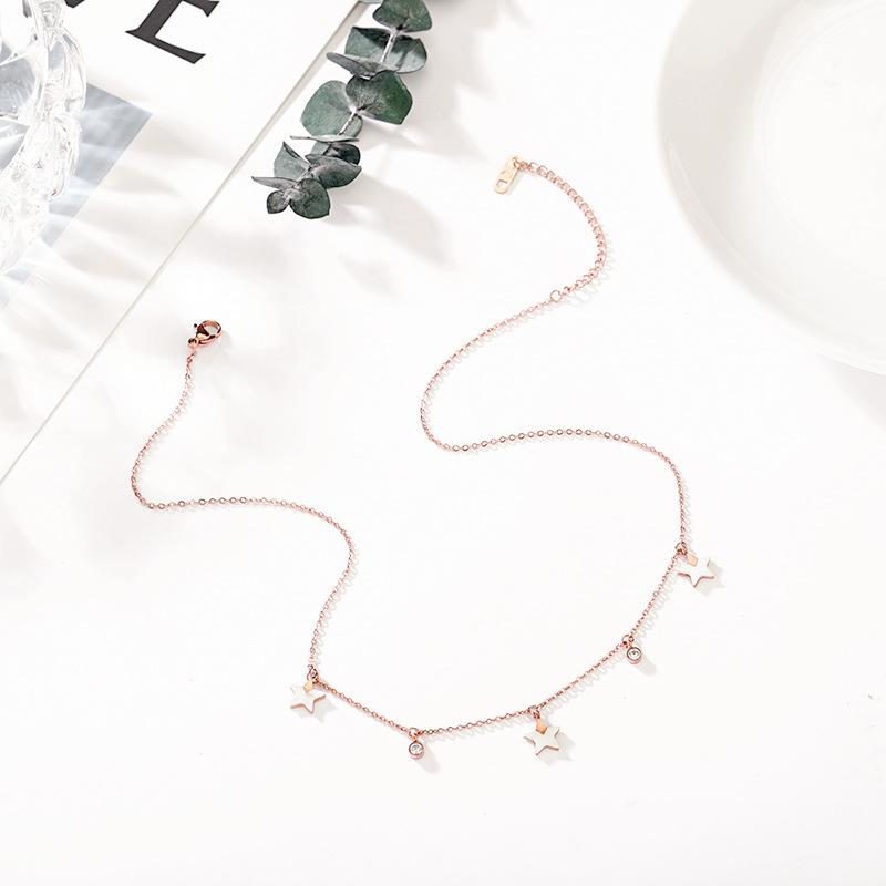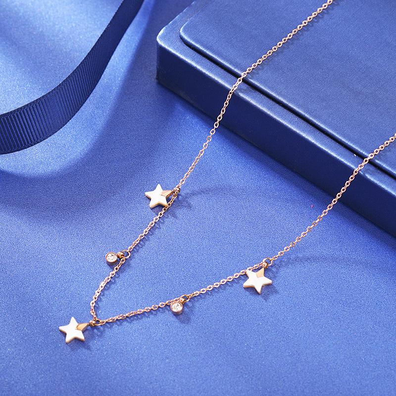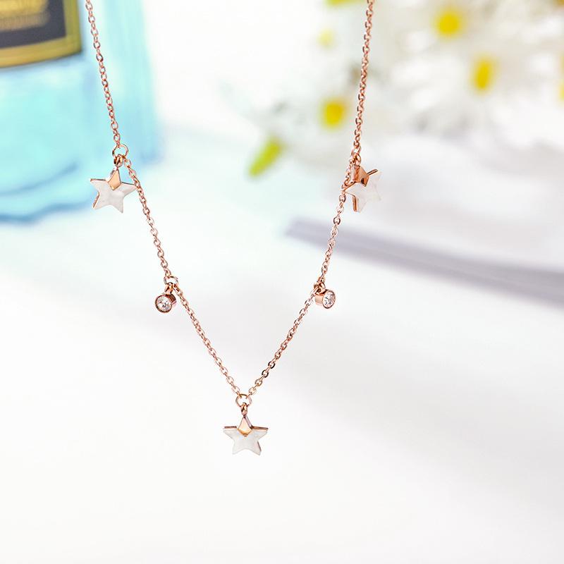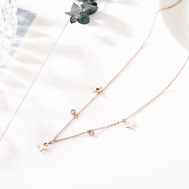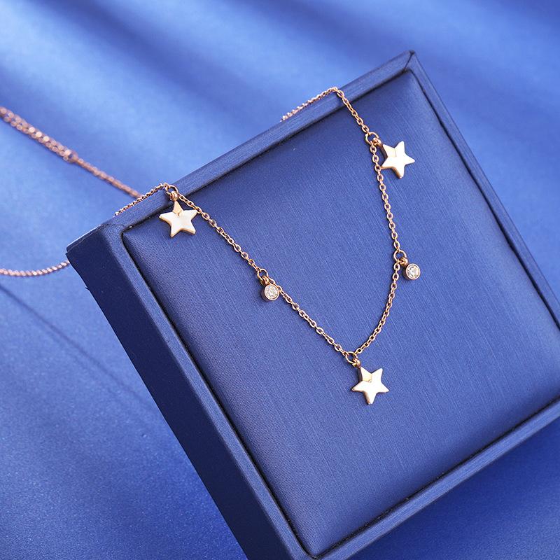 Nuevo collar de concha de tres estrellas de oro rosa y acero de titanio para mujer, moda europea y americana, cadena de clavícula con forma de estrella de aliento de bebé, venta al por mayor
