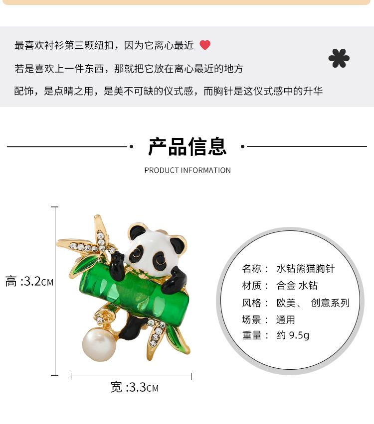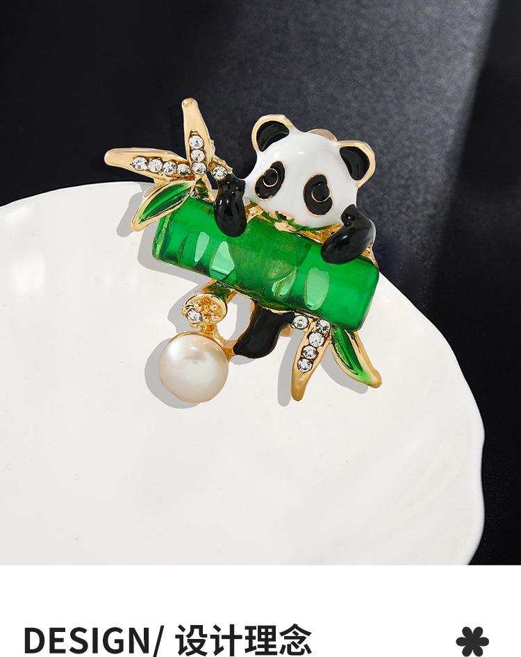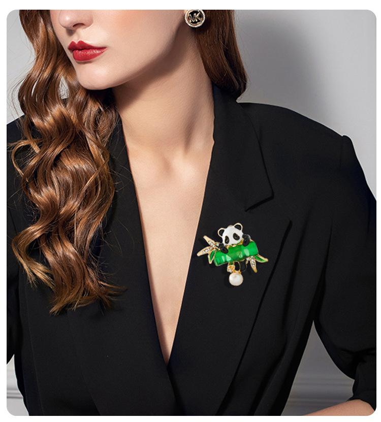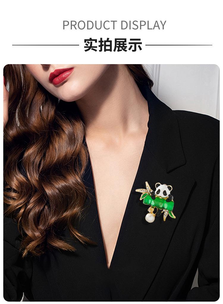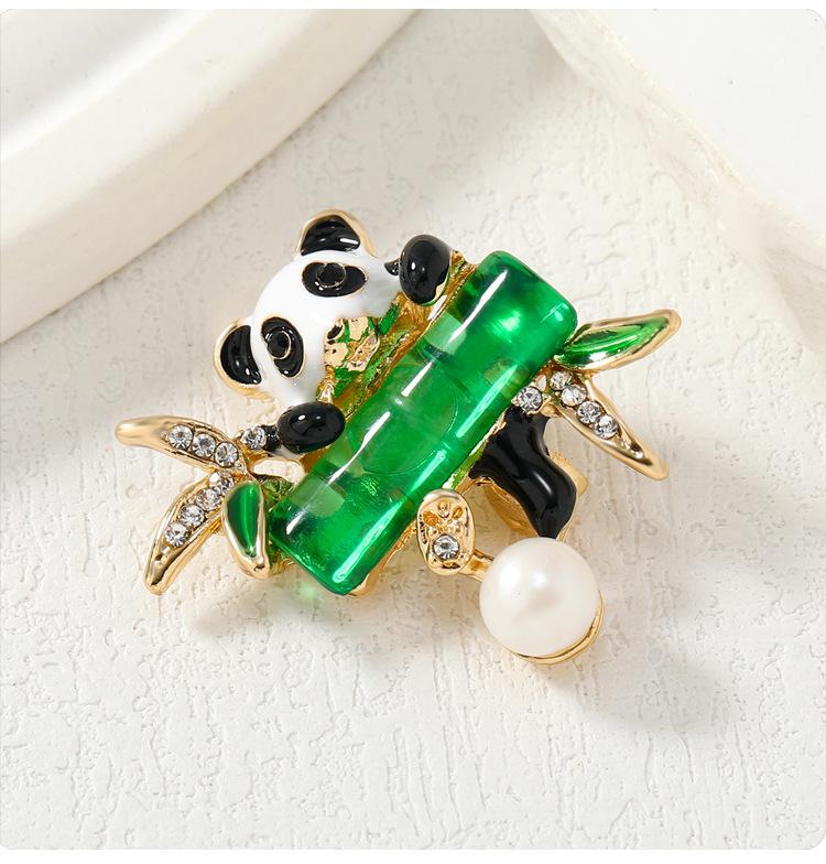 Broche de bambú con forma de panda y perla de aleación transfronteriza europea y americana, accesorio creativo para traje de mujer