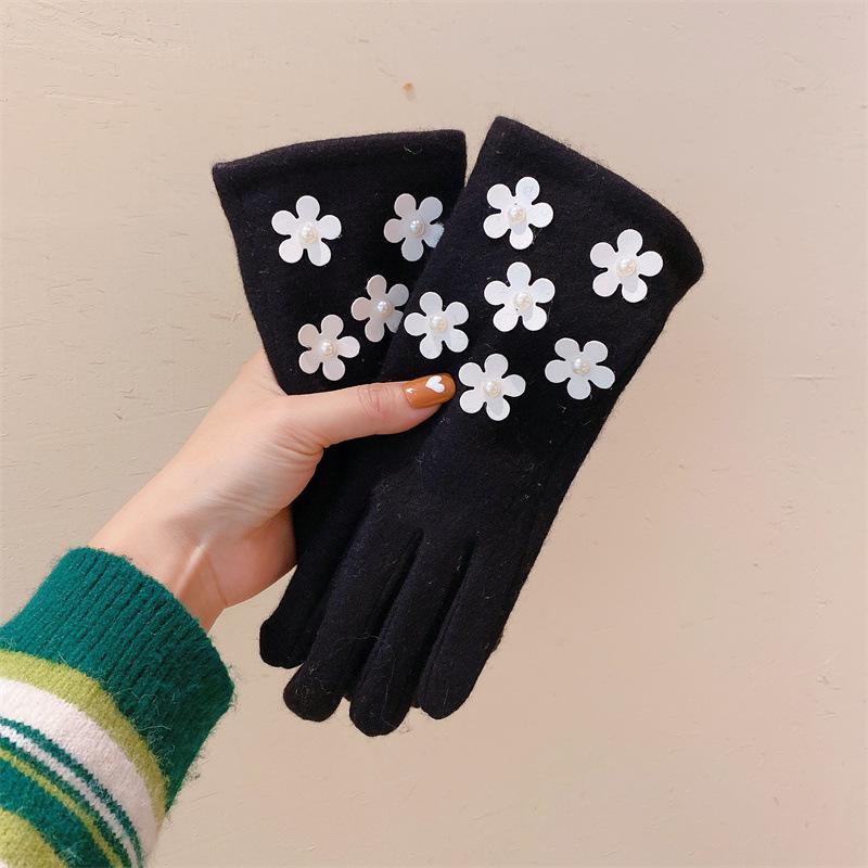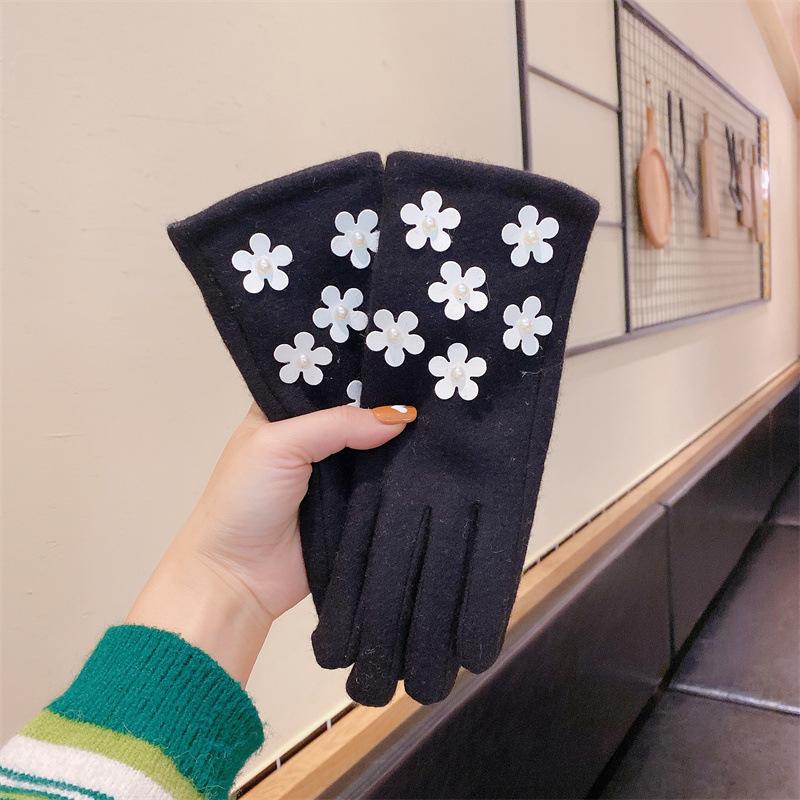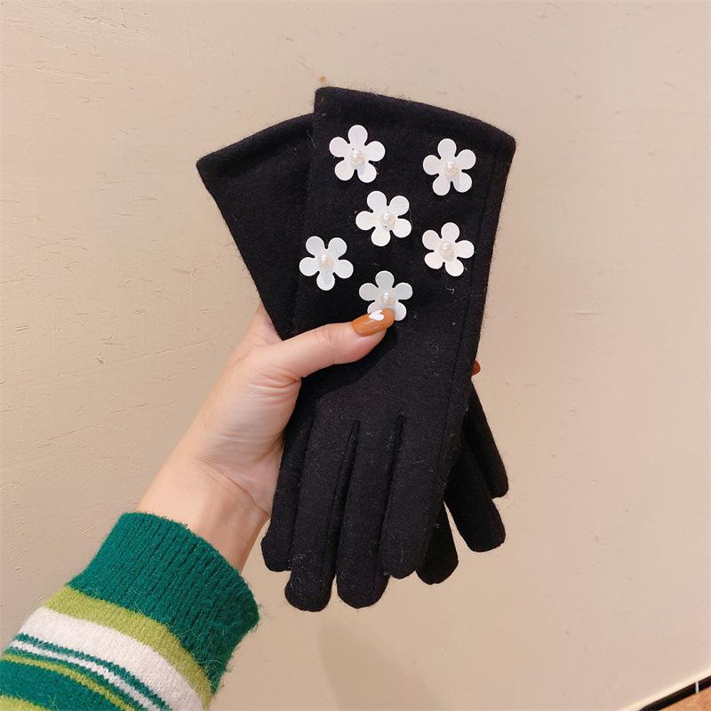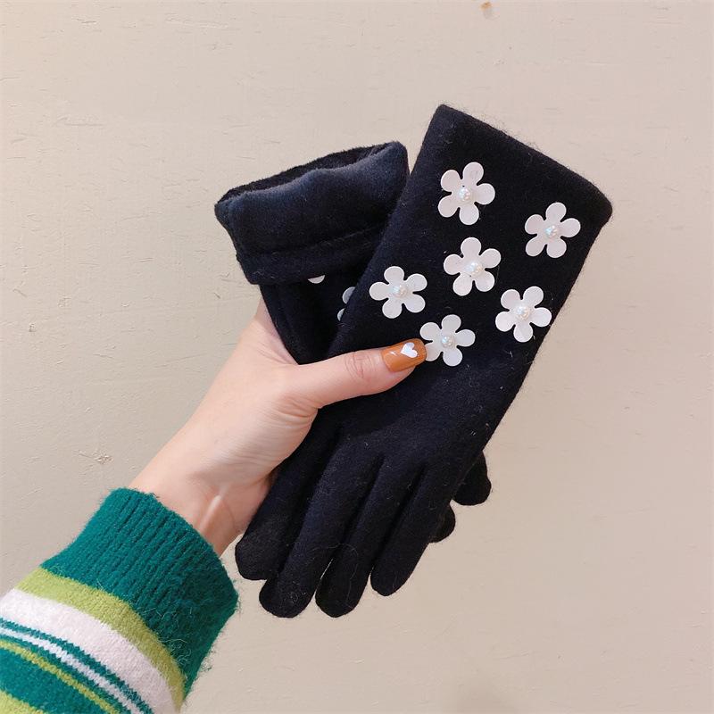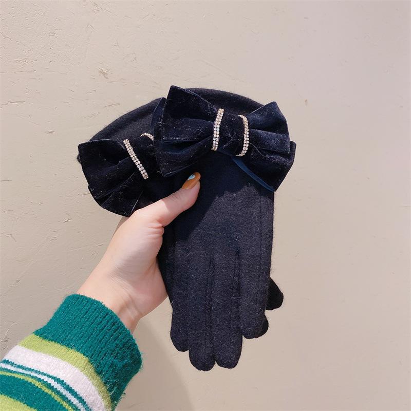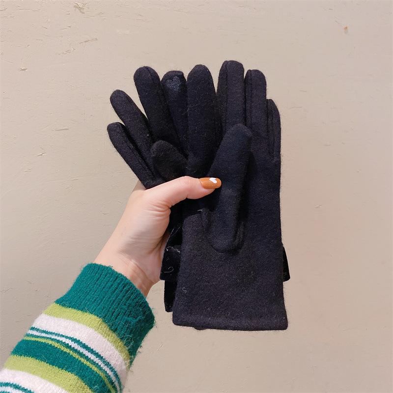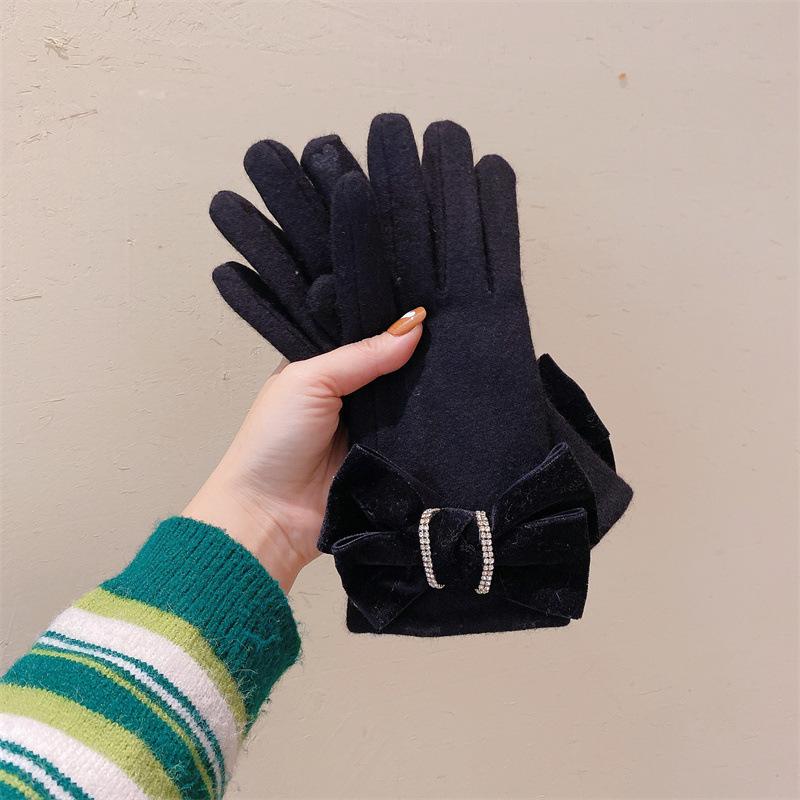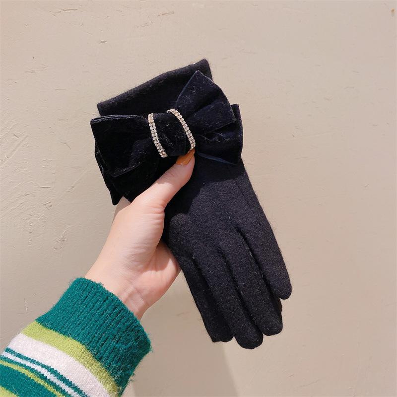 Guantes de invierno nuevos de estilo japonés, dulces, fáciles de combinar, con lazo de flores pequeñas, resistentes al frío y cálidos para pantallas táctiles.