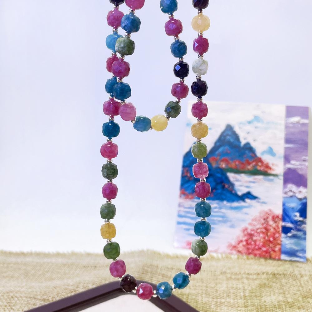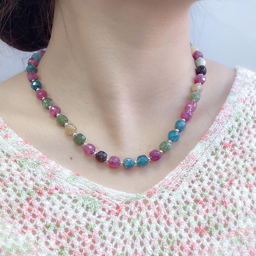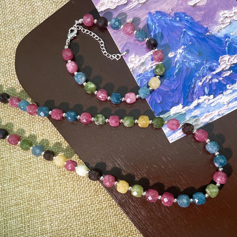 Collar de cuentas de piedra natural de color dopamina, pulsera retro con personalidad de nicho y temperamento degradado, joyería