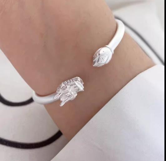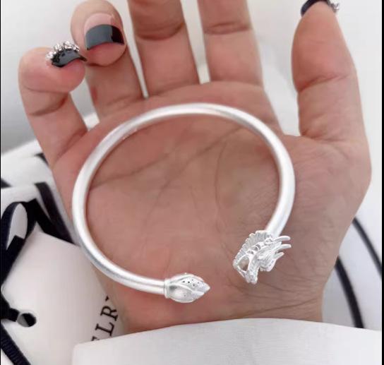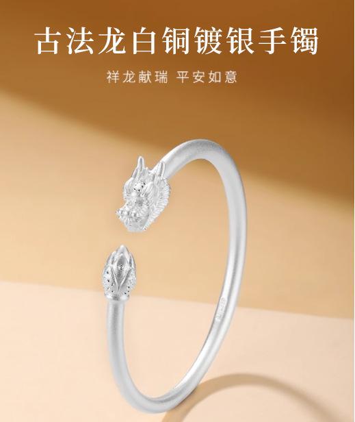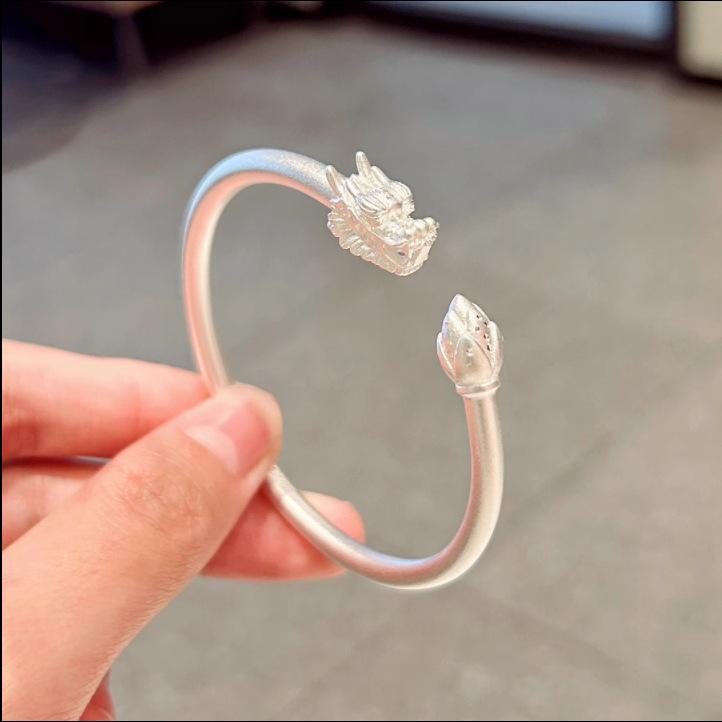 Venta al por mayor de fábrica año del dragón gran auspicioso para hombres y mujeres nuevo lujo material de cobre plateado pulsera de capullo contraparte dragón antiguo
