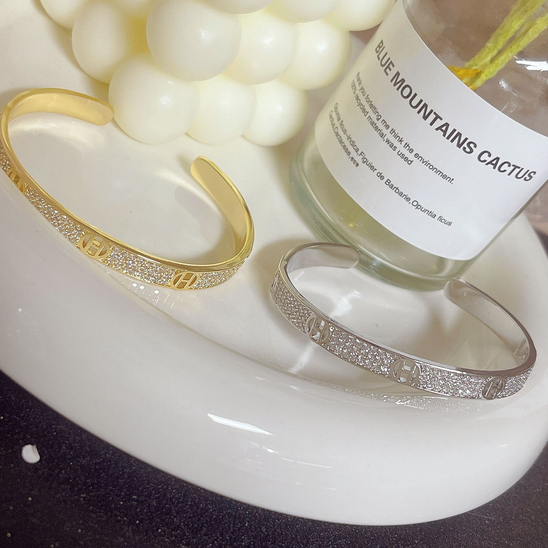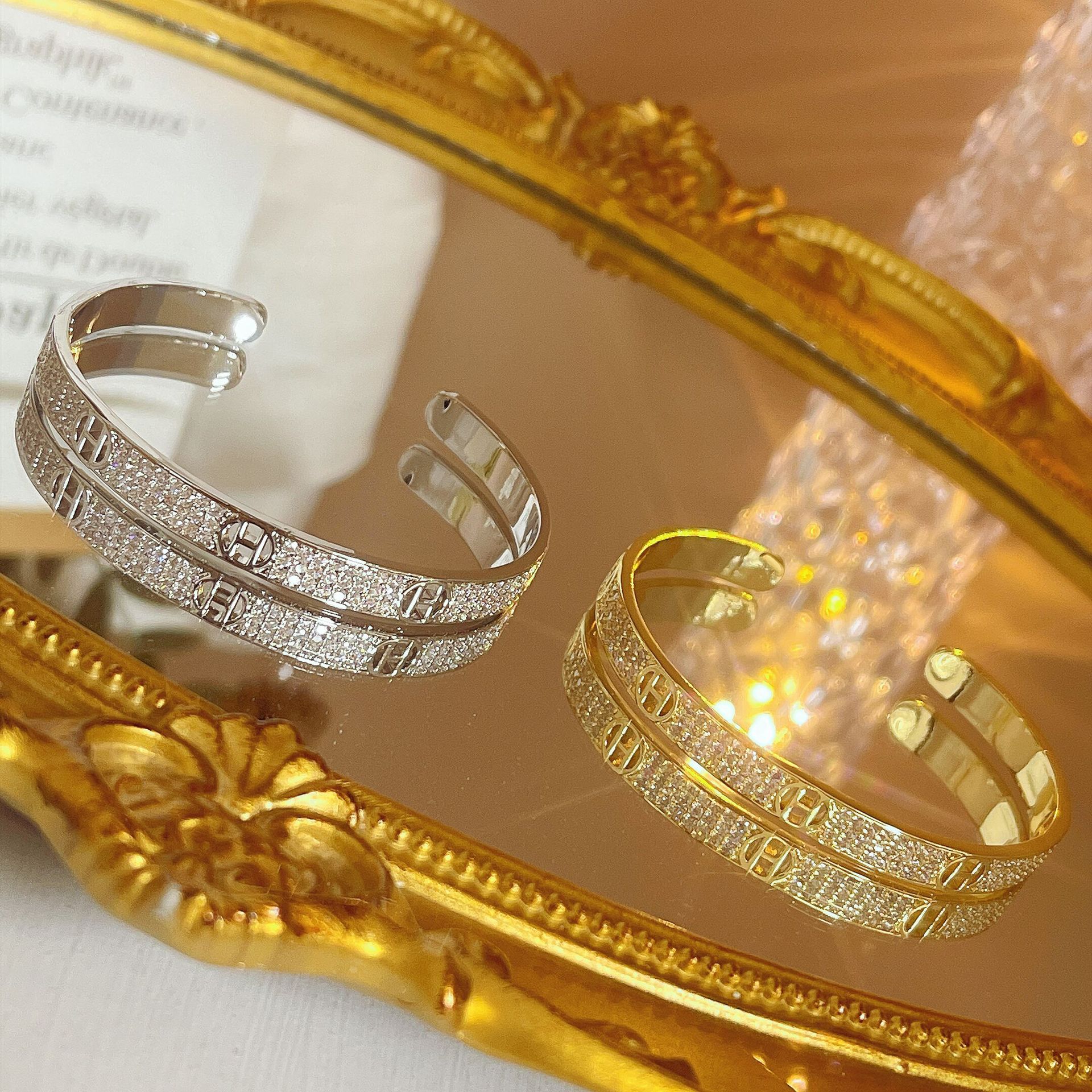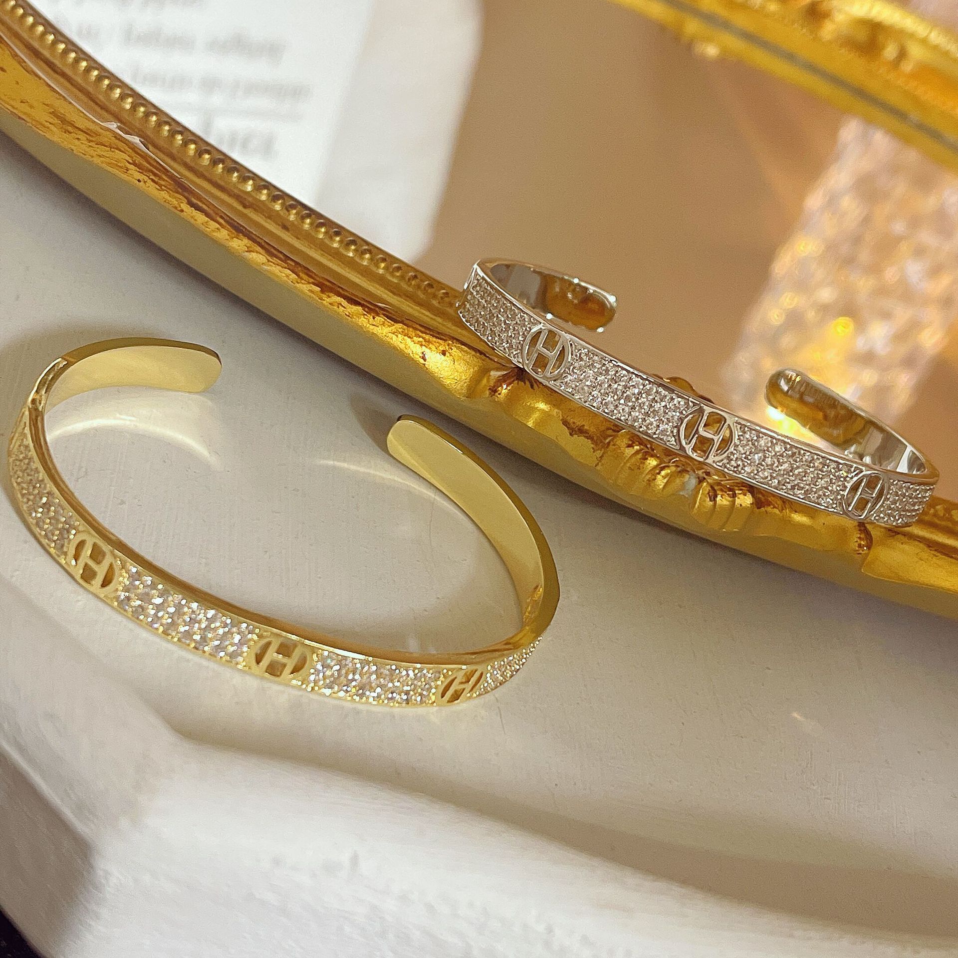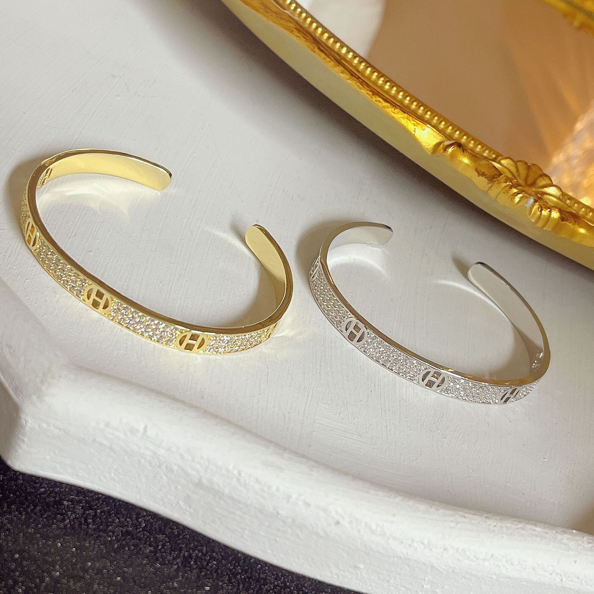F6510 gold micro-inlaid H letter bracelet, F65fiberglass silver micro-inlaid H letter bracelet