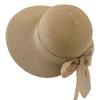 Sombrero de mujer de primavera y verano, de color sólido, tejido, plegable, con lazo, protector solar, para playa, plegable, de paja.
