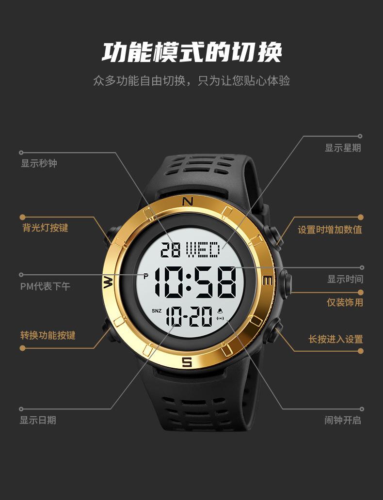 Reloj electrónico multifuncional para estudiantes, para deportes al aire libre, estilo skmei, nuevo, resistente al agua, con esfera grande, para hombre