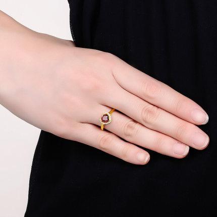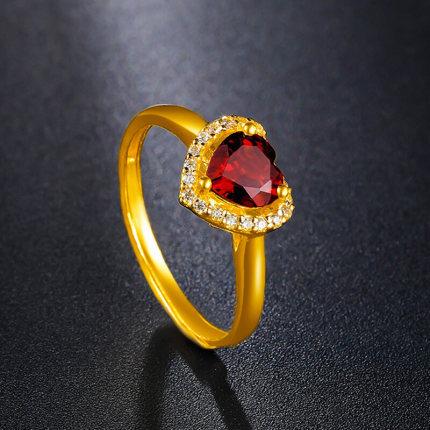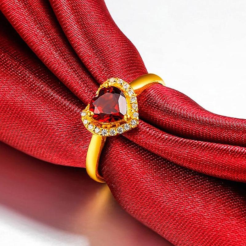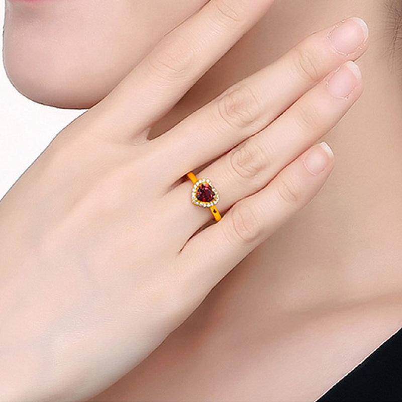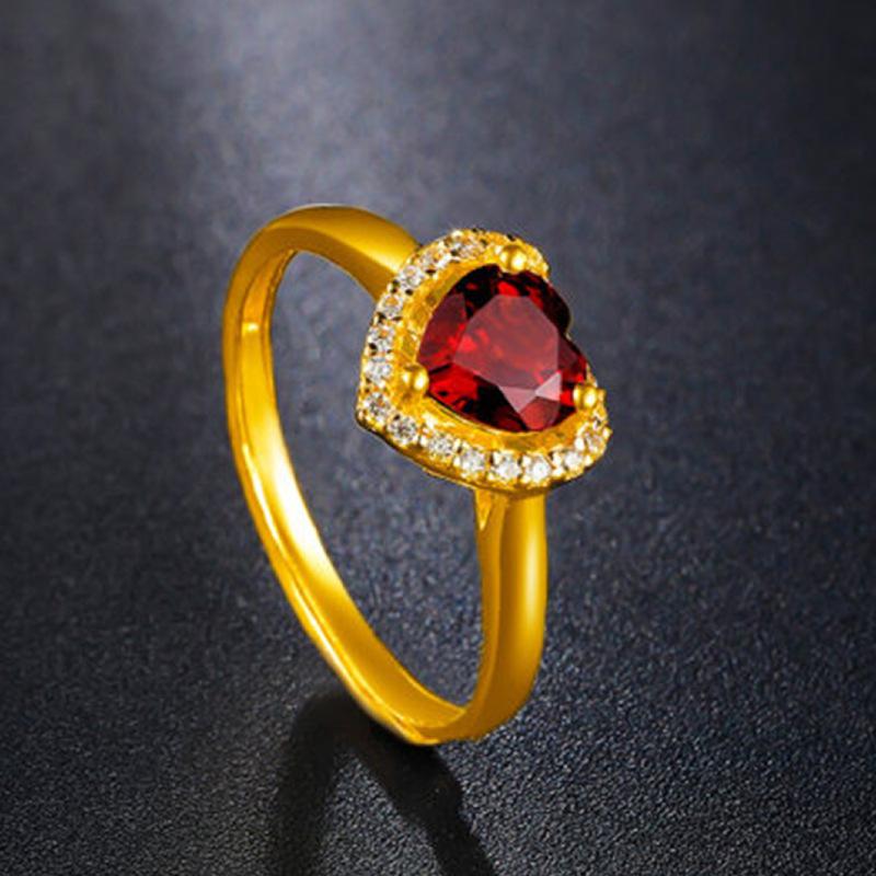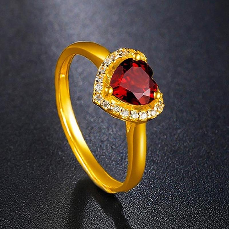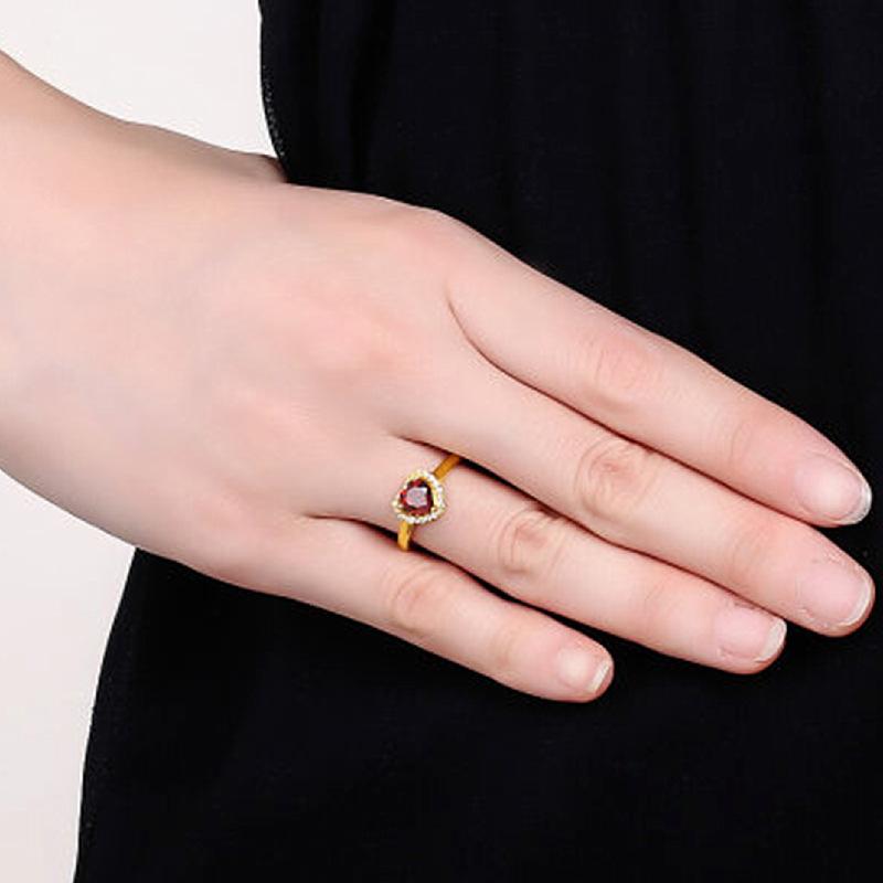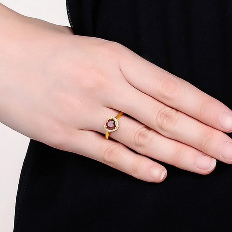 Anillo Novedoso Romántico de Corazón Chapado Rubí Zircón Anillo Forma de Corazón Granate Boda Anillo de Diamantes para Mujer