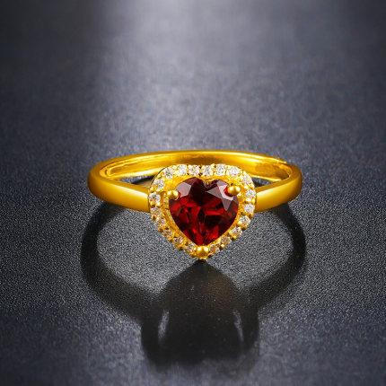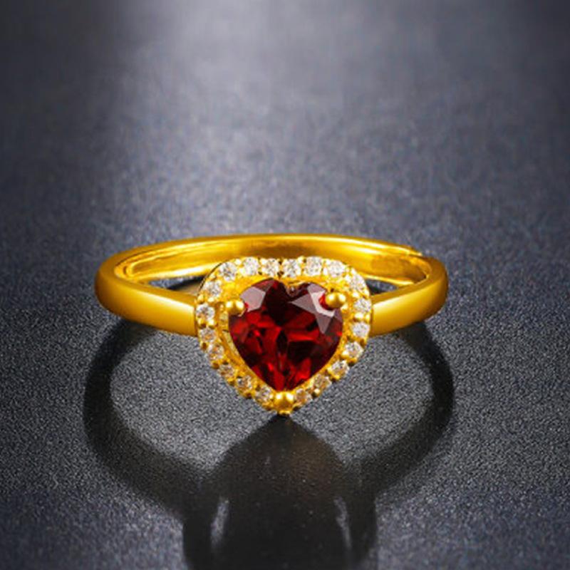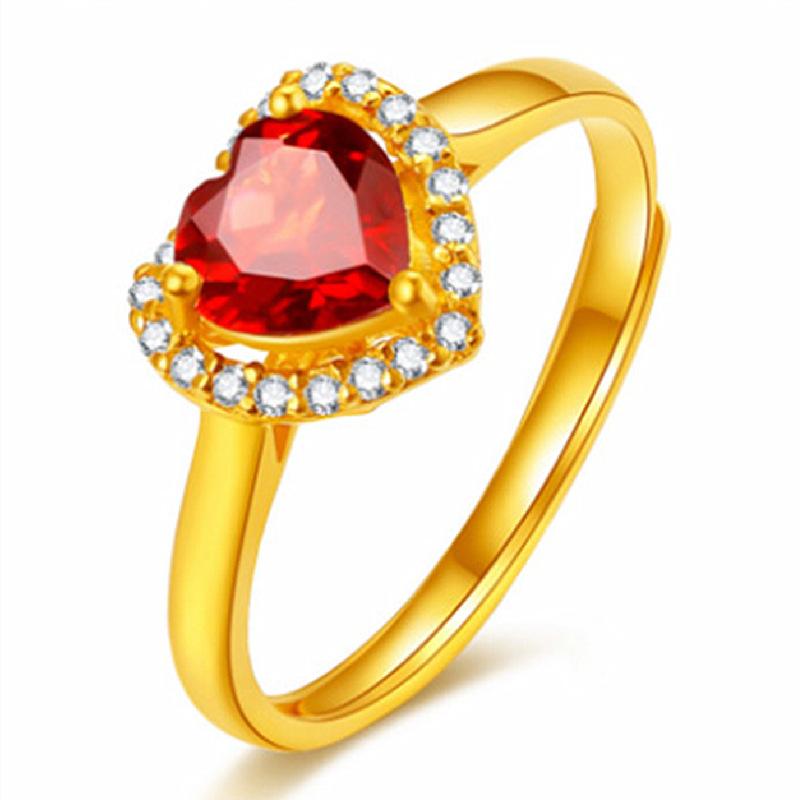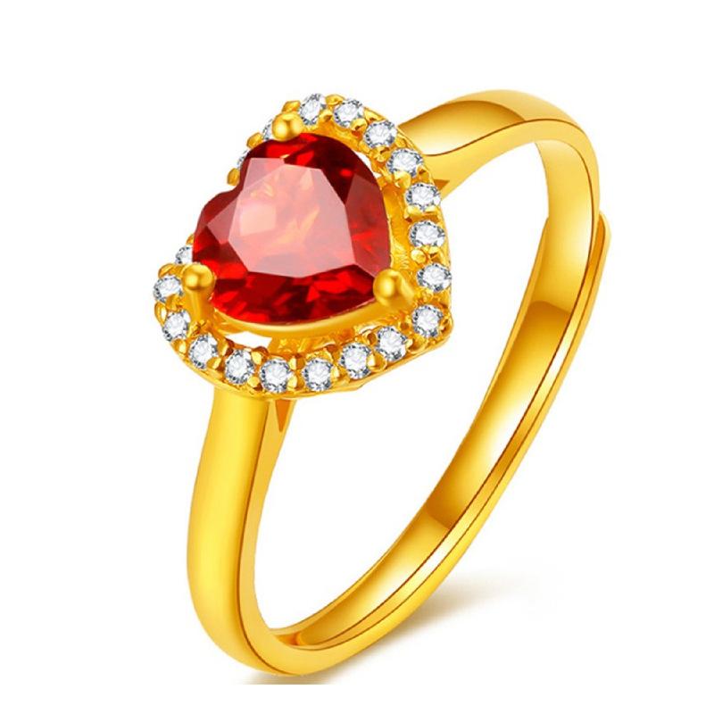 Red Diamond Heart Ring [Gold]] Opening adjustable