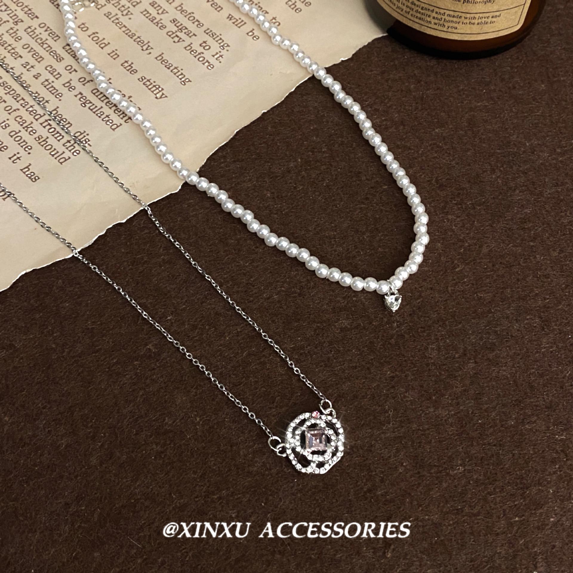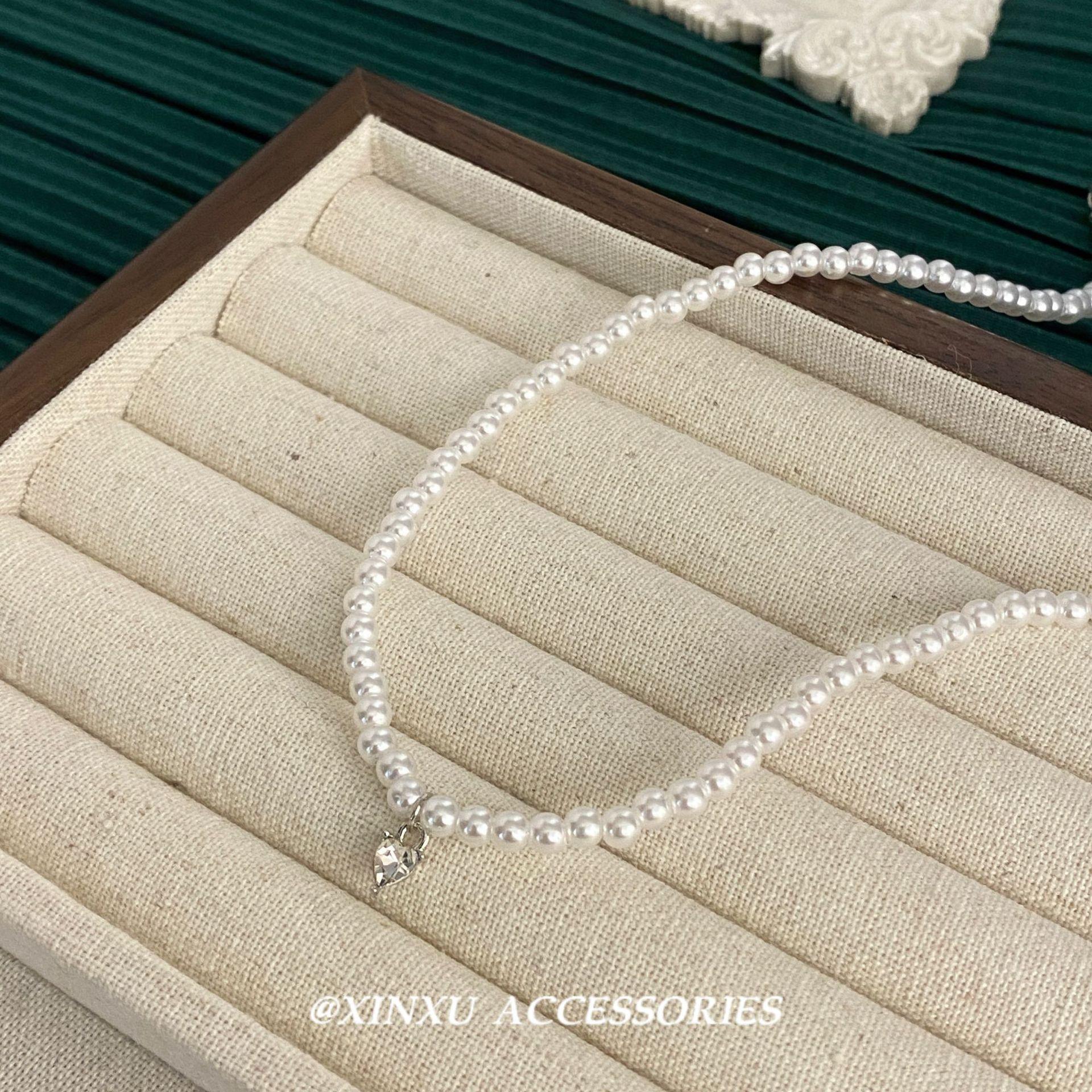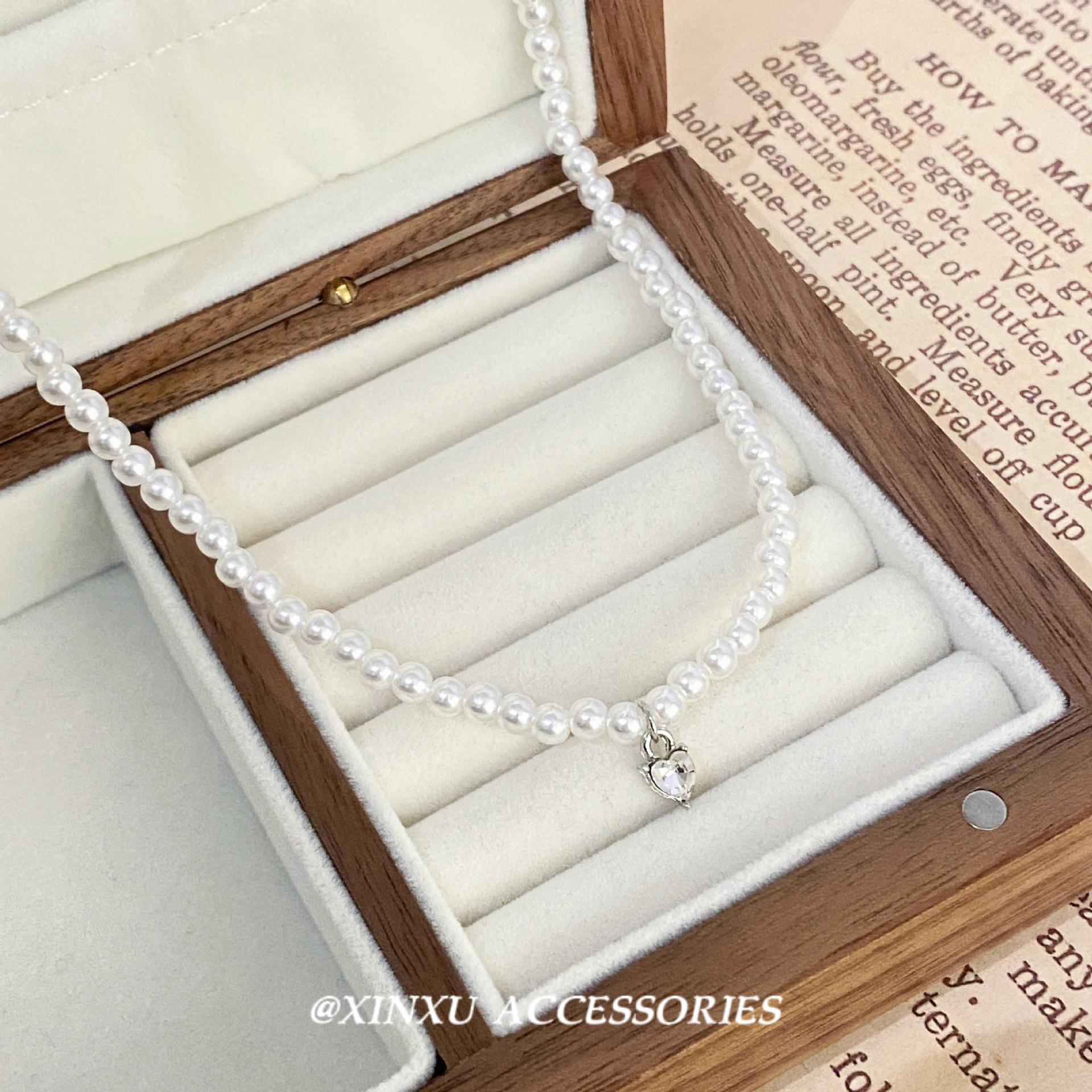 Collar de Perlas de Lujo de Entrada Francesa Amor Piedra Hao Diseño Nicho Cadena de Cuello Simple de Alta Gama Joyería de Cadena para Clavícula