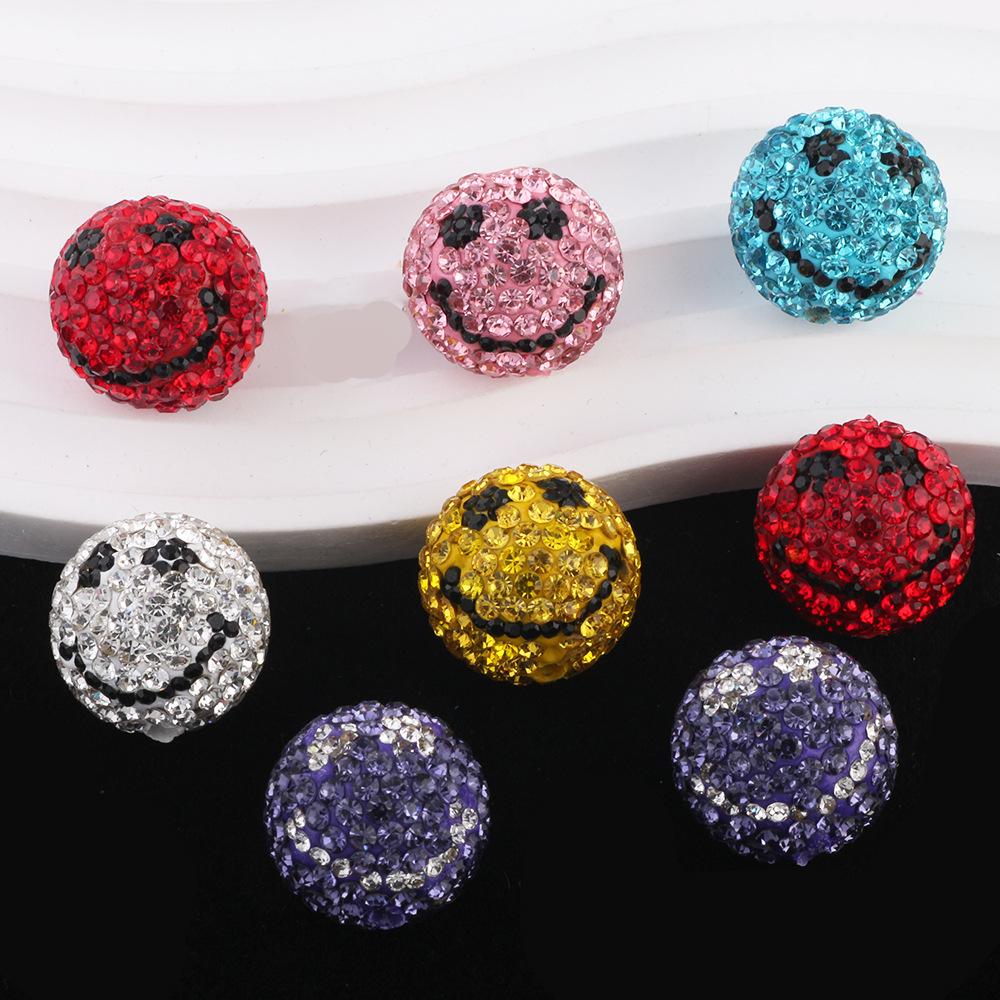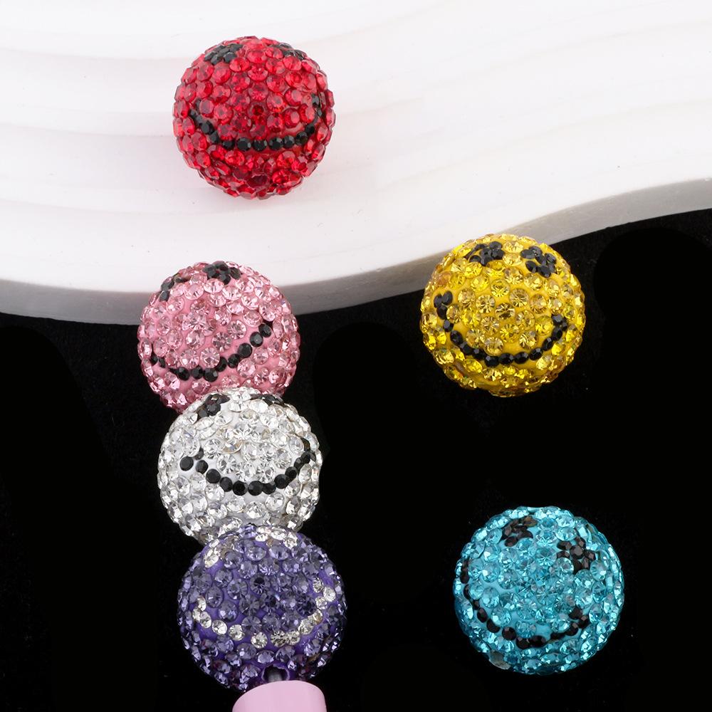 Cuentas redondas de carita sonriente de 2 cm, bola de diamante, se pueden usar cuentas de agujero recto, accesorios para llavero de teléfono móvil DIY, collar