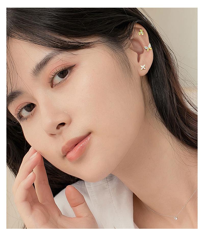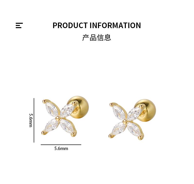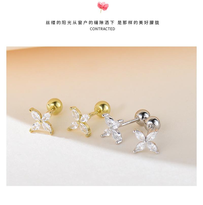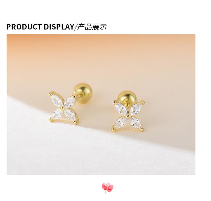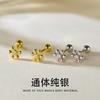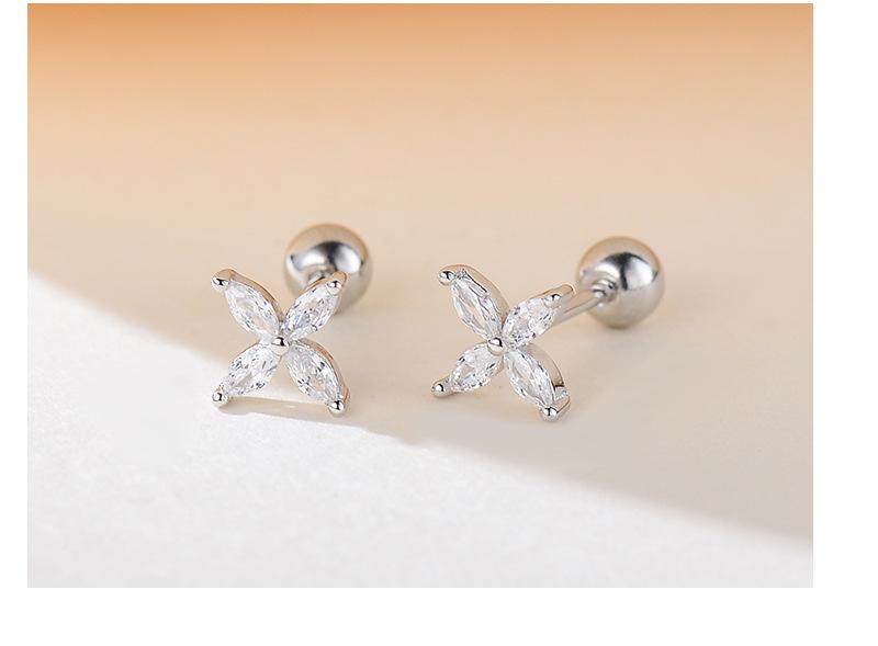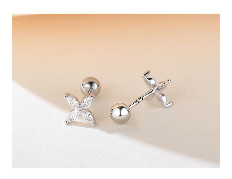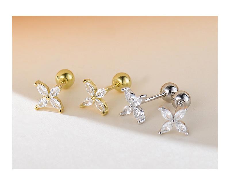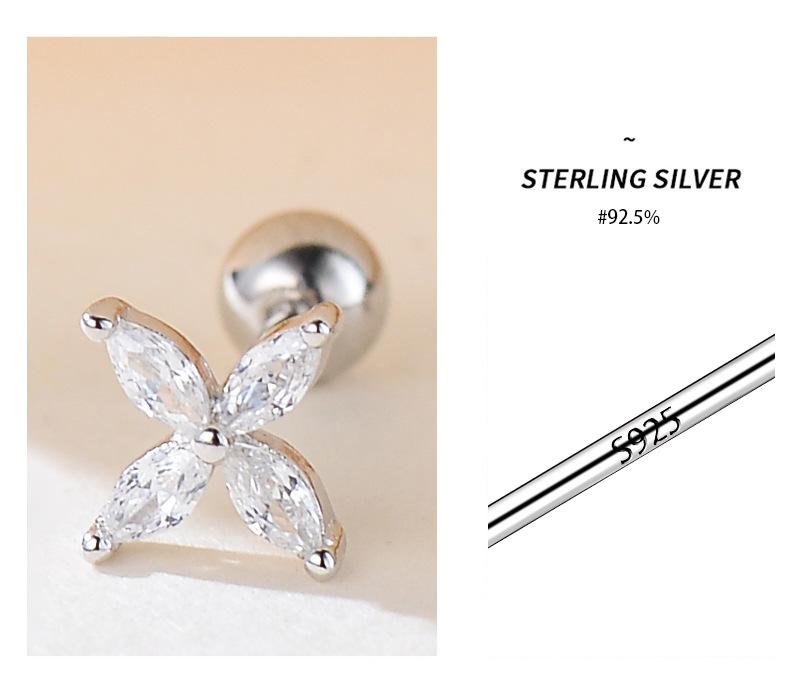 Pendientes de plata S925 con diseño de hueso de oreja, sencillos, a la moda, con diseño de flor de diamante que combina con todo, con tornillo y borde cruzado.