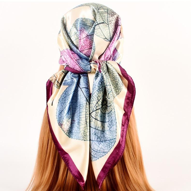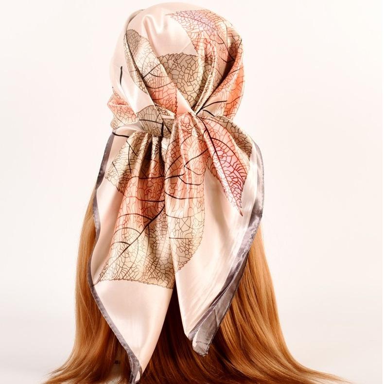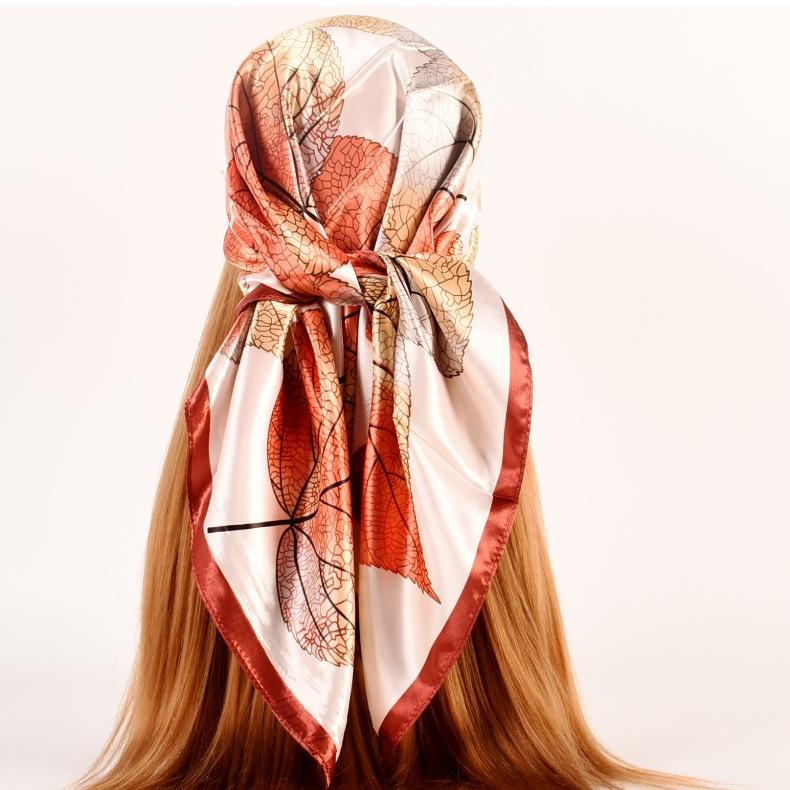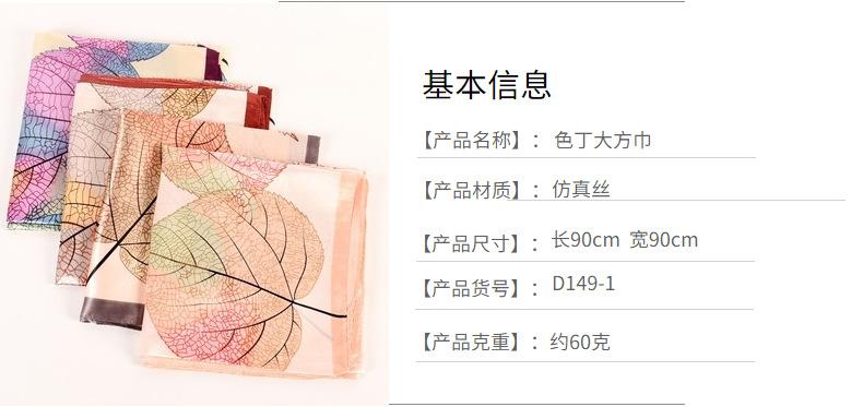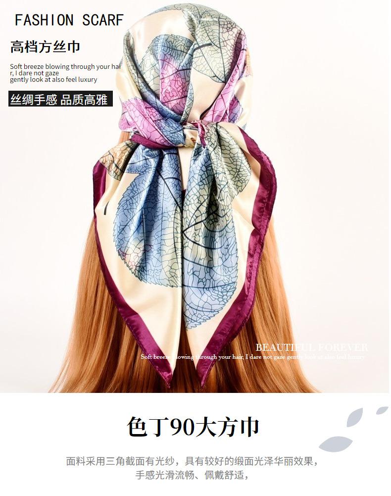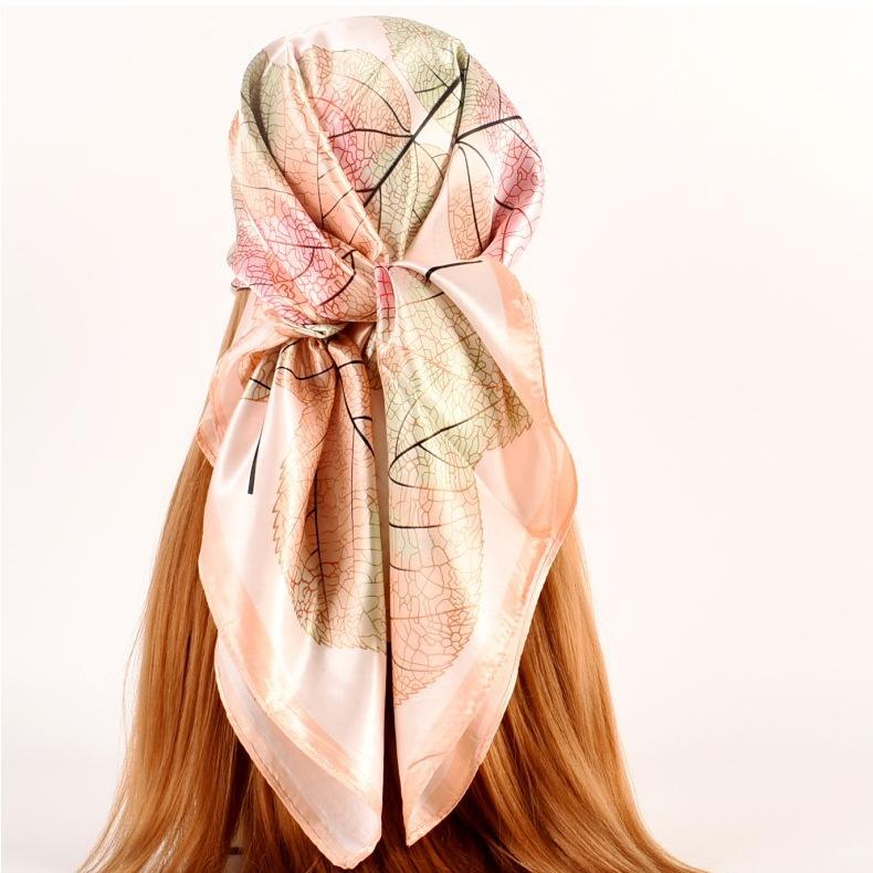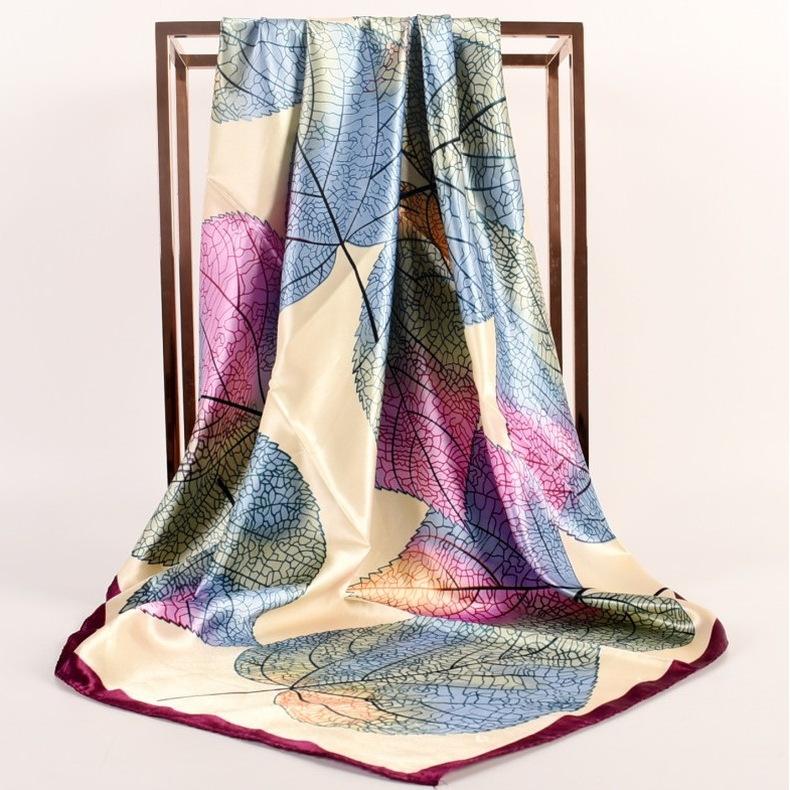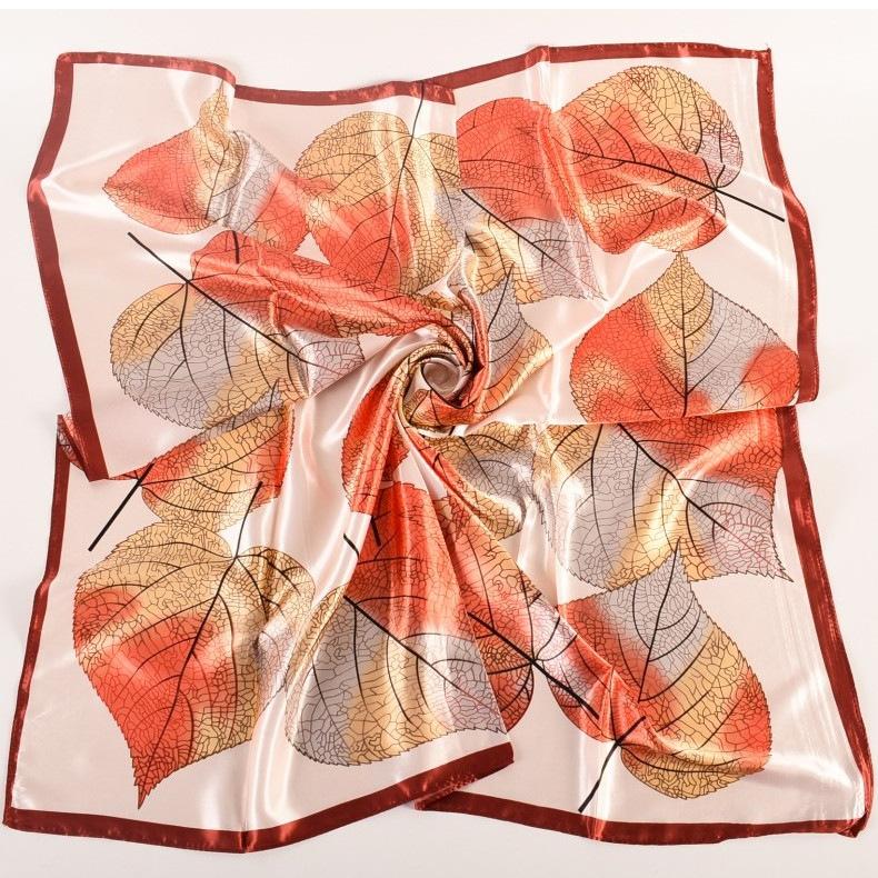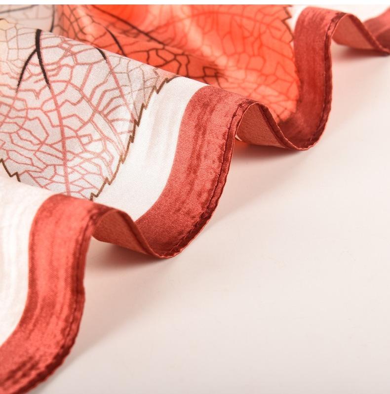 Otoño e invierno Nuevo 90 satén estampado patrón hojas frescas pequeñas bufanda de moda para dama al por mayor bufanda bufanda chal