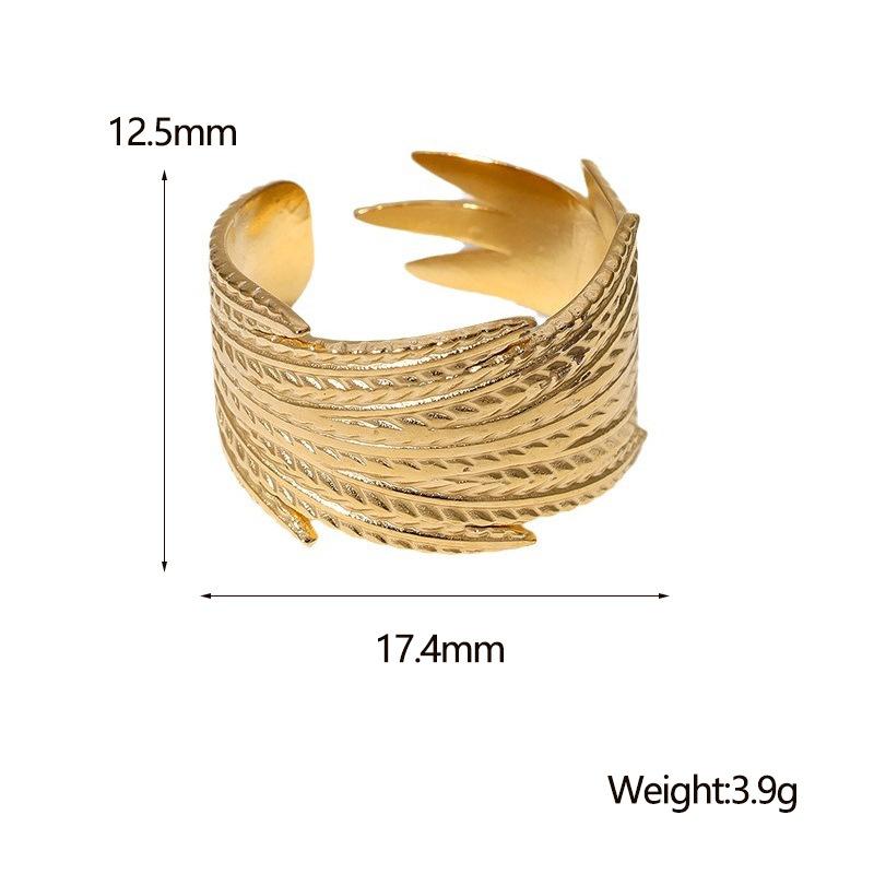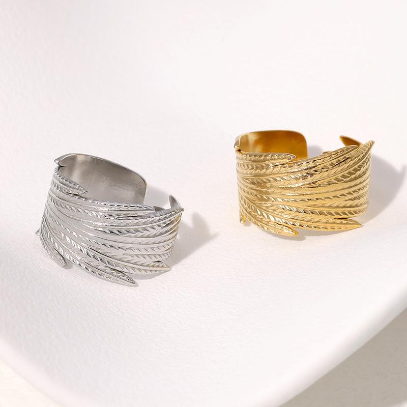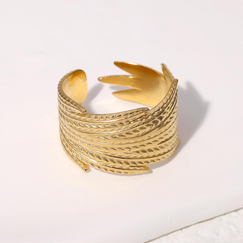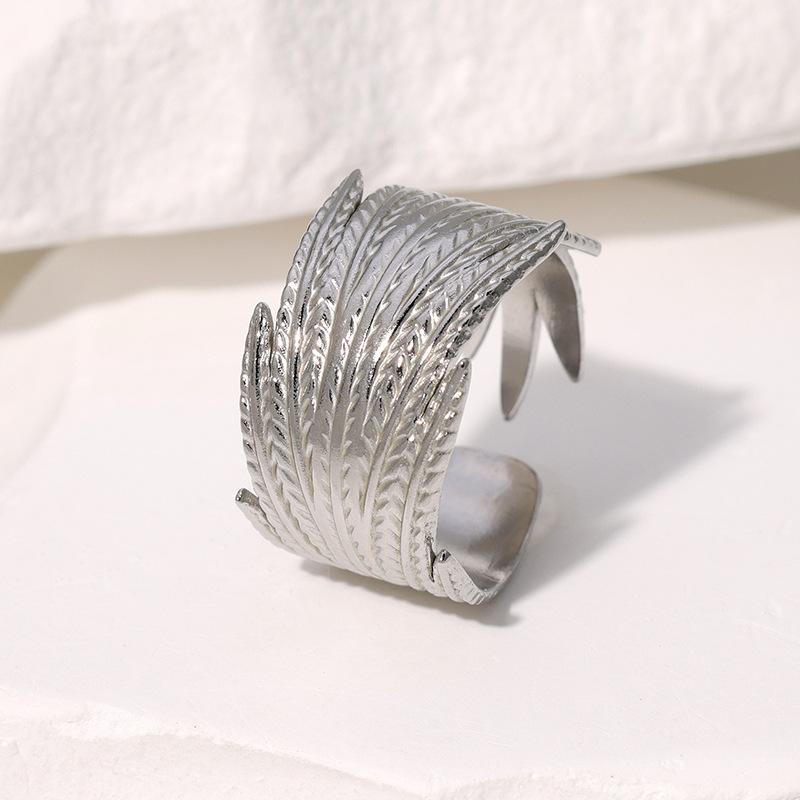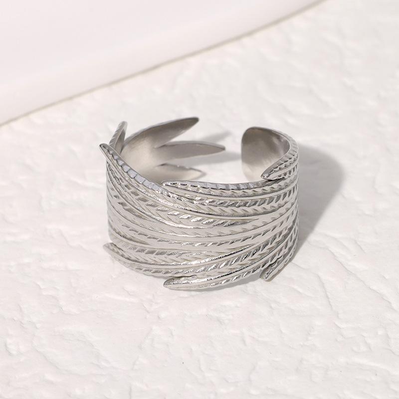 Anillo Transfronterizo Europeo y Americano de Acero de Titanio con Forma de Pluma Ajustable Personalizado Retro Anillo de Dedo Índice Nicho Temperamento Anillo de Acero Inoxidable