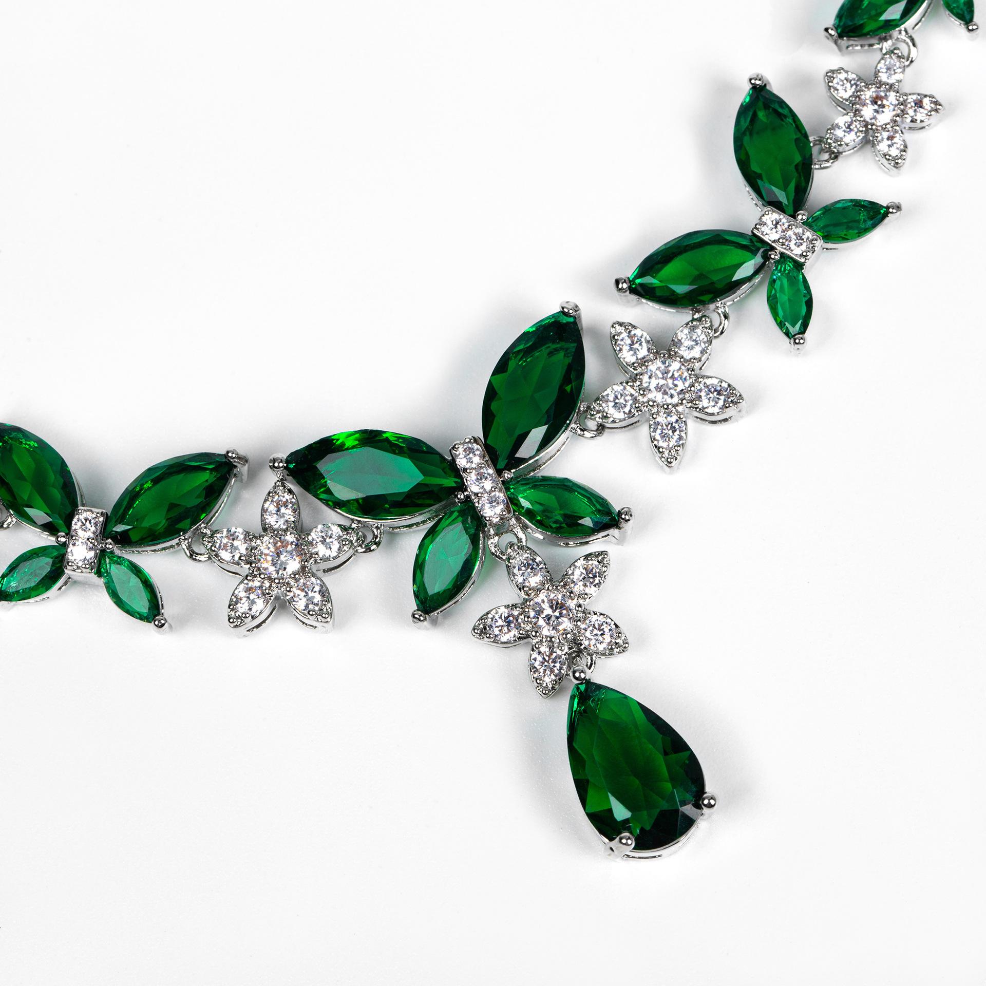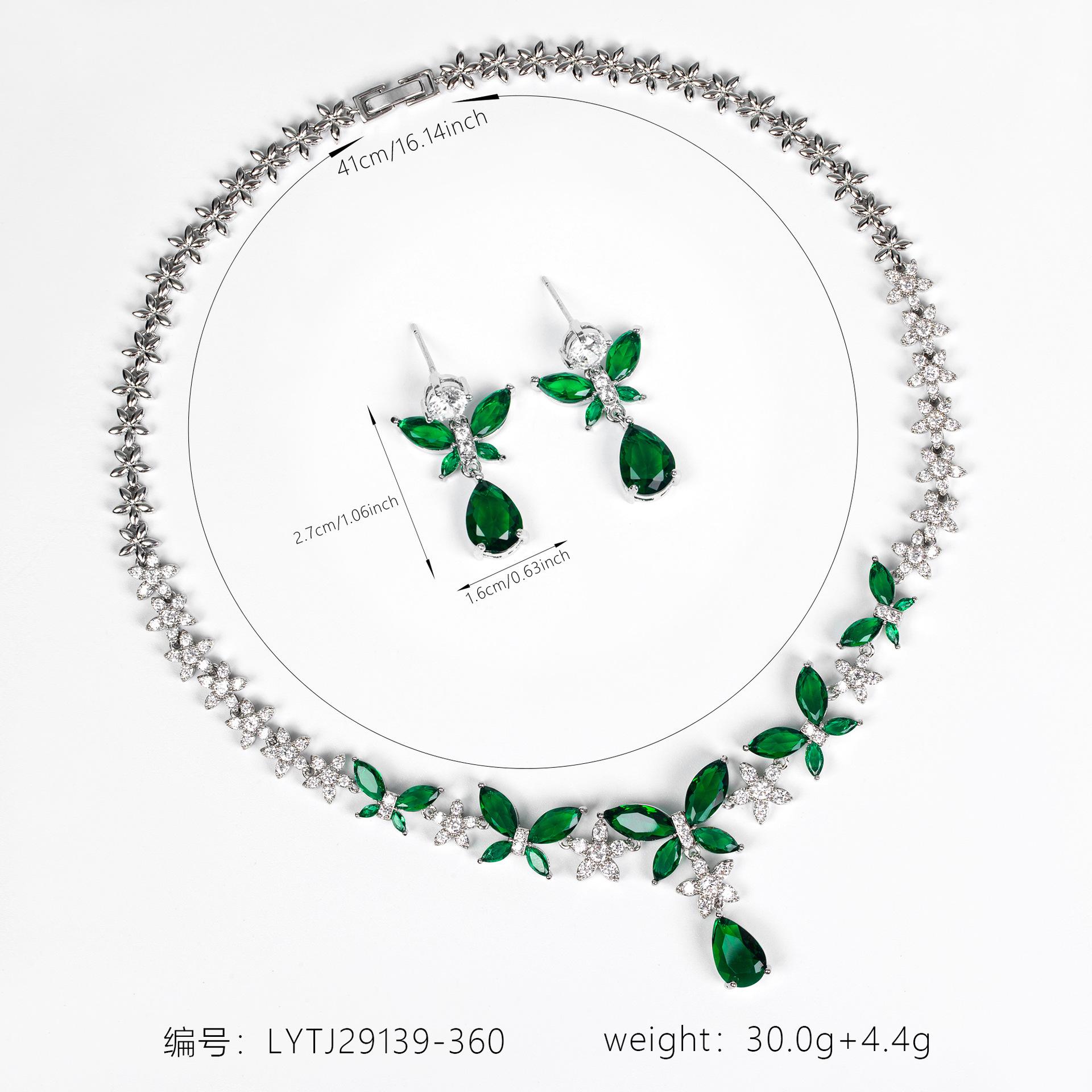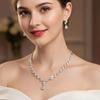 Traje de novia coreano japonés elegante y brillante con circonitas bañadas en cobre en stock, pendientes con lazo, collar, venta al por mayor