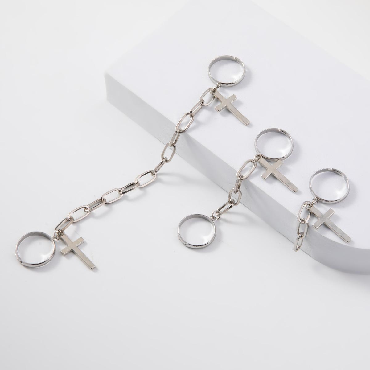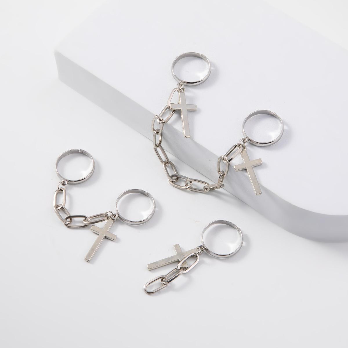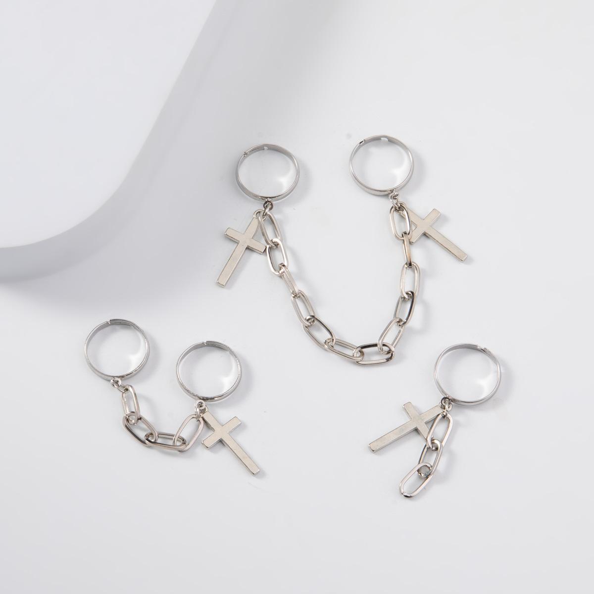 Anillo de Cruz Europeo y Americano Transfronterizo Nuevo Creativo Simple Anillo de Cruz Personalidad Costuras Borla Anillo de Cruz Juego de 3 piezas para Mujer