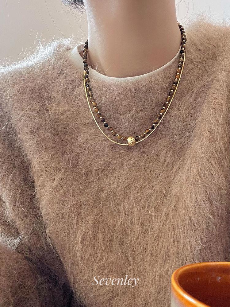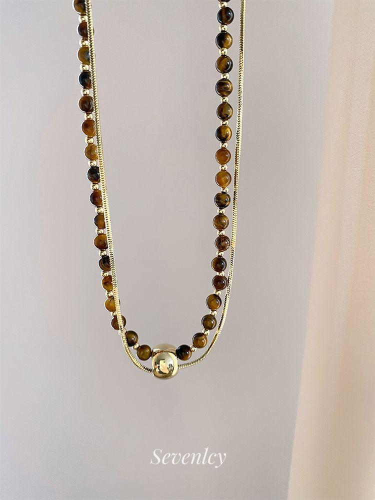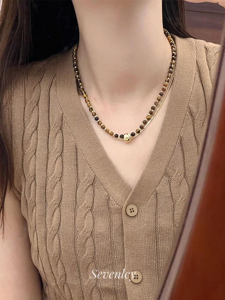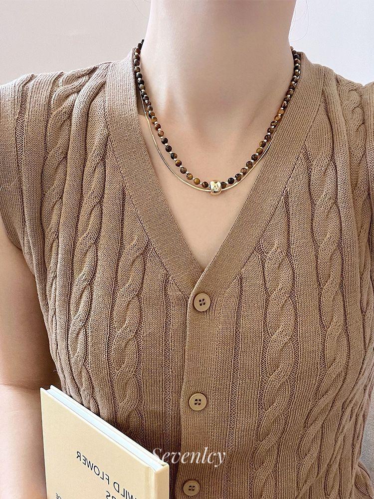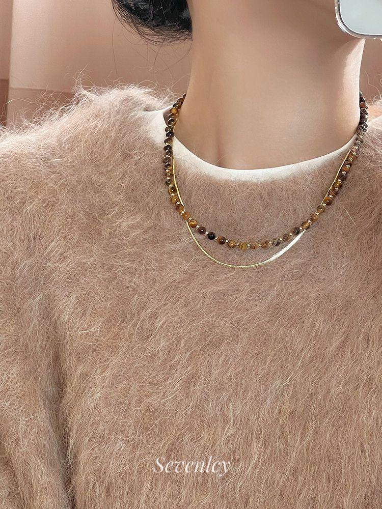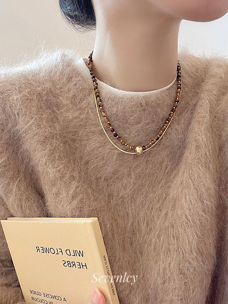 Collar de cuentas apiladas de doble capa retro Maillard para mujer, cadena de suéter de otoño e invierno, diseño de nicho ligero y exquisito de lujo, cadena de clavícula