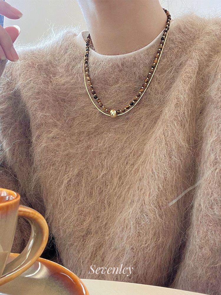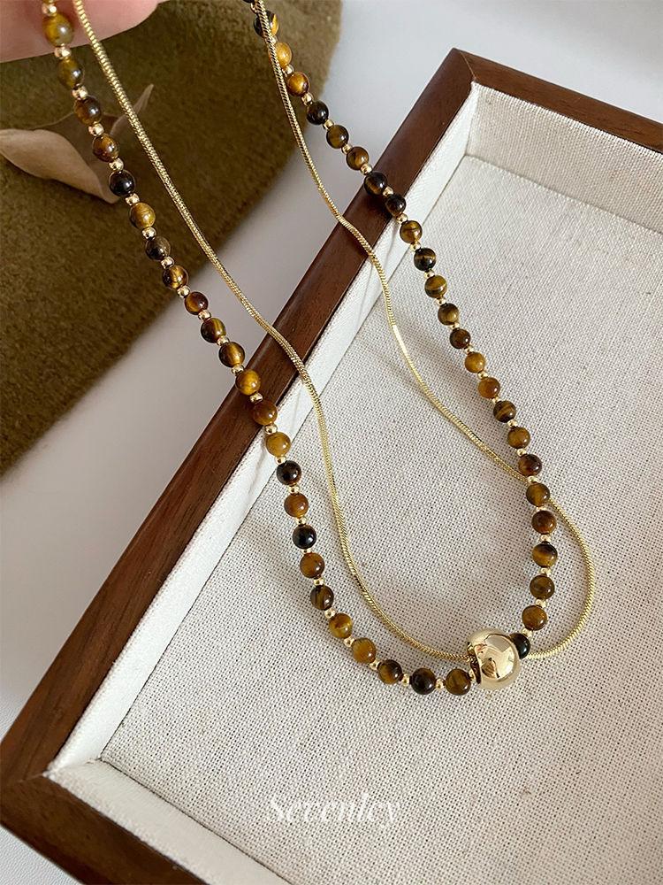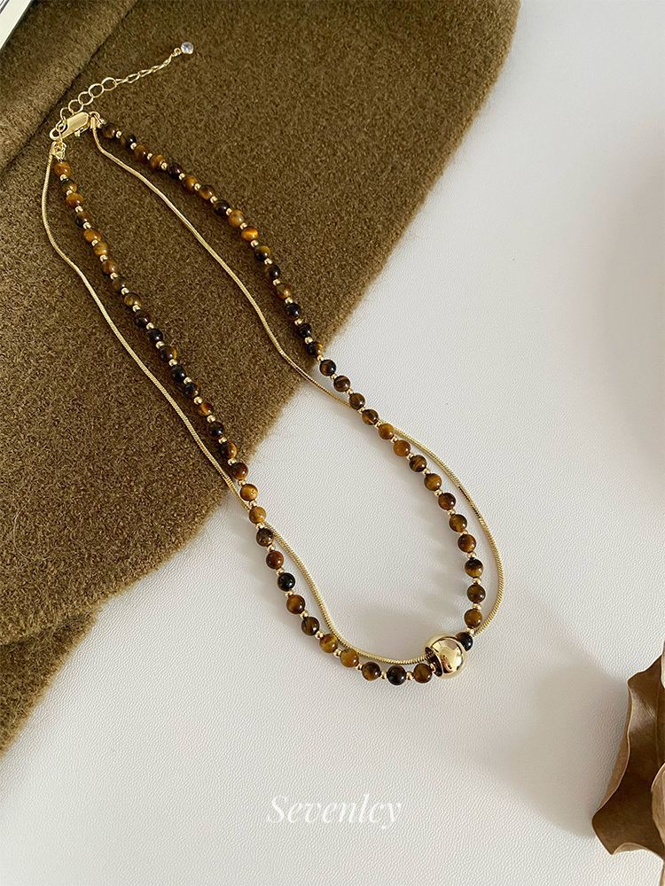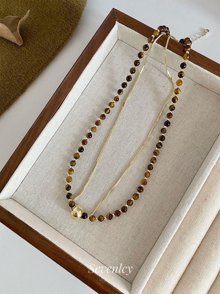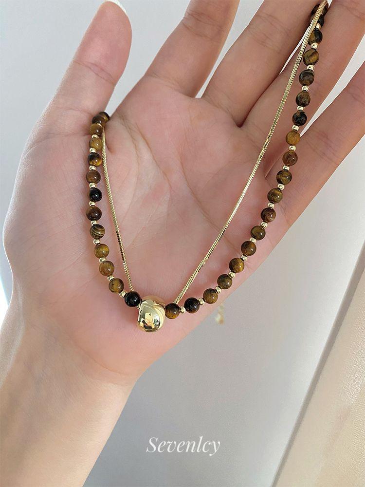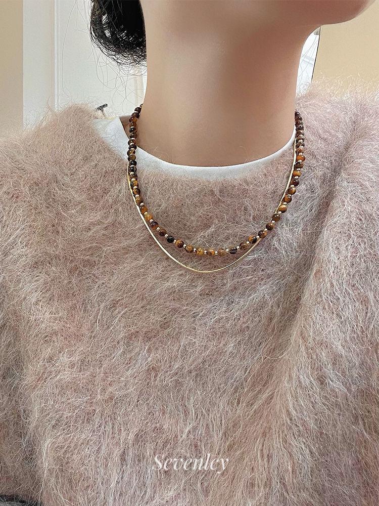 Collar de cuentas apiladas de doble capa retro Maillard para mujer, cadena de suéter de otoño e invierno, diseño de nicho ligero y exquisito de lujo, cadena de clavícula
