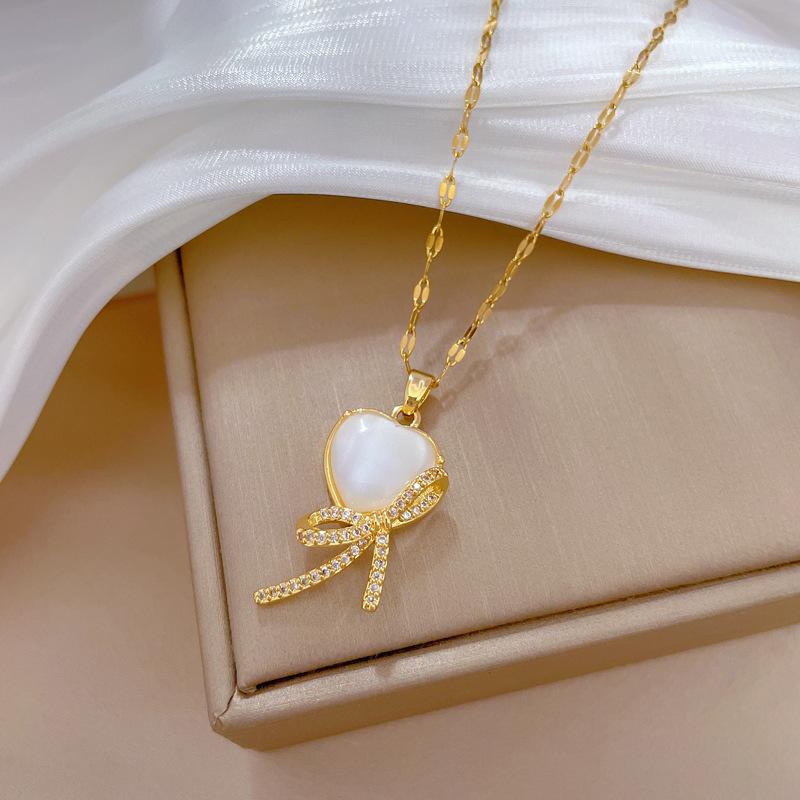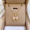 [Acero titanio] Elegante y elegante collar de diamantes con diseño de lazo ligero para mujer, cadena de clavícula combinable con todo tipo de celebridades de Internet. Cadena de acero titanio.