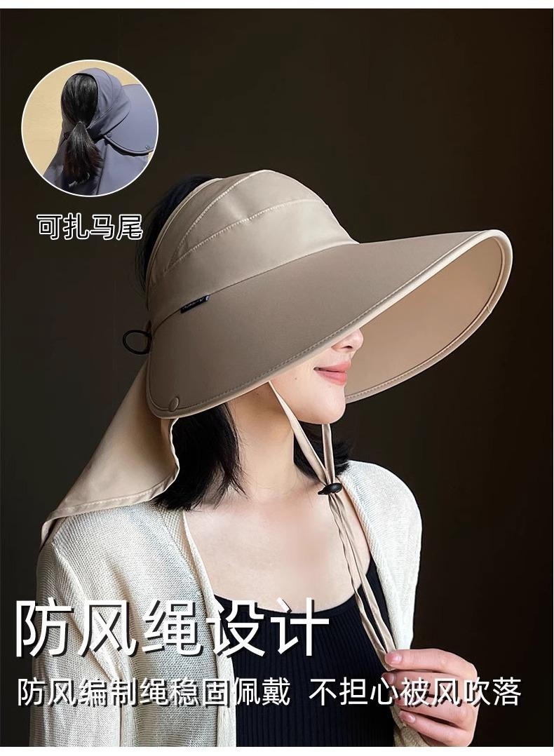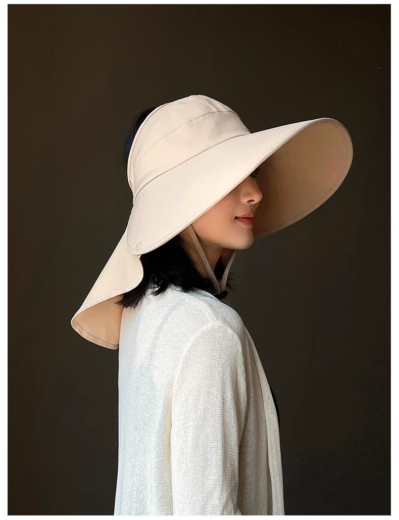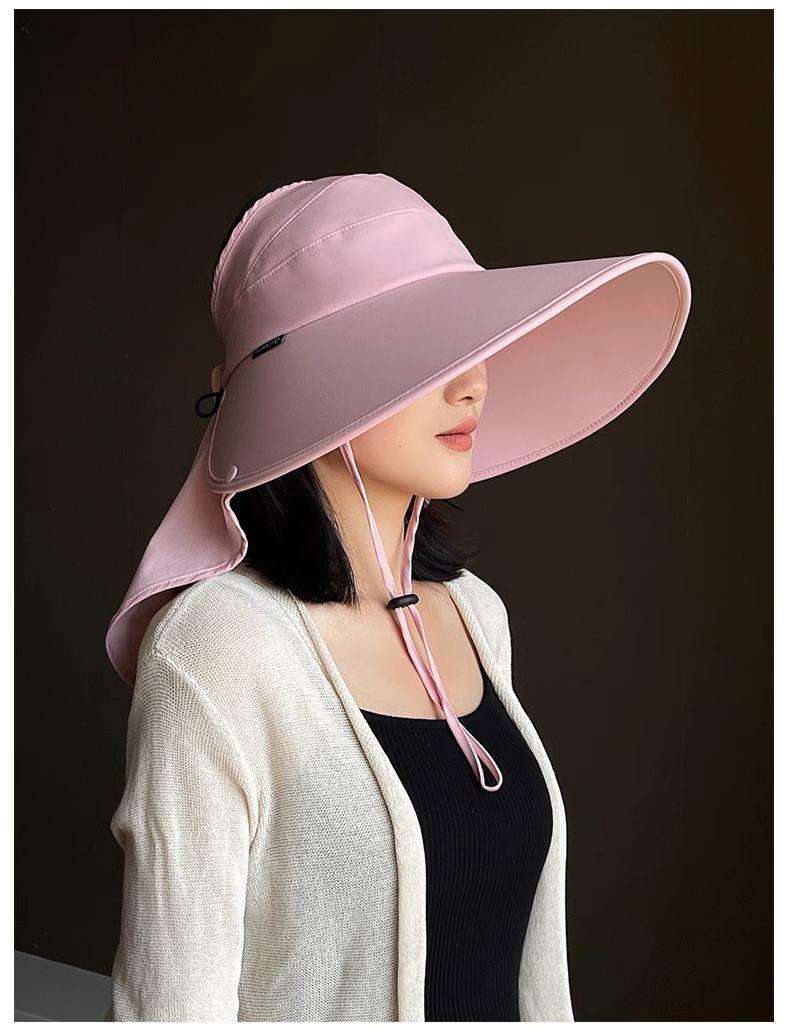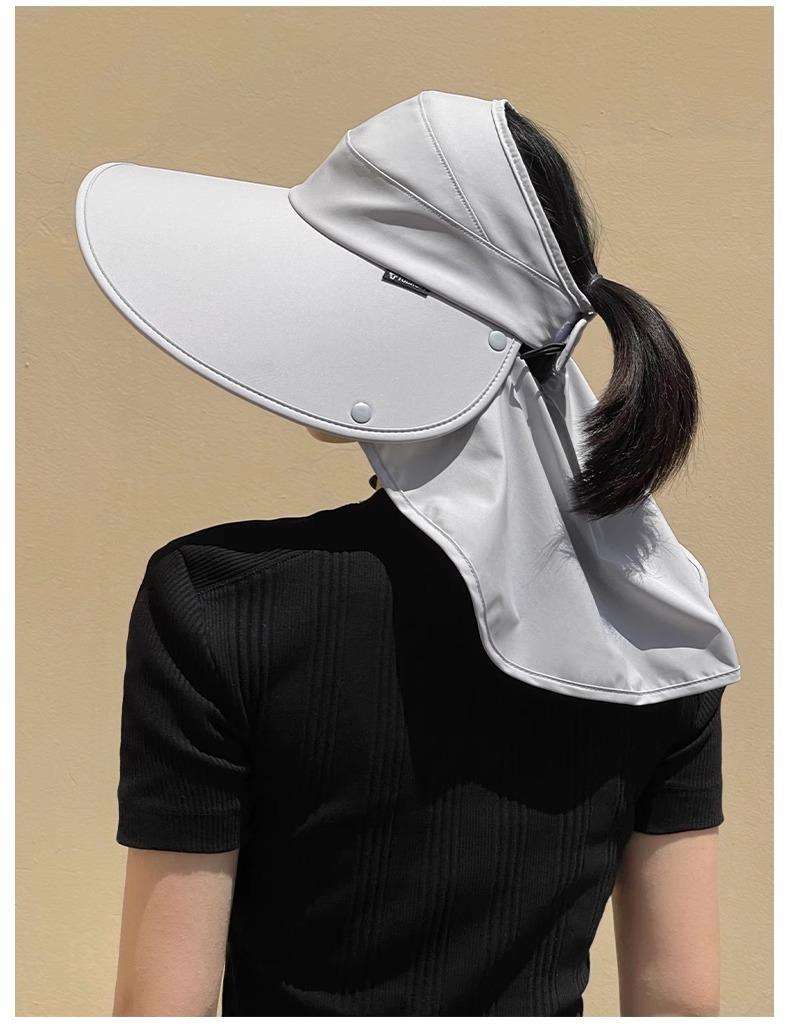 Sombrero de Protección Solar para Mujer, Sombrero de Copa Vacía Anti-UV, Sombrero de Sol de Ala Ancha para Ciclismo al Aire Libre, Sombrero de Pescador, Cubierta Facial, Sombrero de Sol con Protección para el Cuello
