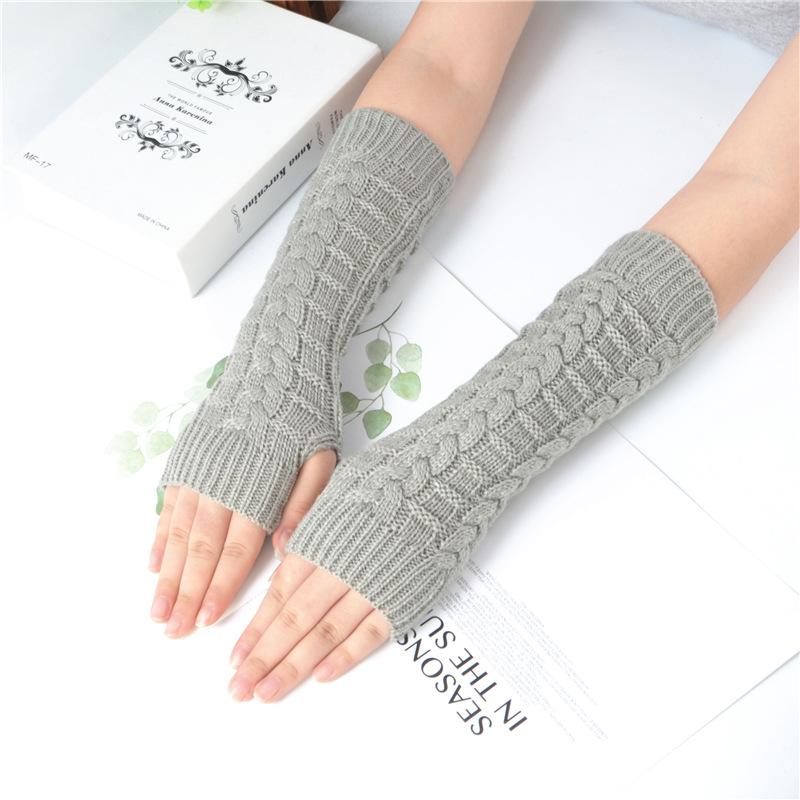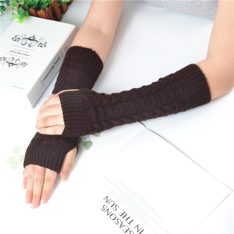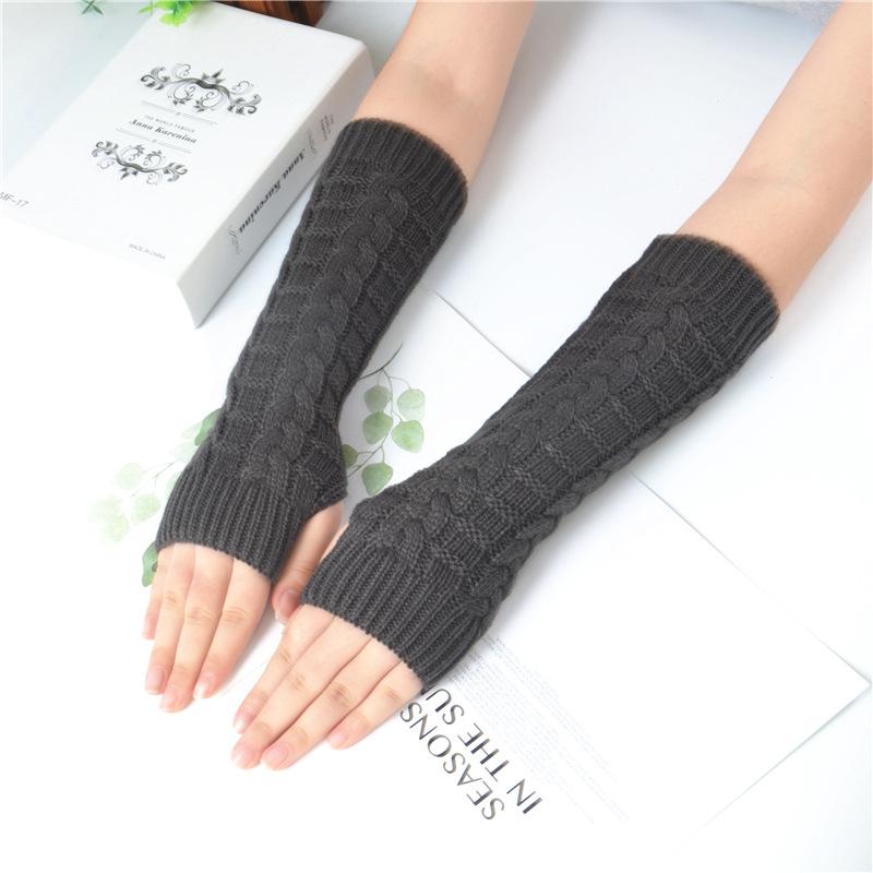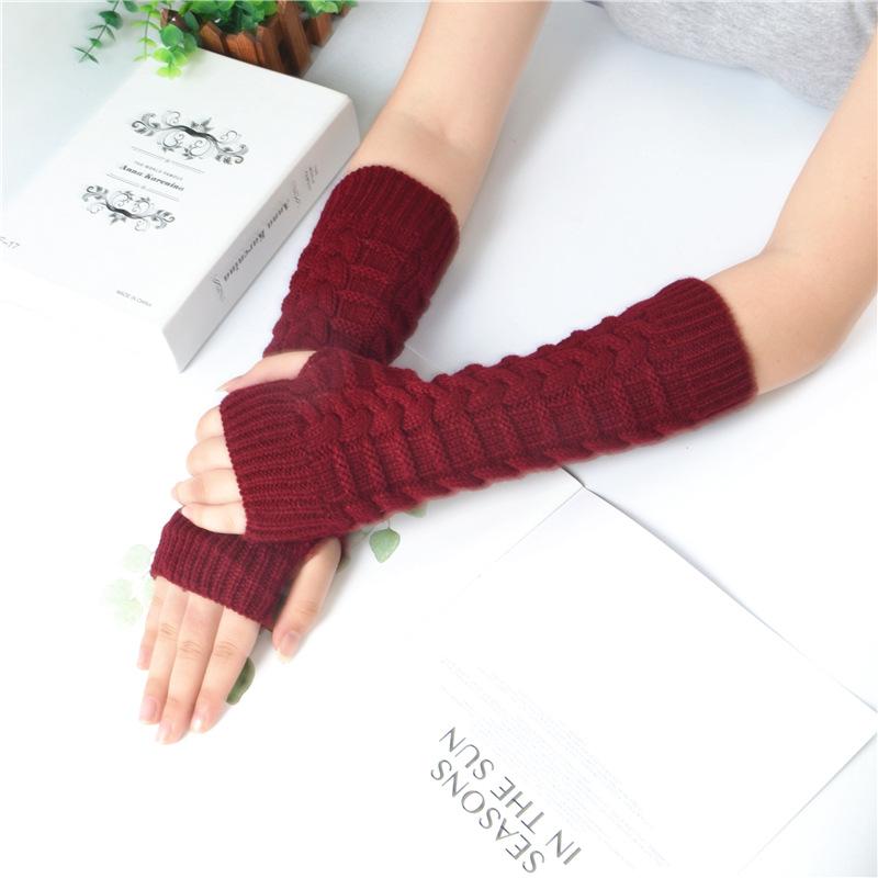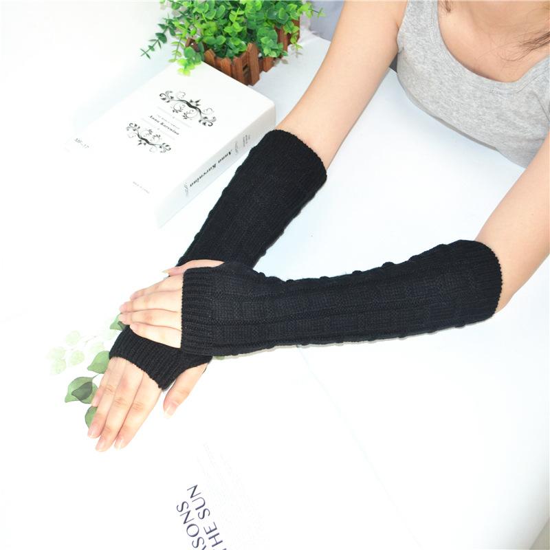 Guantes largos de punto cálidos de otoño e invierno transfronterizos de medio dedo, calentadores de brazos acanalados unisex de lana para invierno