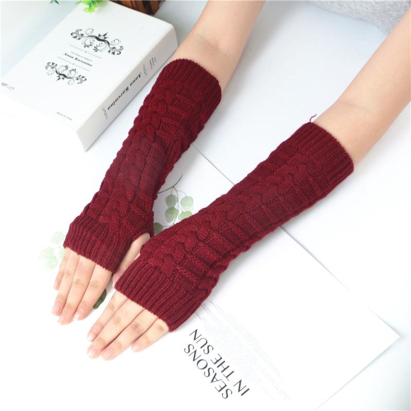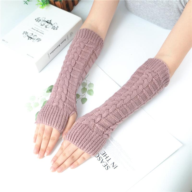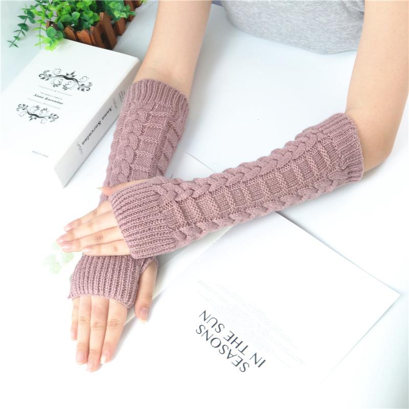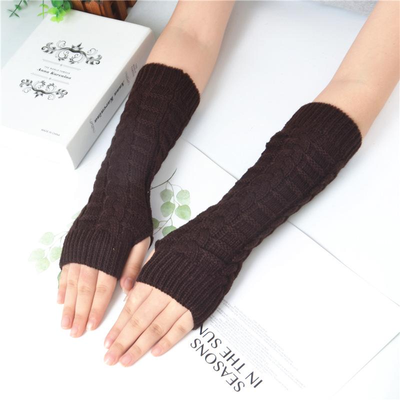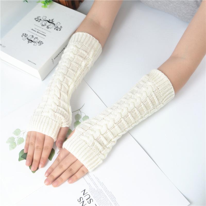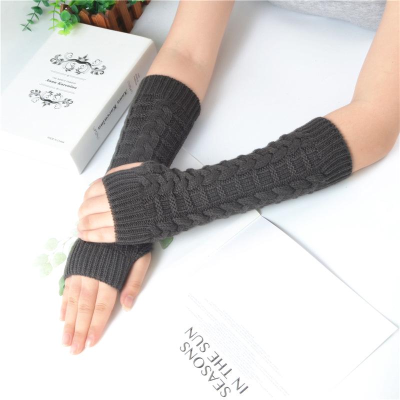 Guantes largos de punto cálidos de otoño e invierno transfronterizos de medio dedo, calentadores de brazos acanalados unisex de lana para invierno