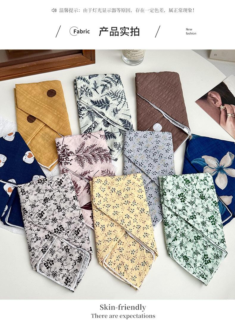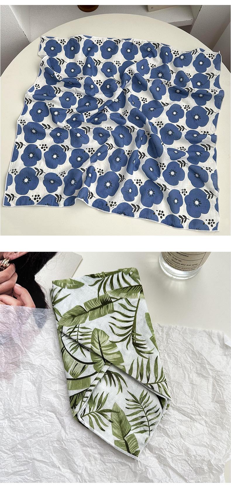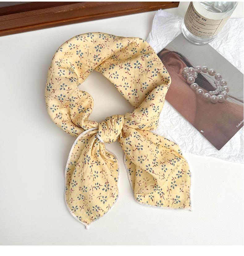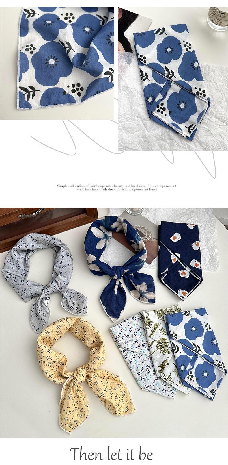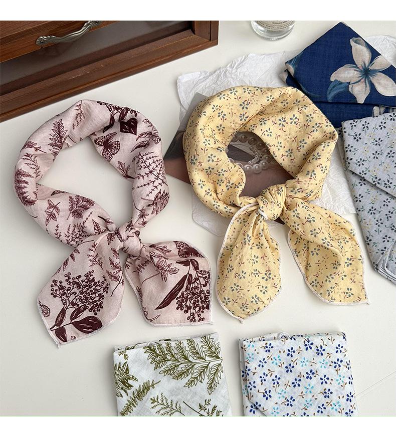 Pañuelo de seda para el pelo, de algodón y lino, cuadrado pequeño, para mujer, estilo coreano, artístico, combinable, para primavera y otoño.