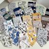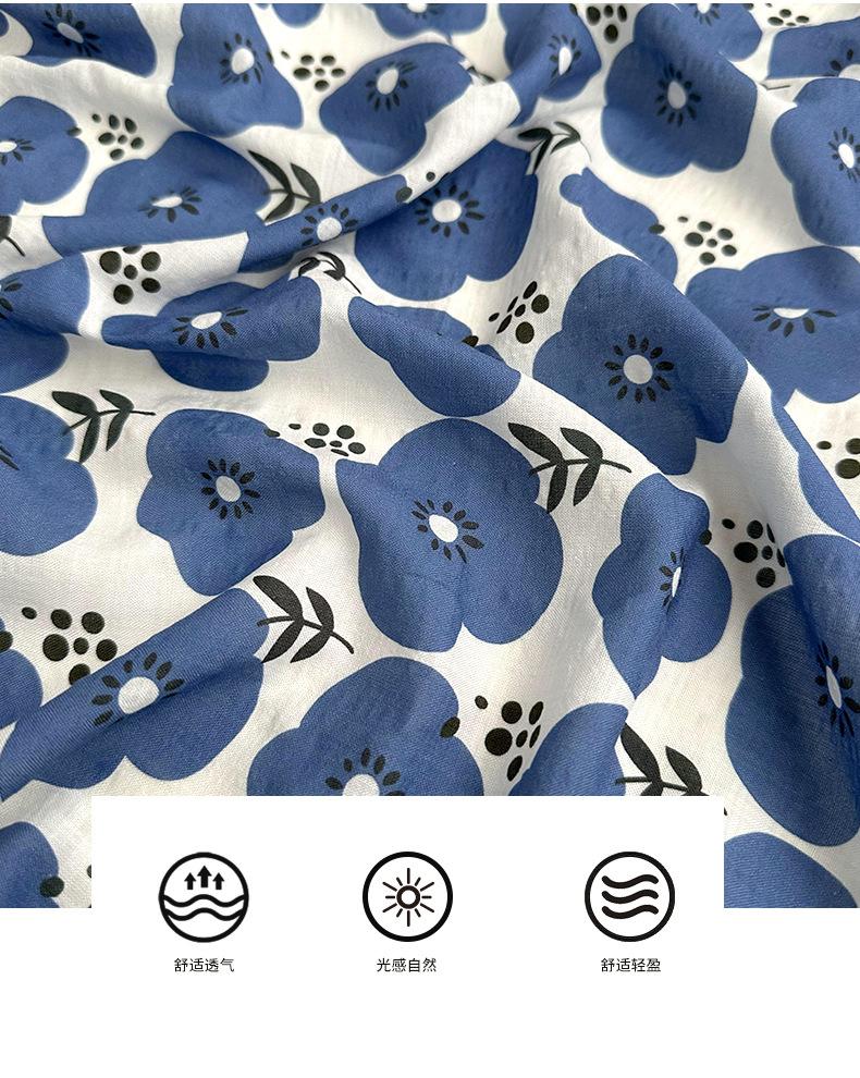 small white five-petal flower, small yellow five-petal flower, small gray five-petal flower, navy blue wave po...