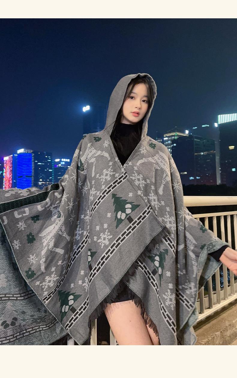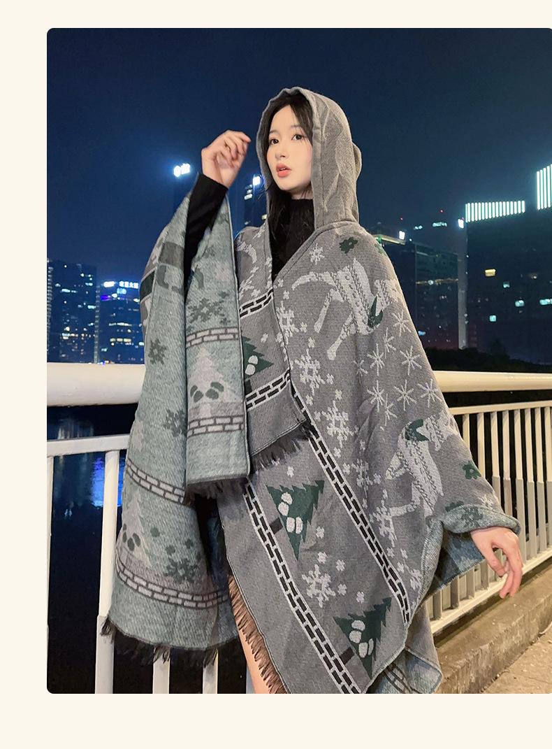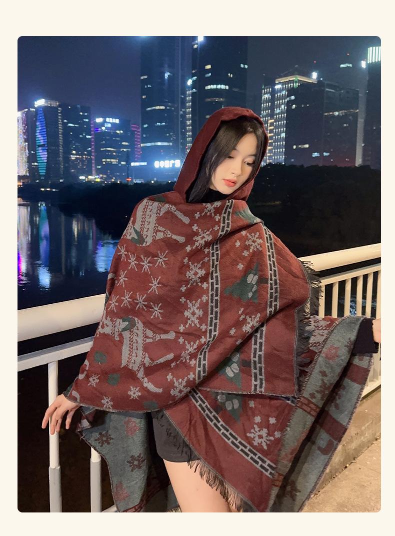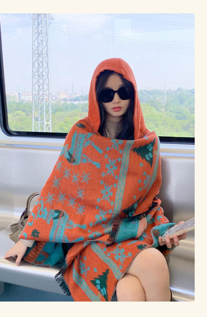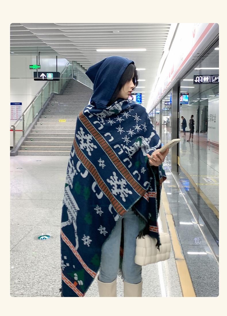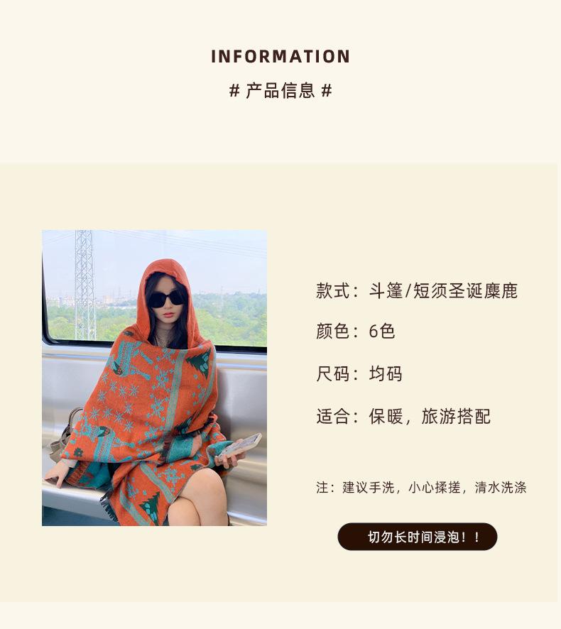 Invierno barba corta cómoda cálida bufanda transpirable alce navideño personalizado estampado casual con capucha versátil moda capa