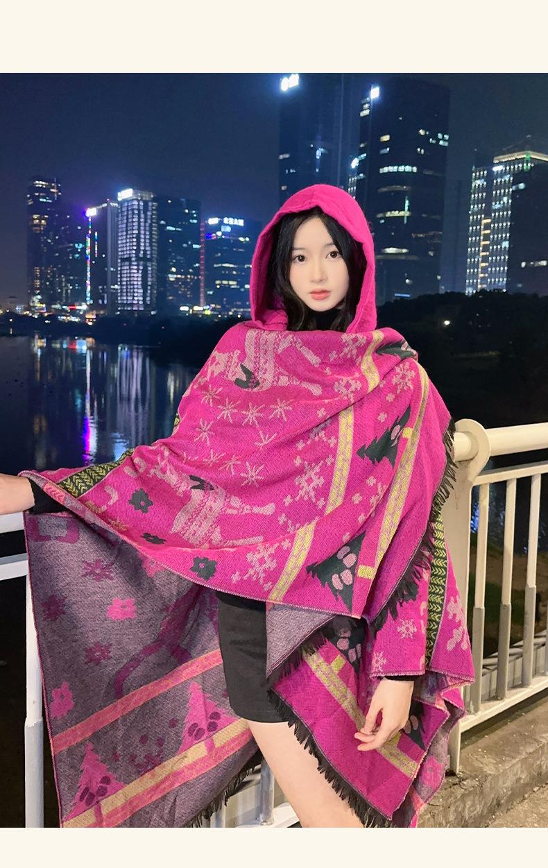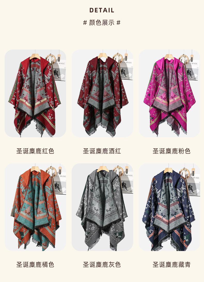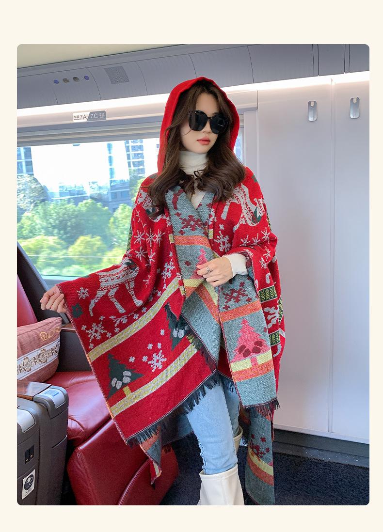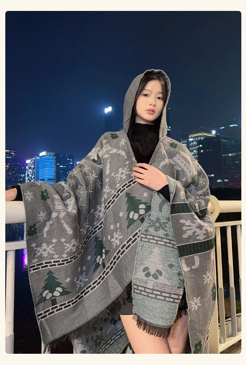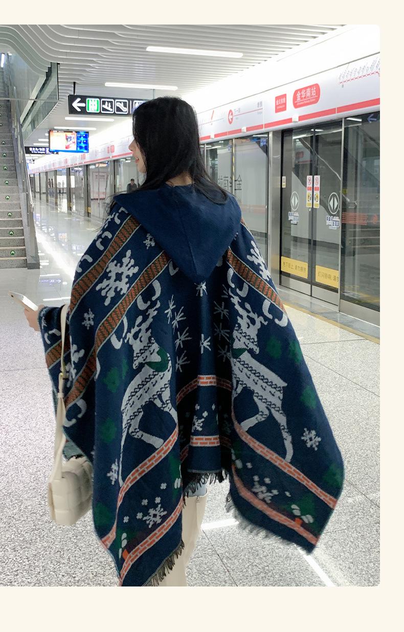 Invierno barba corta cómoda cálida bufanda transpirable alce navideño personalizado estampado casual con capucha versátil moda capa
