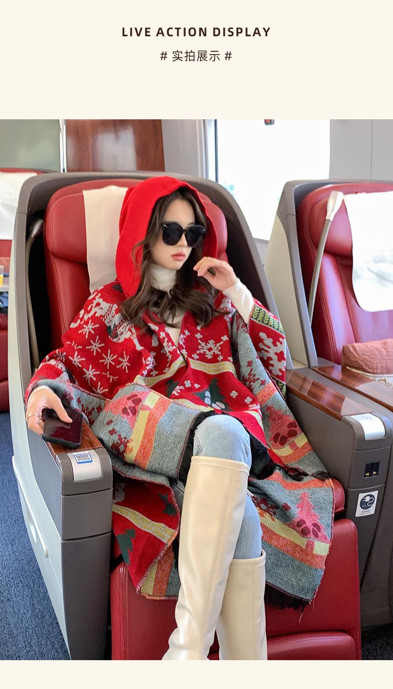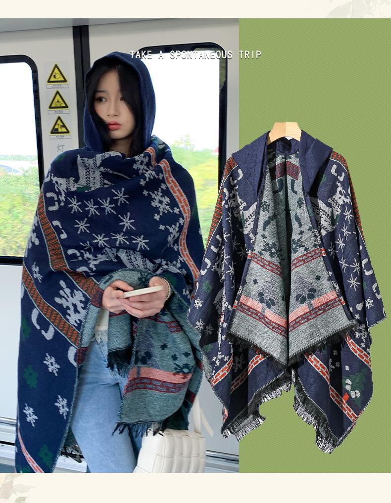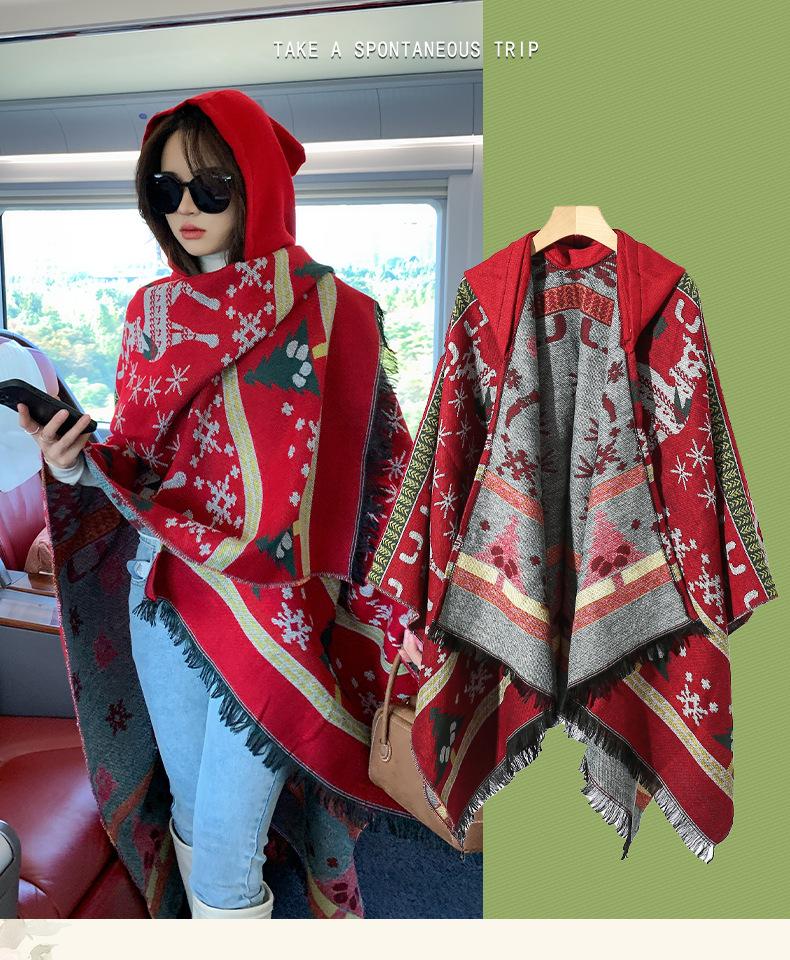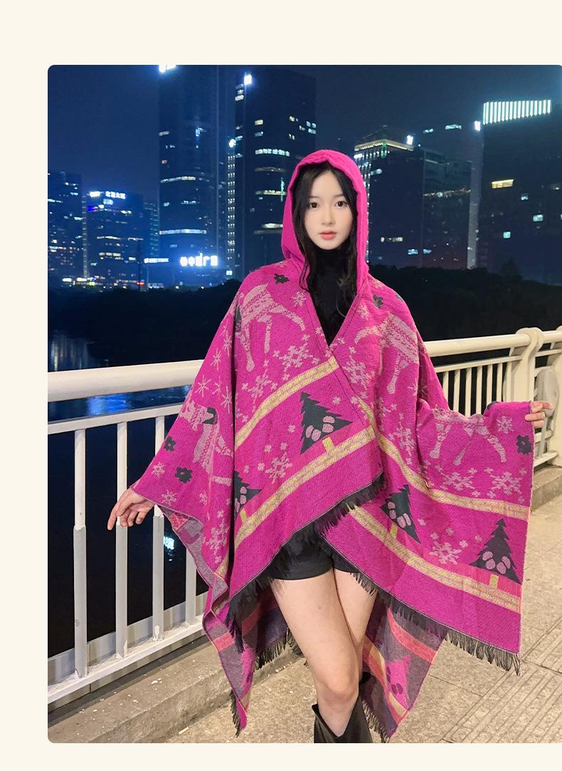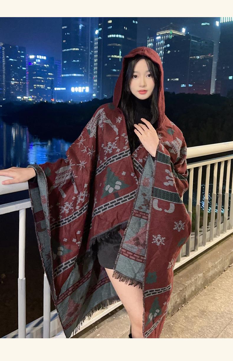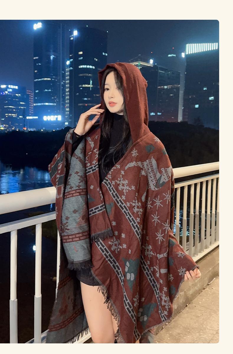 Invierno barba corta cómoda cálida bufanda transpirable alce navideño personalizado estampado casual con capucha versátil moda capa