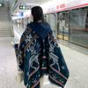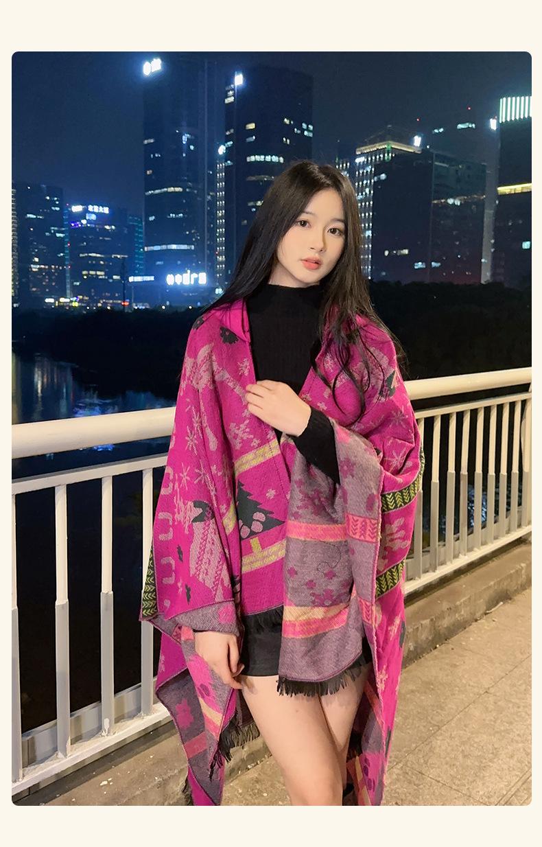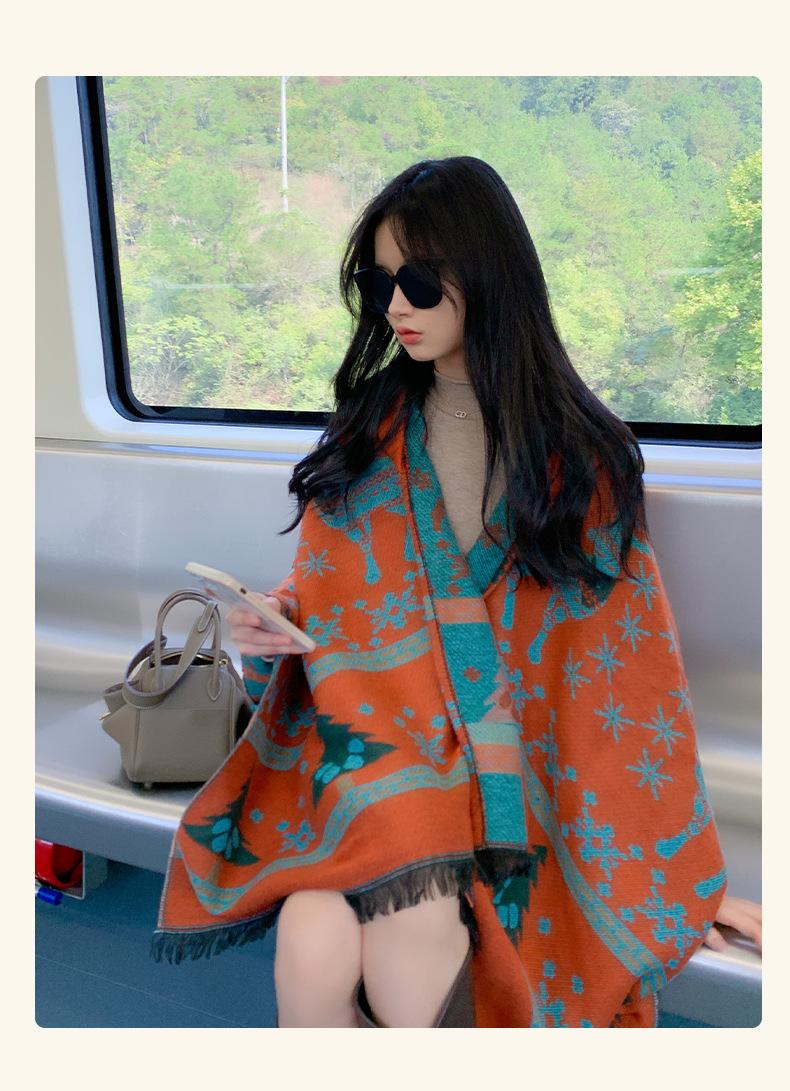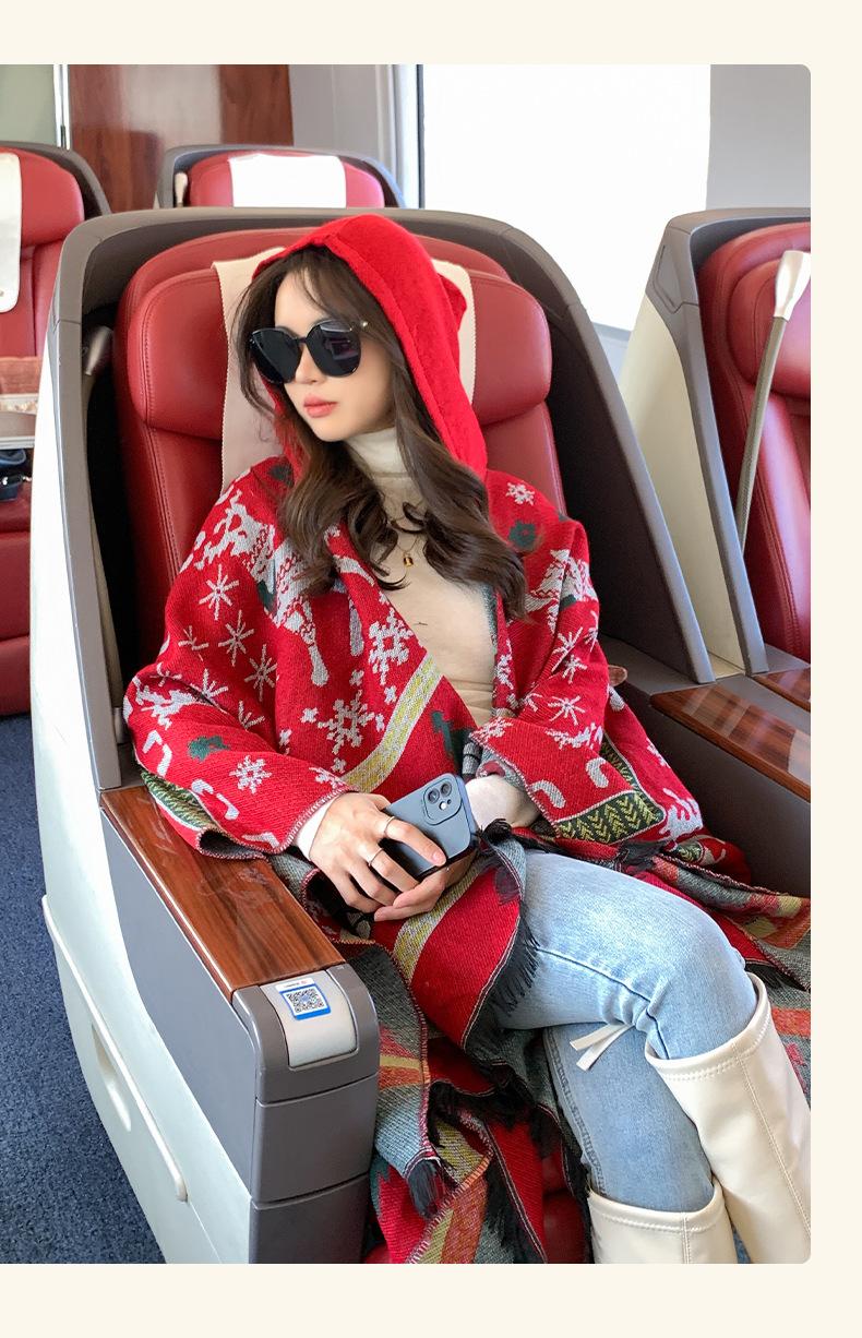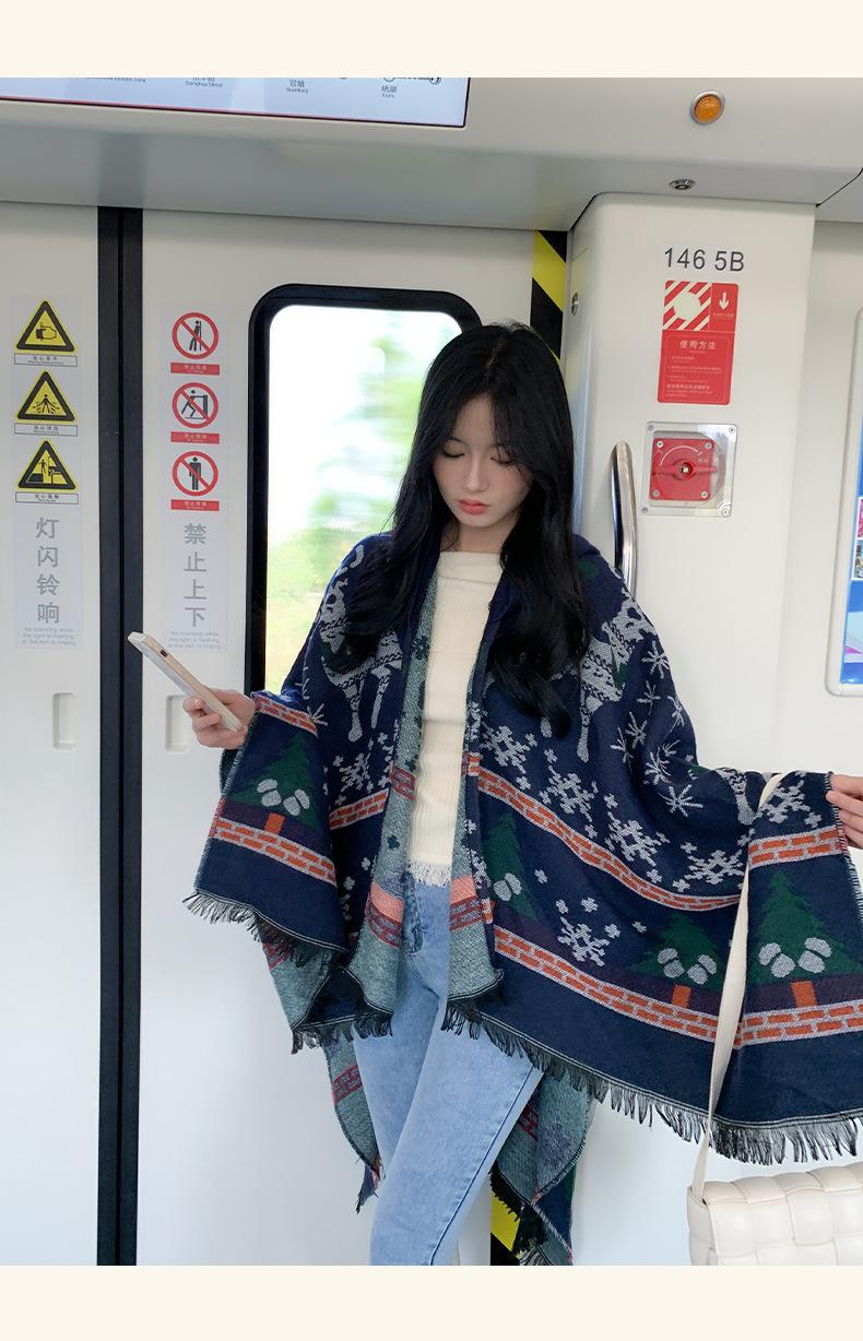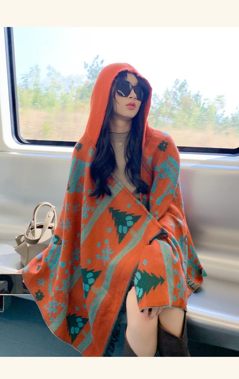 Invierno barba corta cómoda cálida bufanda transpirable alce navideño personalizado estampado casual con capucha versátil moda capa