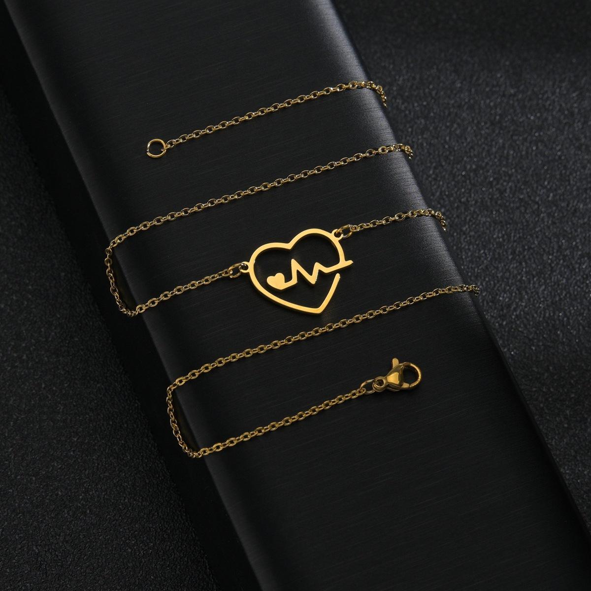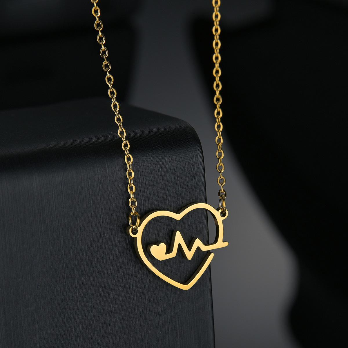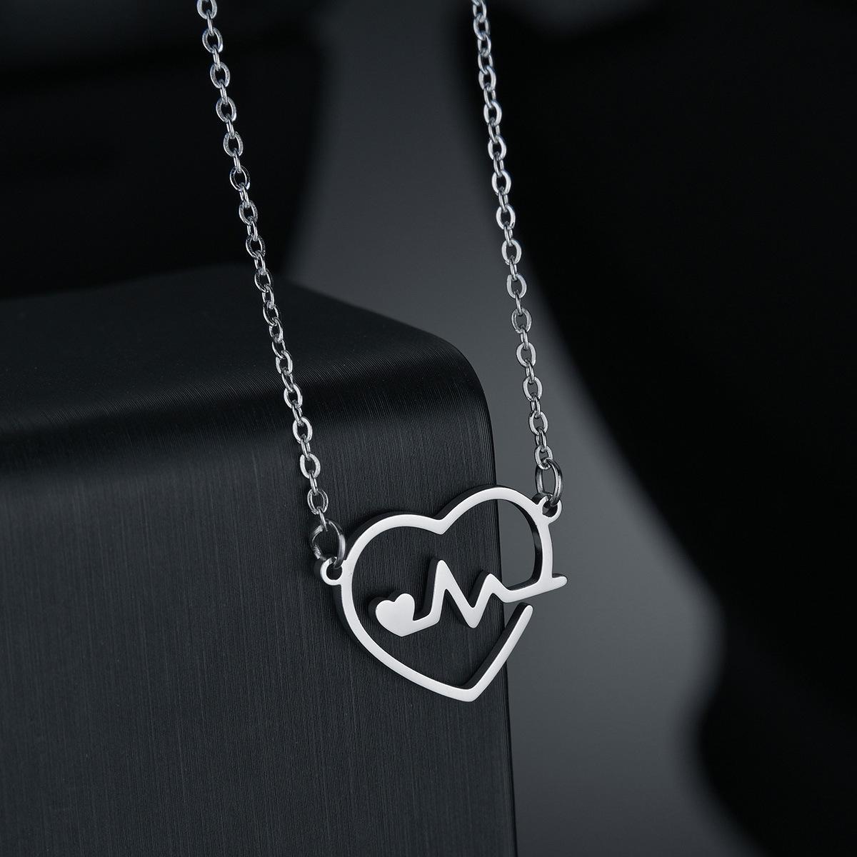 Suministro transfronterizo de fábrica de collares de acero de titanio para damas con electrocardiograma y latidos del corazón, populares en Japón y Corea, joyería al por mayor.