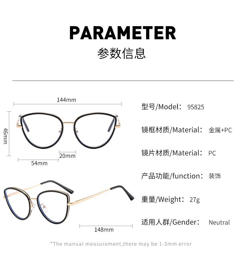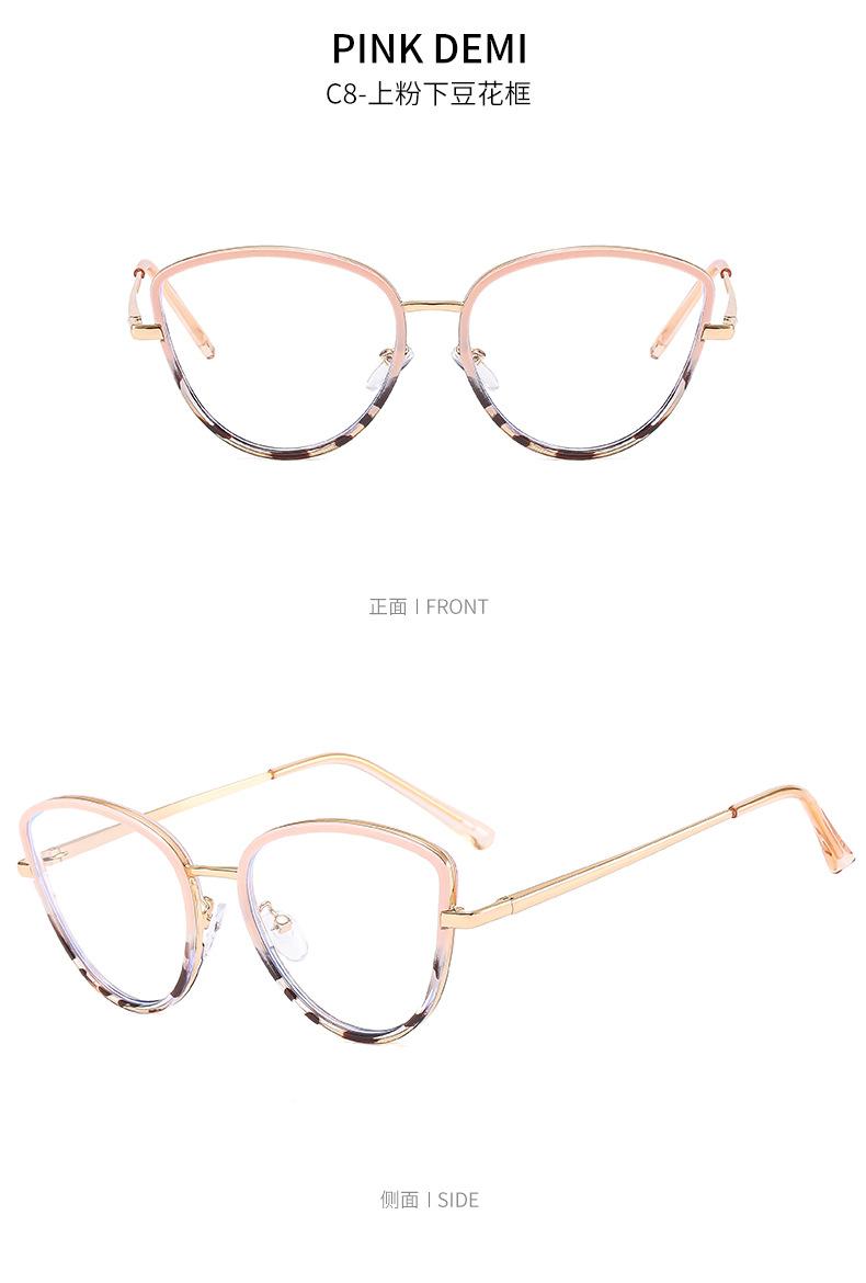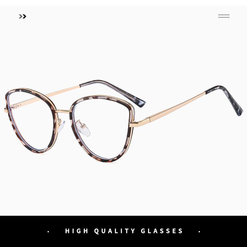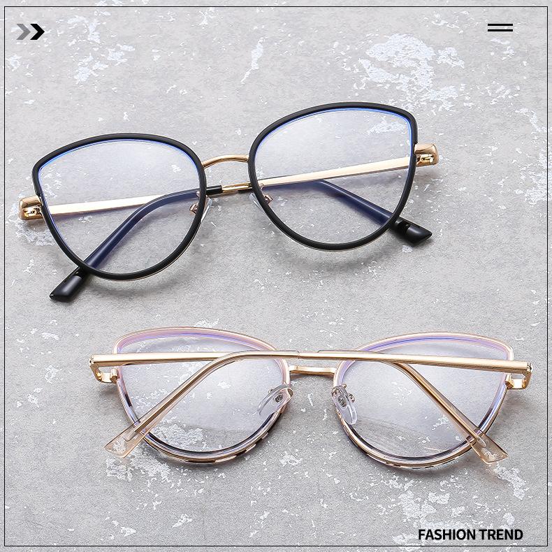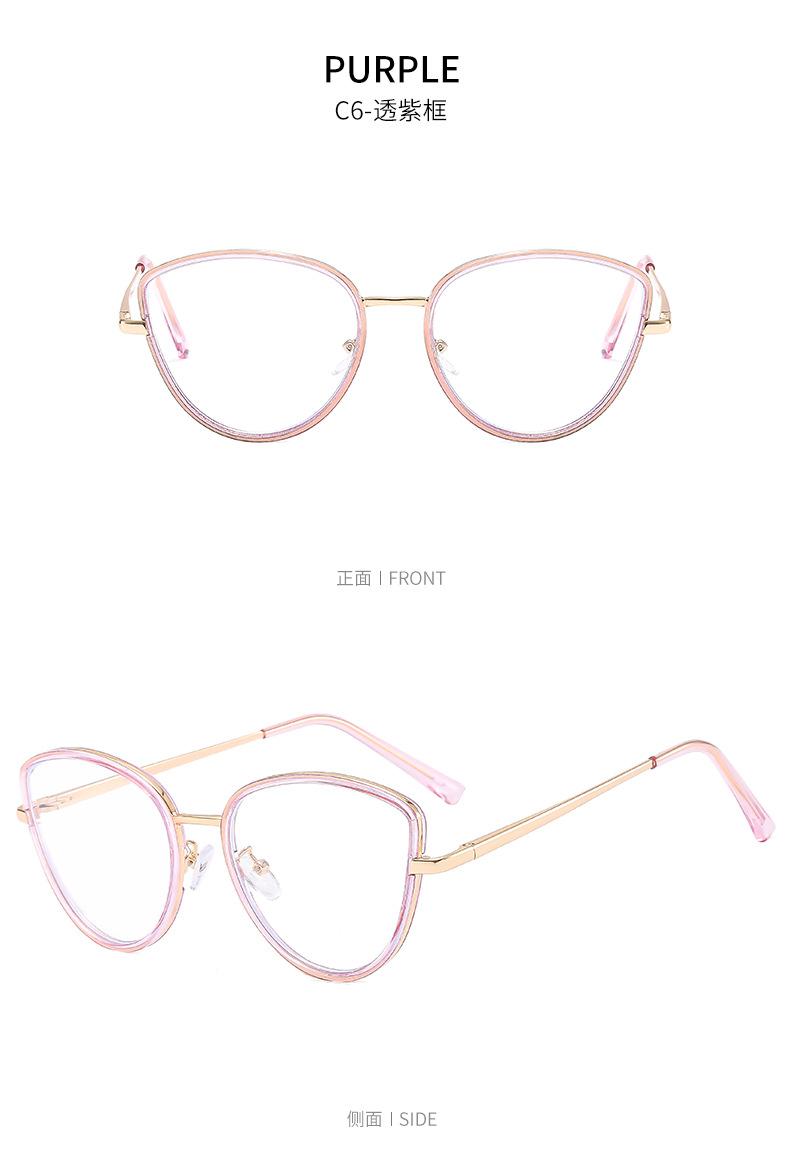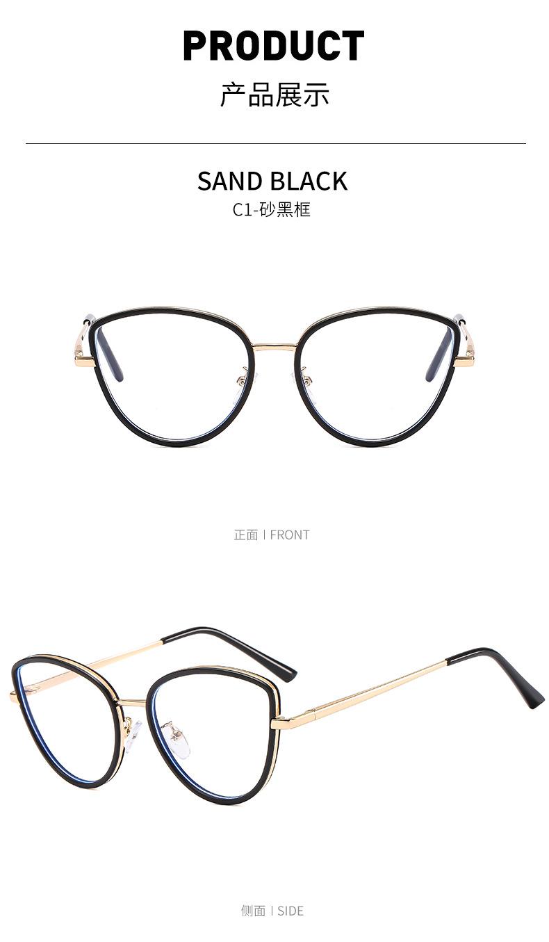 Europa y Estados Unidos nuevo armazón de metal completo gafas anti luz azul ojo de gato armazón de gafas para mujer patilla de resorte espejo plano al por mayor