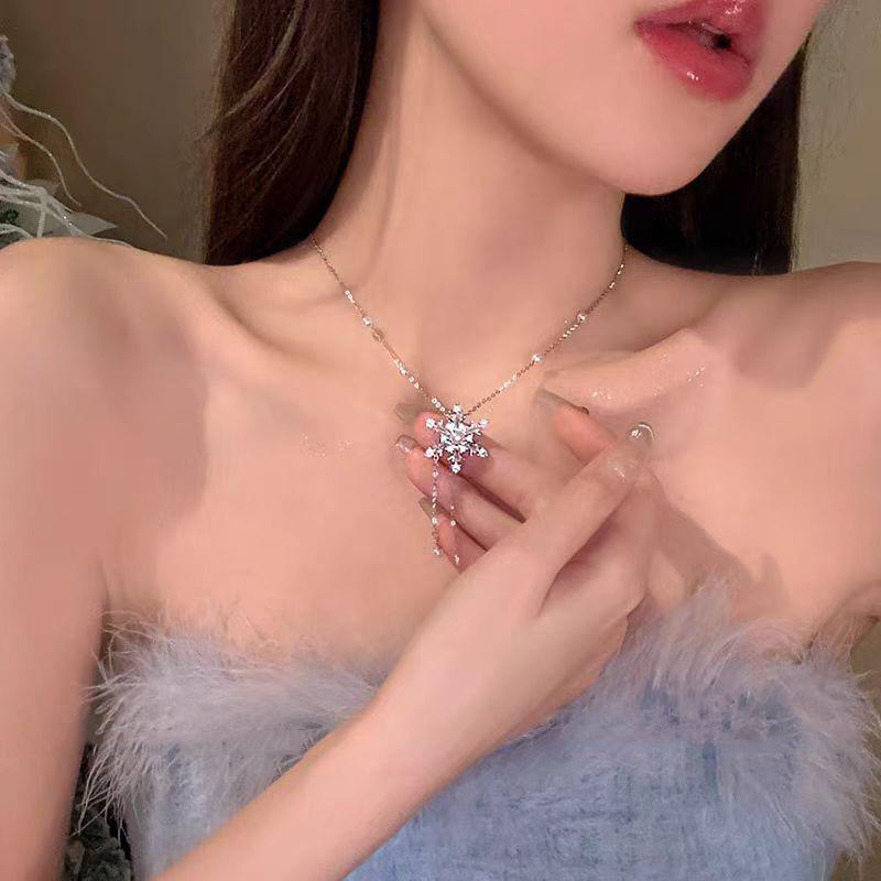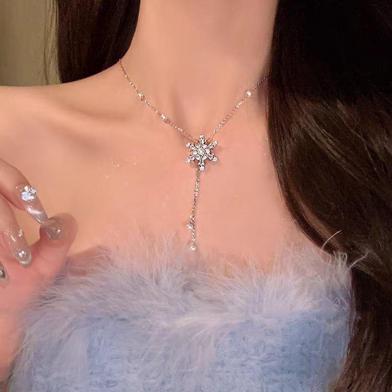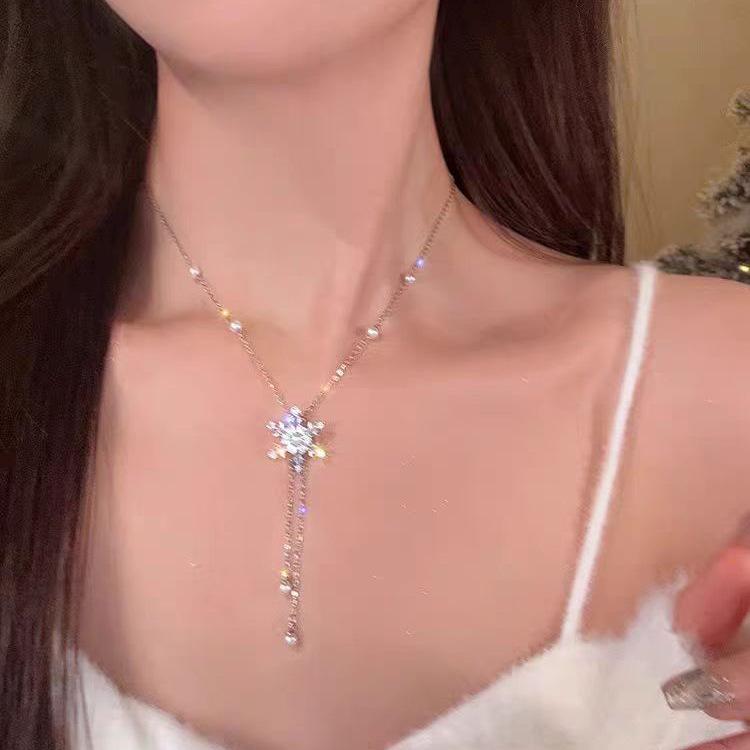 Nombre del producto: Collar de borla de copo de nieve brillante