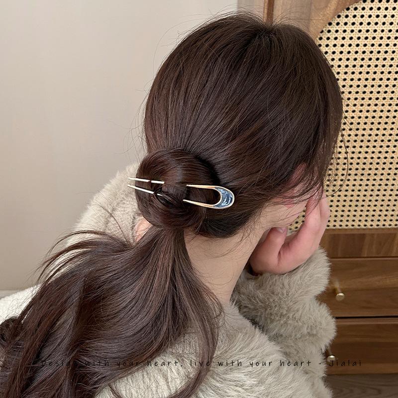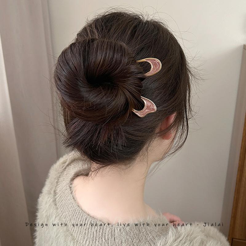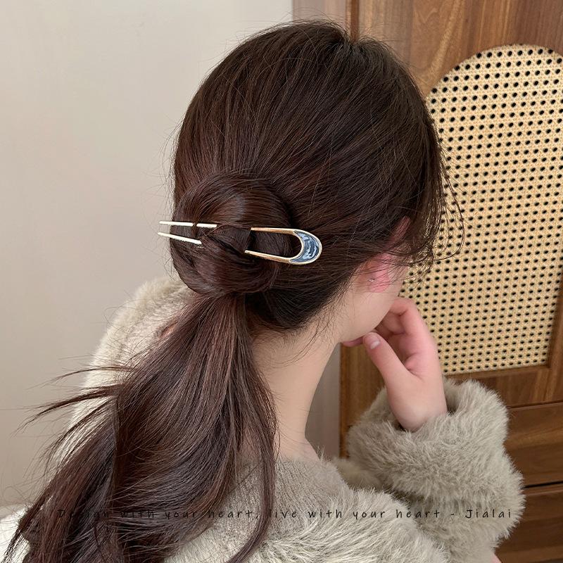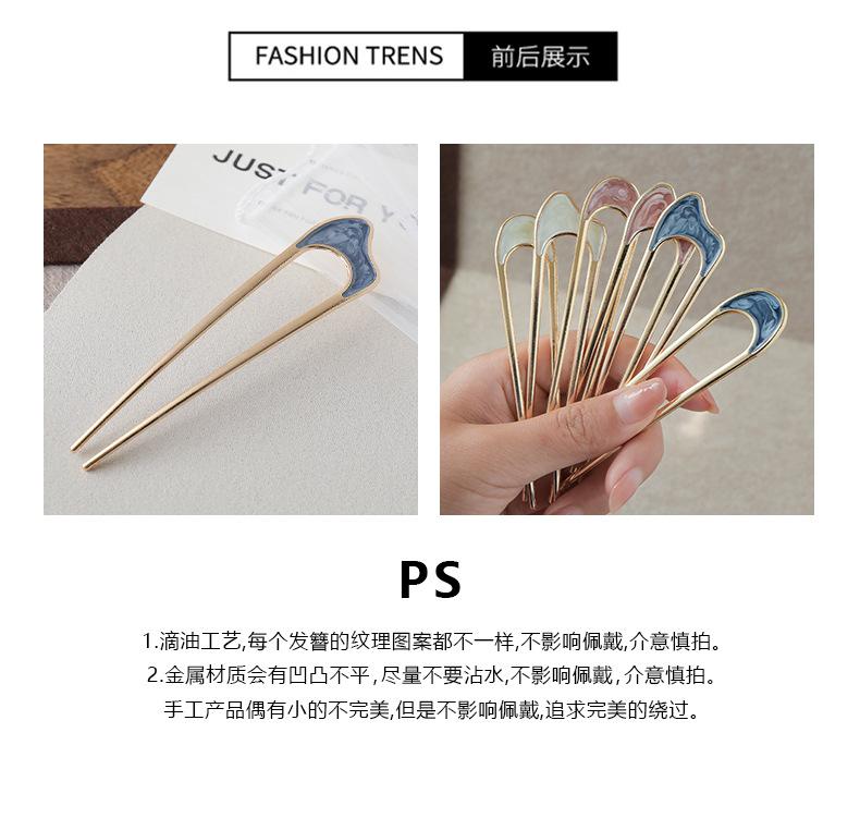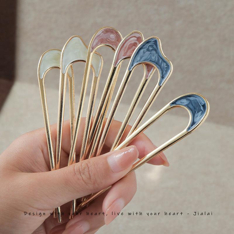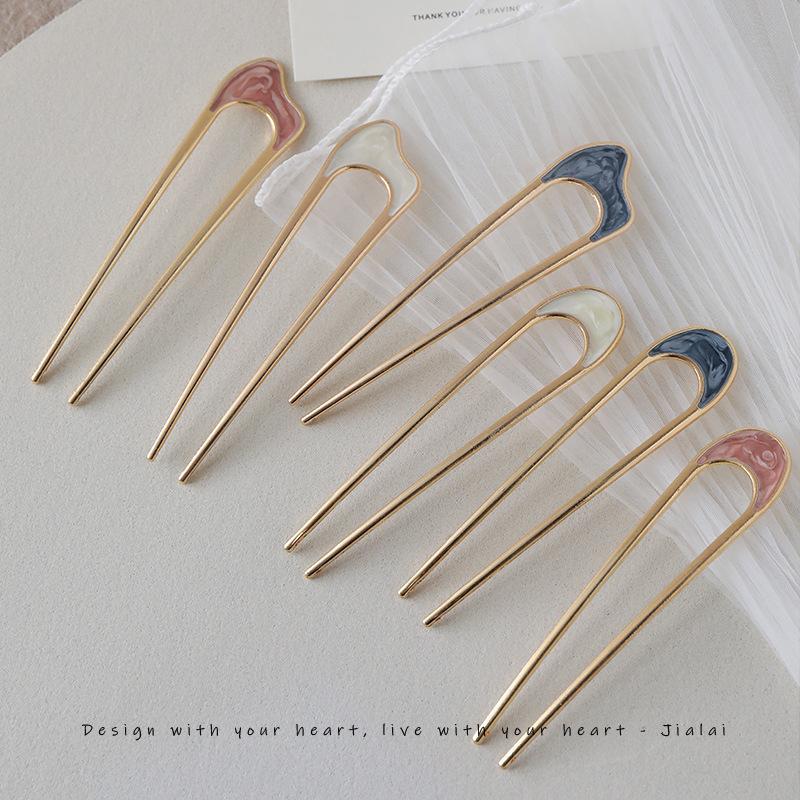 Drip U-shaped hairpin-wavy beige, Dripping oil U-shaped hairpin-moon tooth powder, Drip oil U-shaped hairpin-crescent gray blue