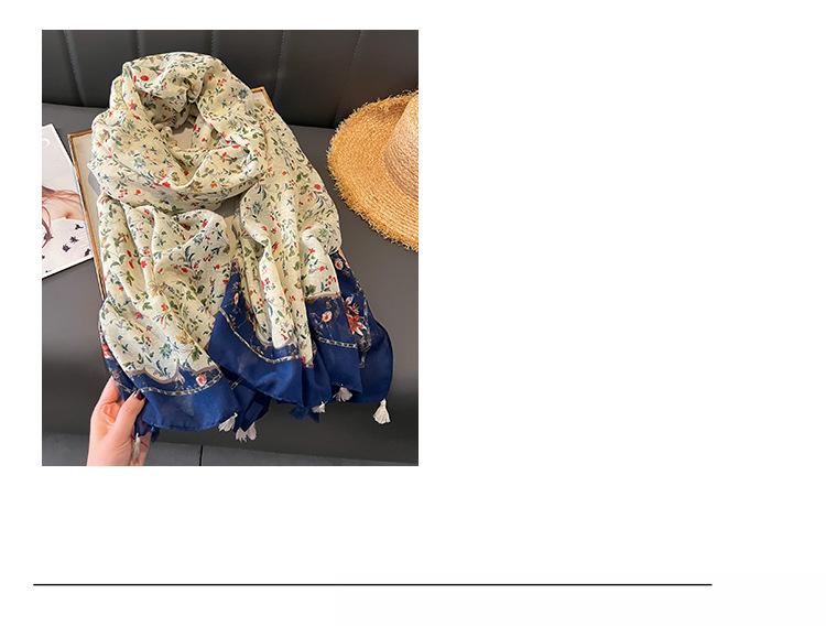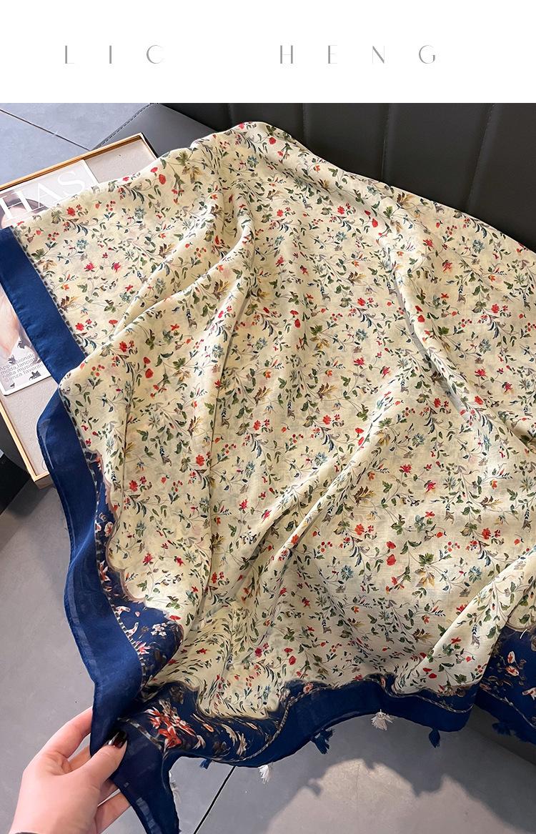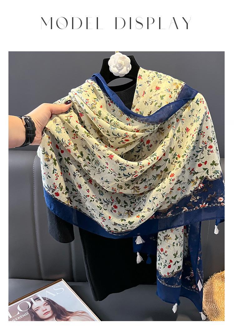Bufanda de algodón y lino con flores vintage de primavera y otoño, bufanda de seda con flores madre para mujer, bufanda larga, chal de playa, toalla de playa fina